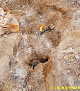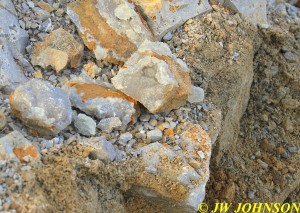 …and how I left it looking as well, as I was wore out by this time, so I took a photo of the clusters that I had chipped out of the hole in the past few hours…..