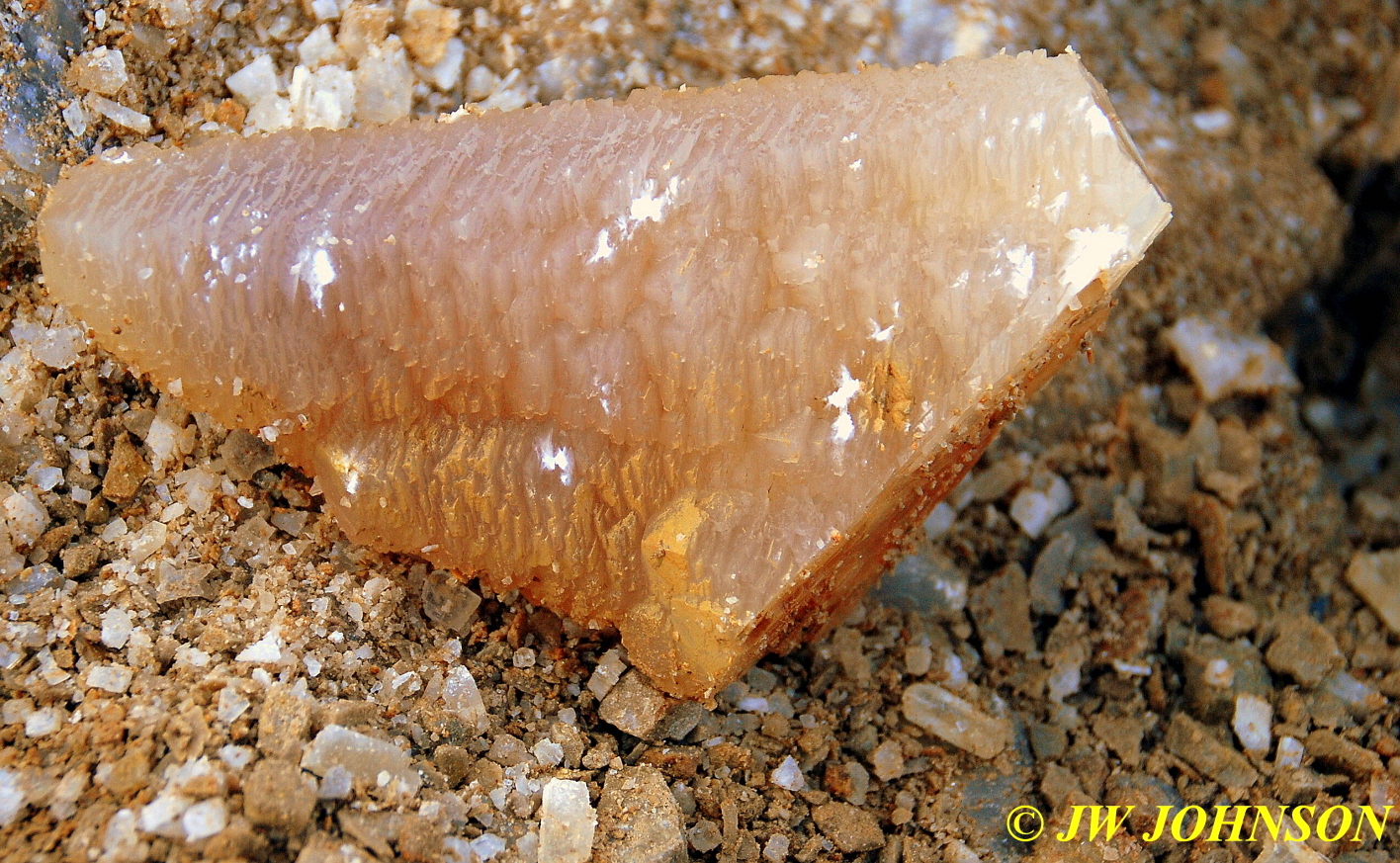 …so after a few minutes of walking around and resting up…I walked back over and started raking around again, and following the trench which started leading me toward the ridge, right over to the base of it….and pretty soon I was finding some poker chip crystals that appeared to have either rolled down the ridge to the floor below or were coming out of a pocket at the base of the ridge…