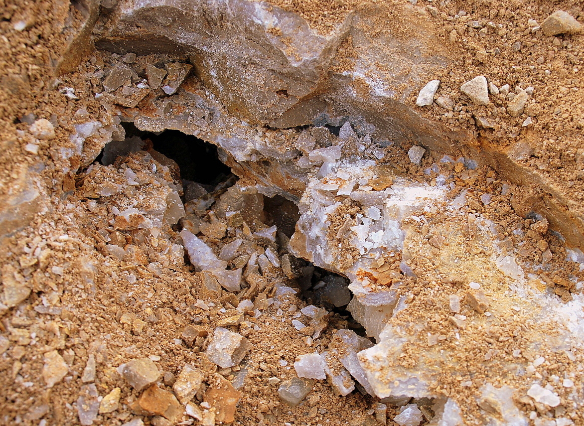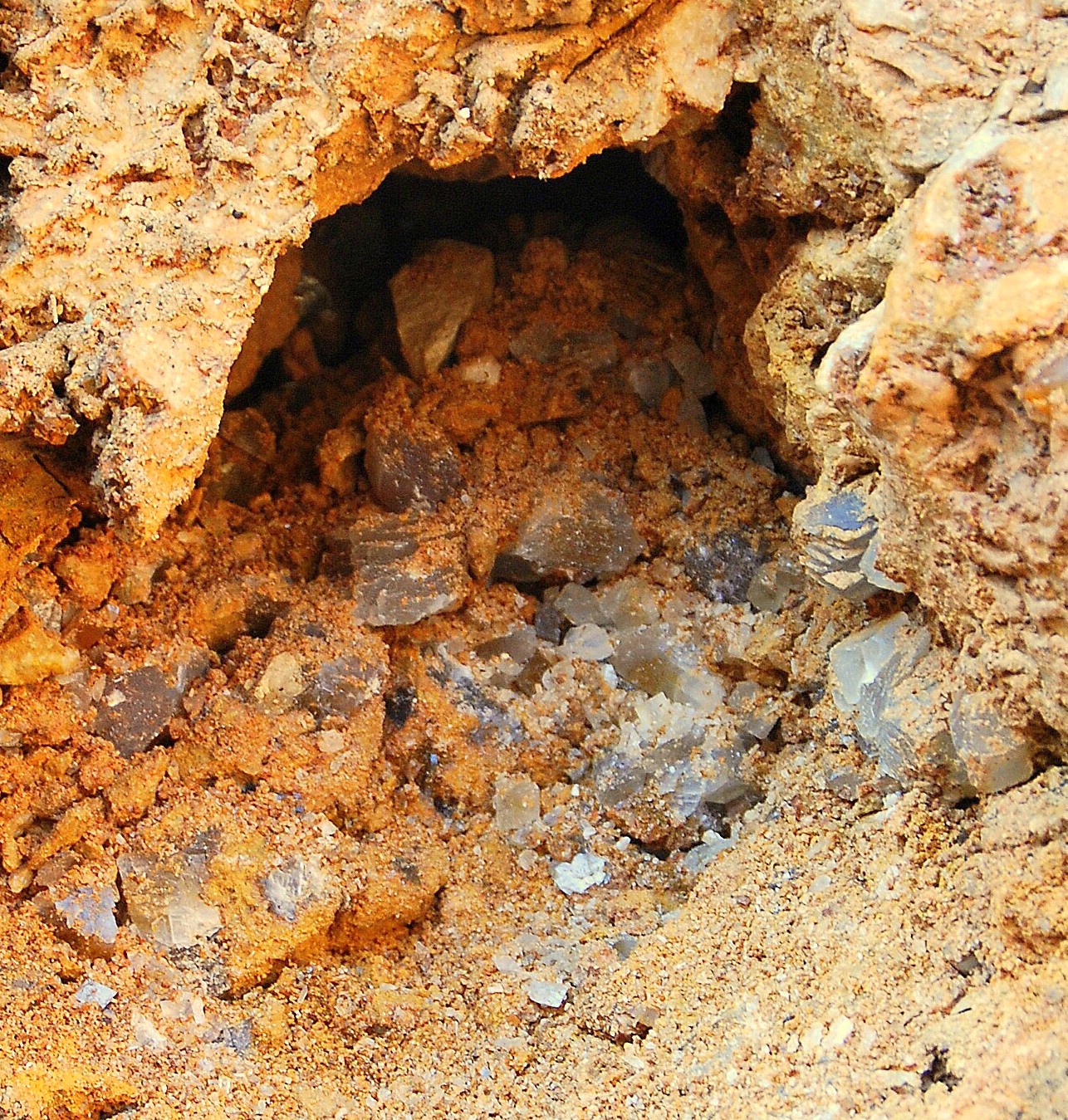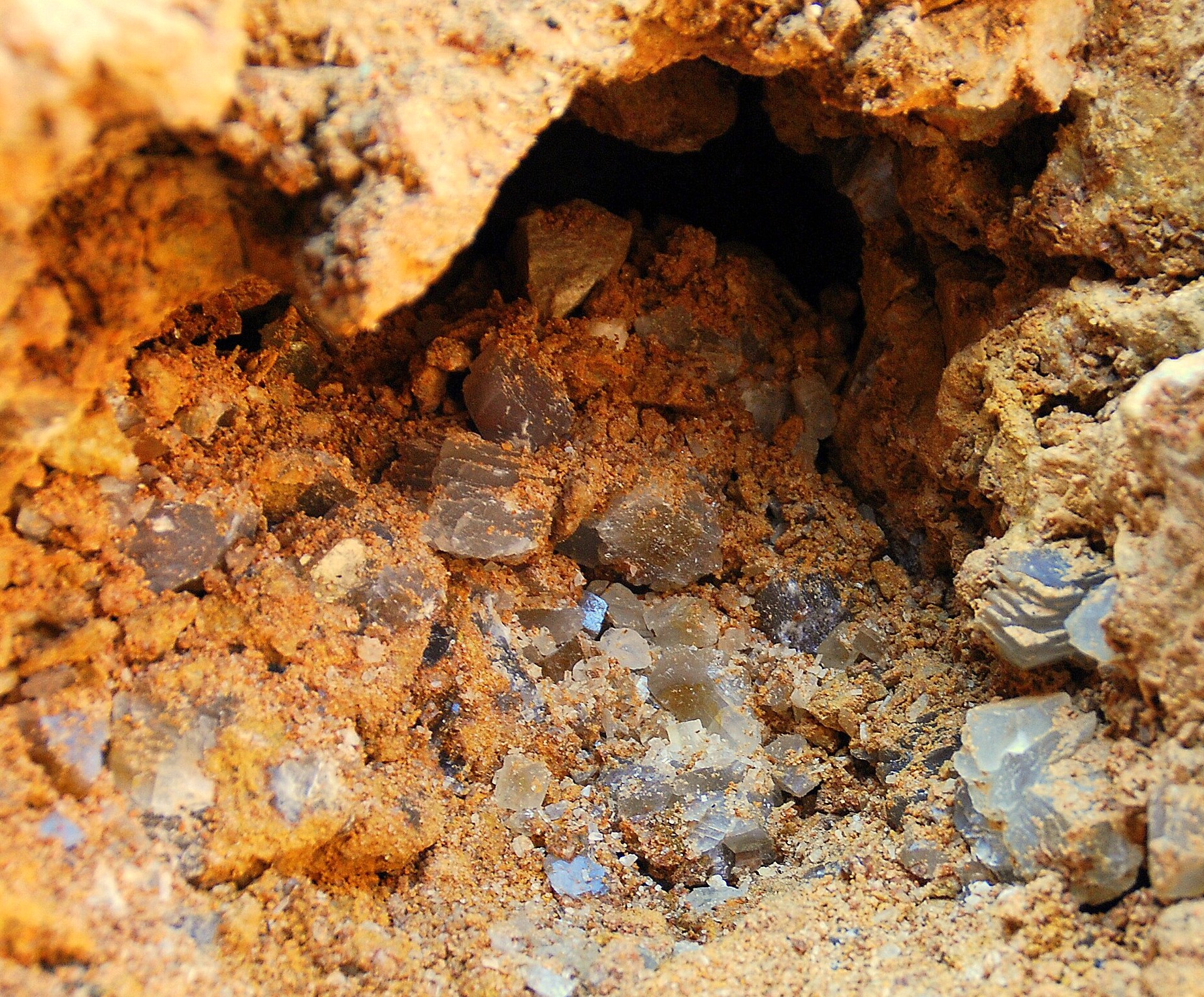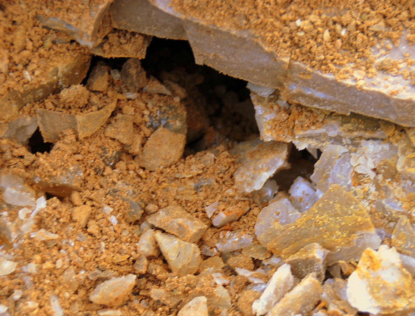 ….and a look inside the pocket toward the back of the pocket at the crystals just waiting to be removed….