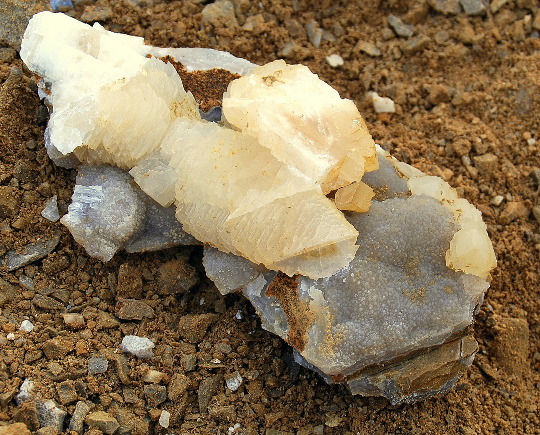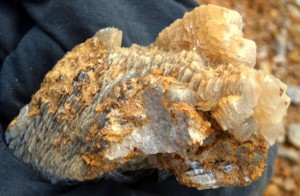 …the shallow spot on the right side of the photo above near the end of the handle of the mini mattox, and the hole at the end of the handle of the hand rake on the left side of the photo above….the shallow trench produced this combo crystal below….