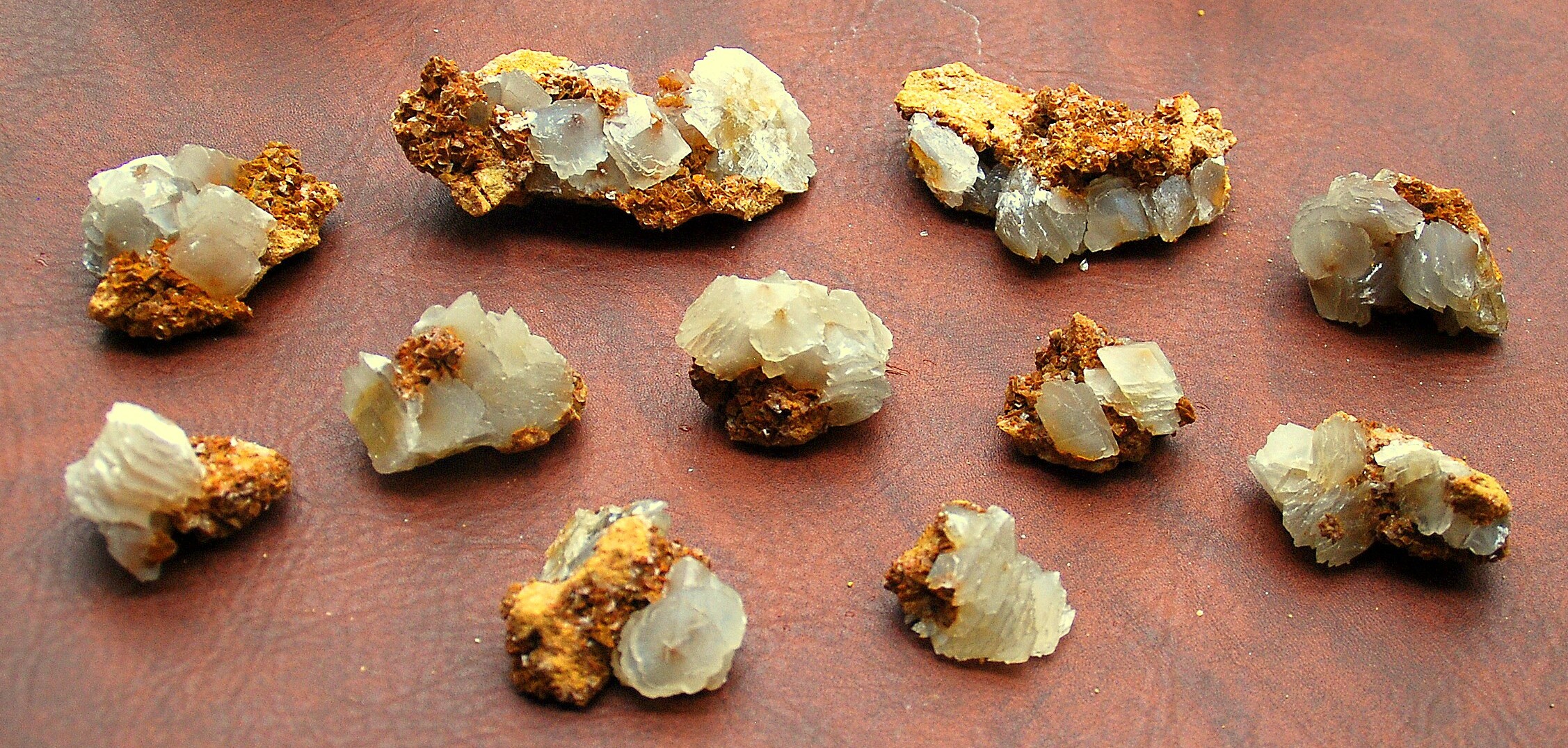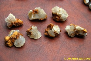 …and out of pocket five, I pulled out several smaller clusters and crystals and plates of druse, piled up in the next photo…..
