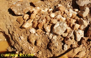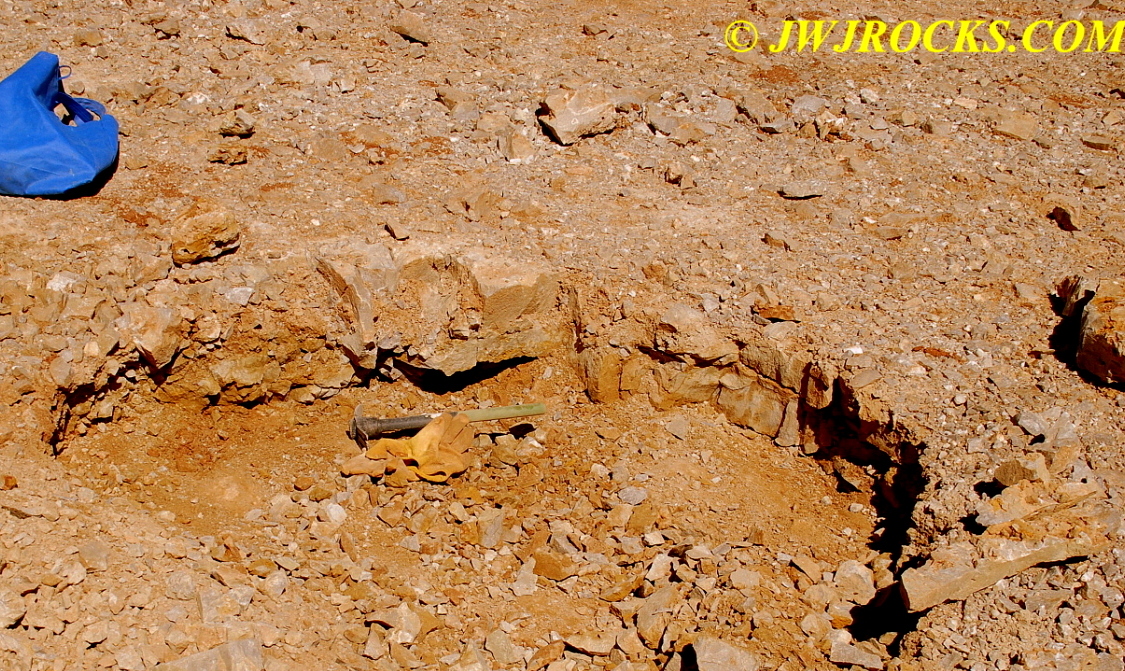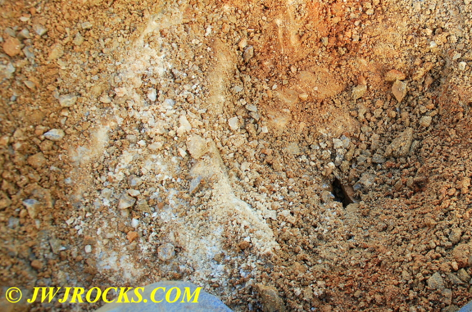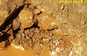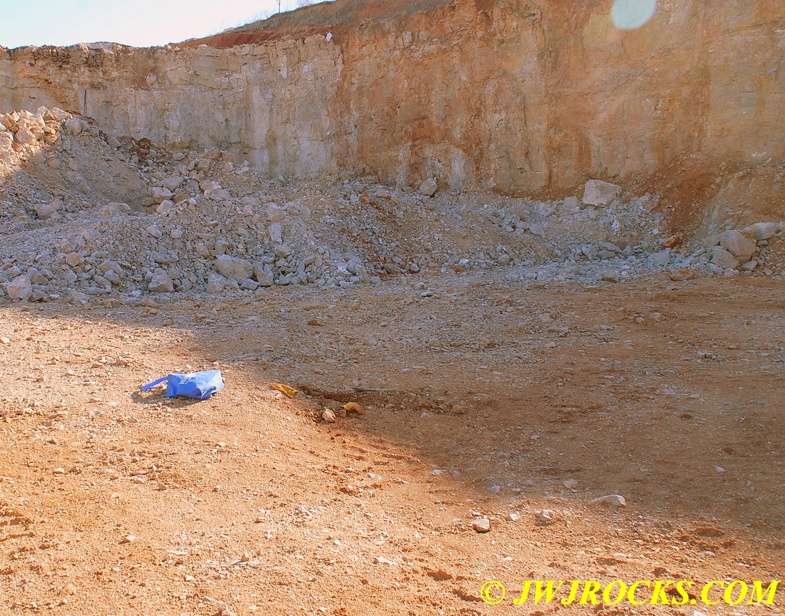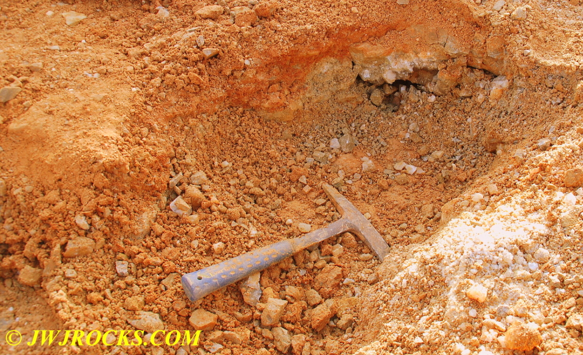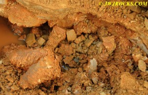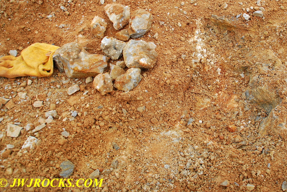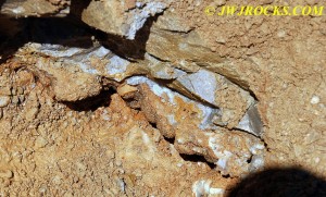 …oh well, still a lot of area to search for pockets remaining there…so I sat about to find one, walking over to the area where they removed the rock for this new wall and finding evidence of a pocket real fast…and sat about digging it out….