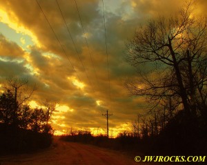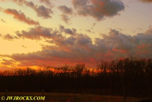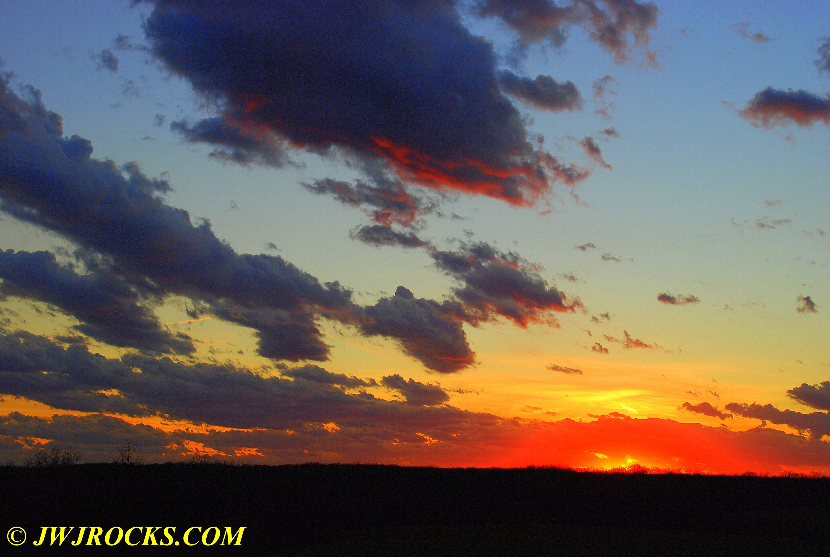 …and once I had it halfway cleaned out, I looked back inside and you could see this big poker chip attached to a druse plate hanging upside down from the roof of the pocket….…I got my chisel and four pound hammer from the truck, and drove that chisel into the roof of the pocket about eight inches back from the opening and the poker chip plate and another plate, split off from each other and dropped down into a couple of bags I had stuffed into the opening of the pocket…just in case that happened…….shortly after that…I gave out…I had four bags full of chips and two bags full of combos and I figured I had enough….I filled in the holes and wrapped up my goodies, and Missy and I took off….we stopped for this pretty scene tho….