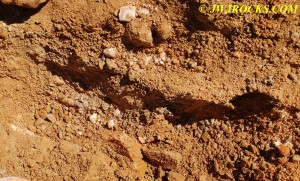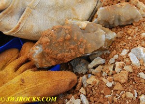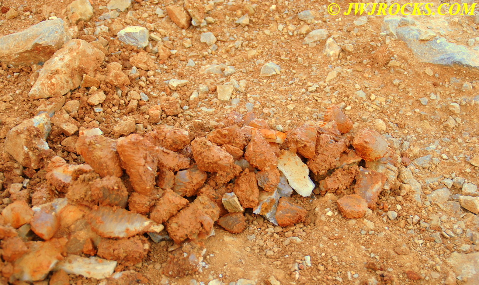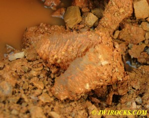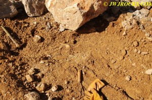 …and just laying in the loose gravel and dirt near where I had found a pocket several weeks prior….I walked over to the area where we had dug out the trench pocket the week before, seems it has been covered up big time now by a line of big rocks connecting the pile to the boulder line over by the west wall….