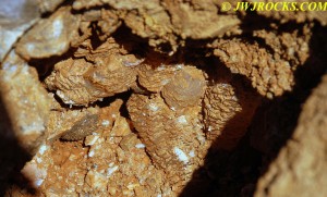 …and decided to clear off the pocket roof so I wasn`t hammering dirt and rock as well as the top layer of that pocket roof….when I started brushing it back, another hole appeared and I figured I had found a back entrance to the pocket…...but no, it turned out to be yet another pocket…