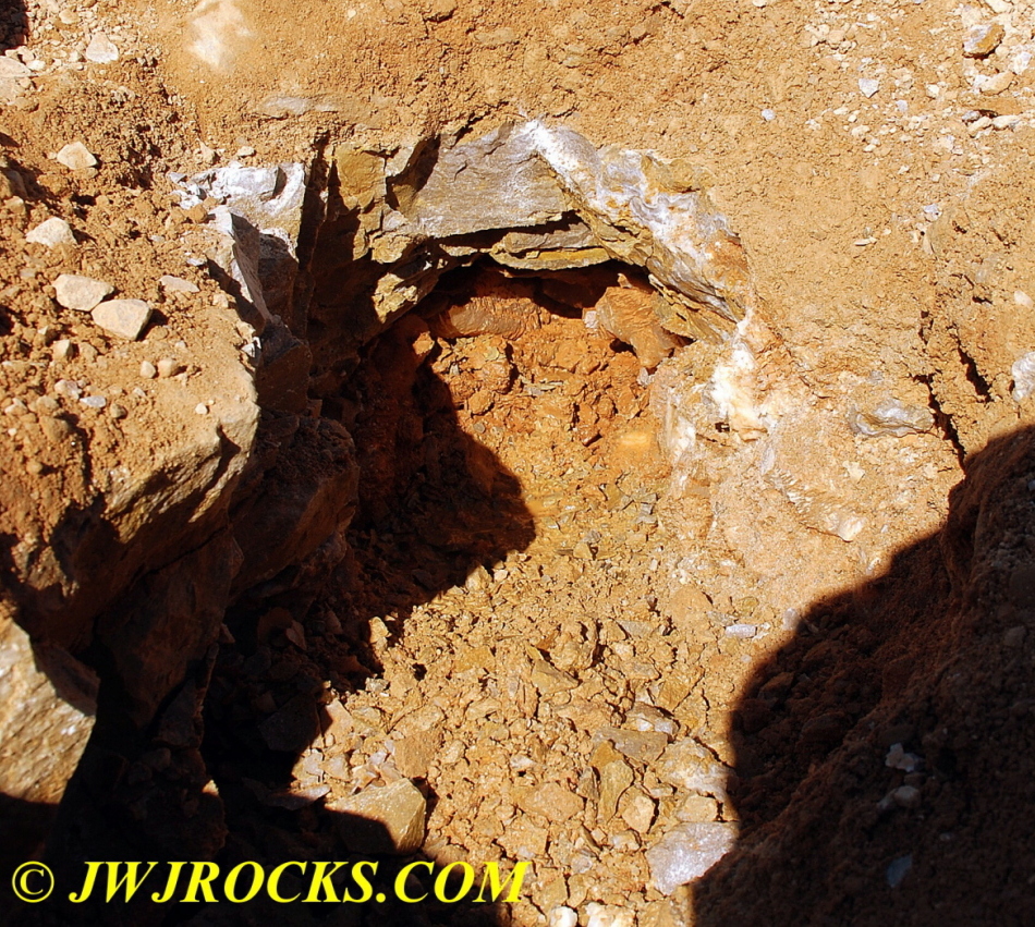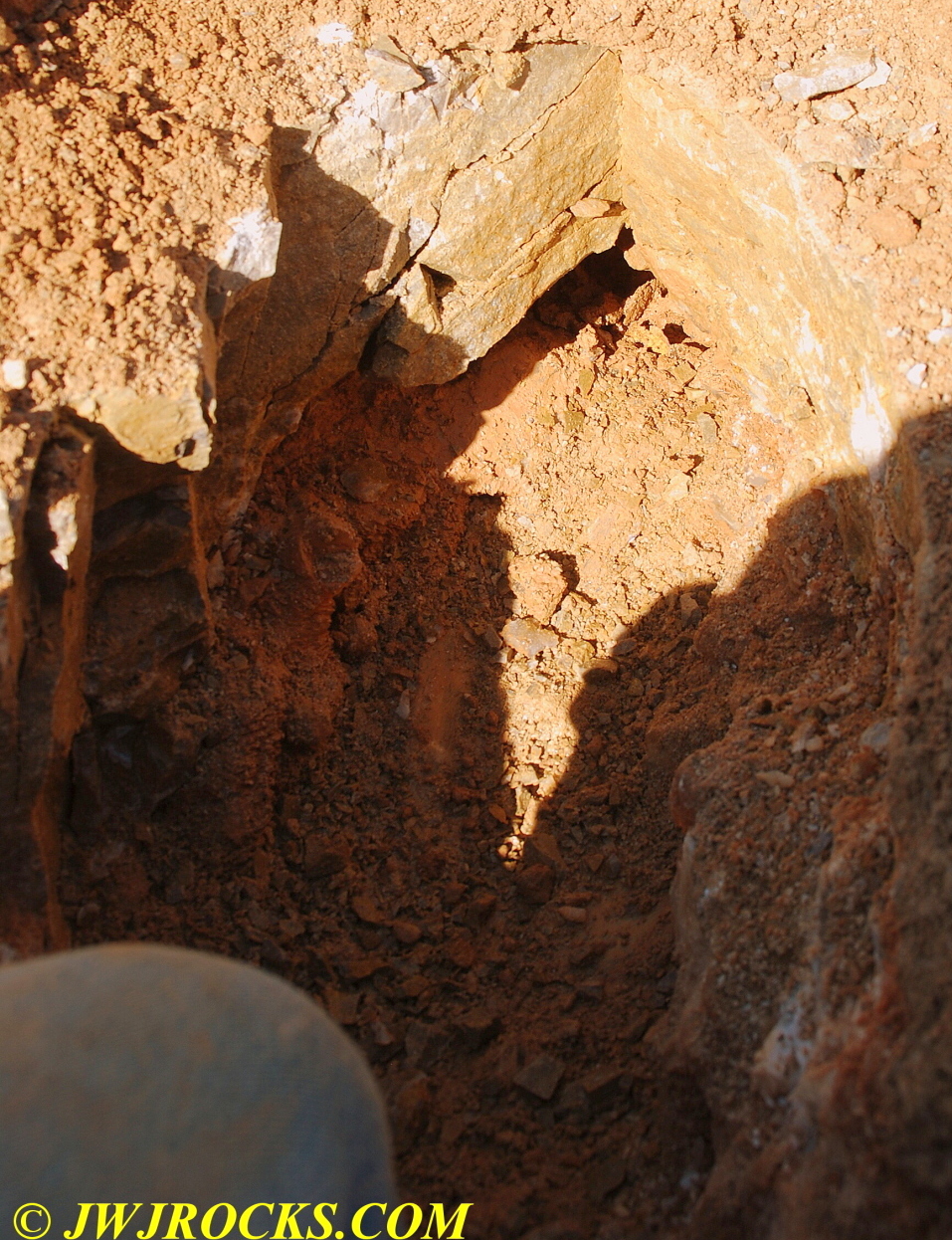…so I began clearing off around it and under it to find out how large it would expand to….…and it soon became apparent that another pocket was going to open up on the right side of the expansion….…I kept digging and expanding back toward where I was sitting, and the next thing I knew, a hole opened up right at my feet. I had been sitting on top of one all along and didnt even realize it….