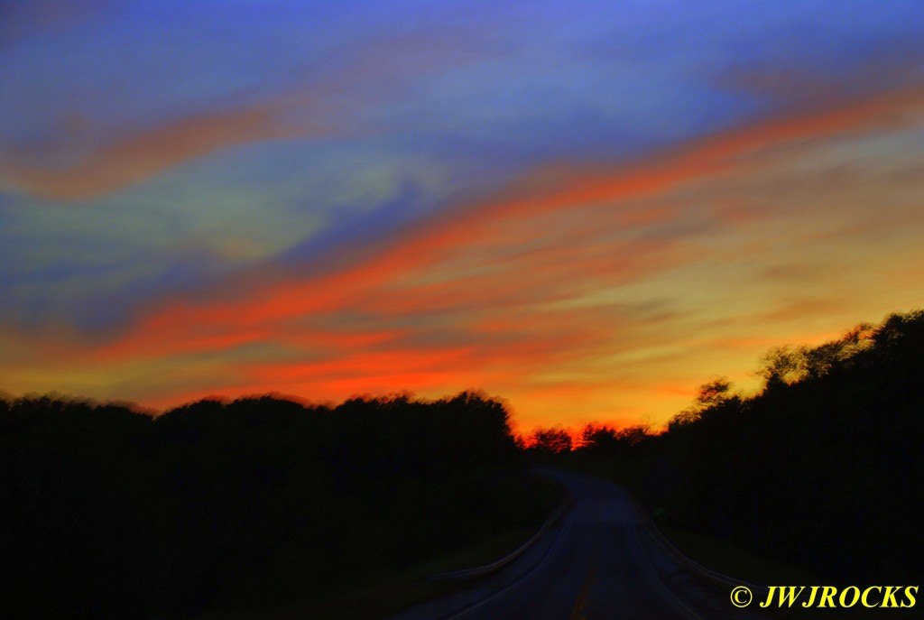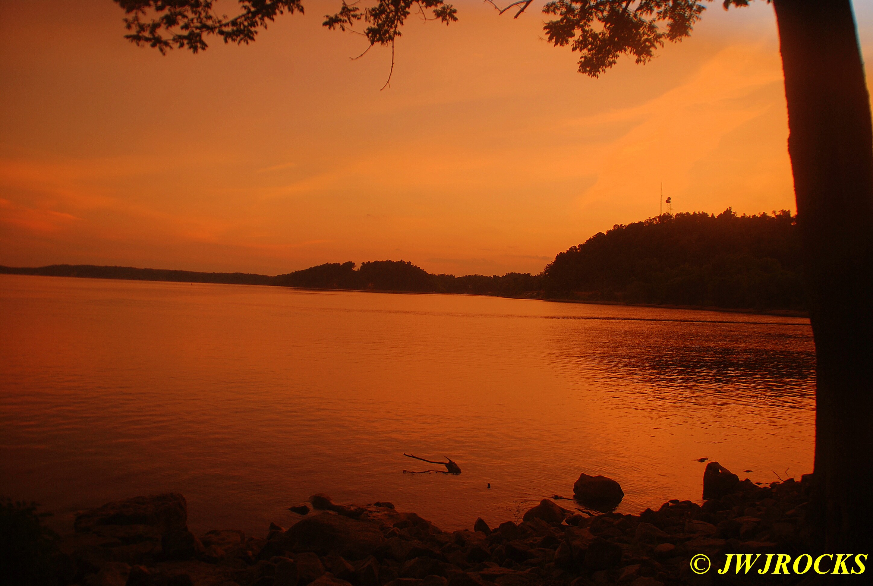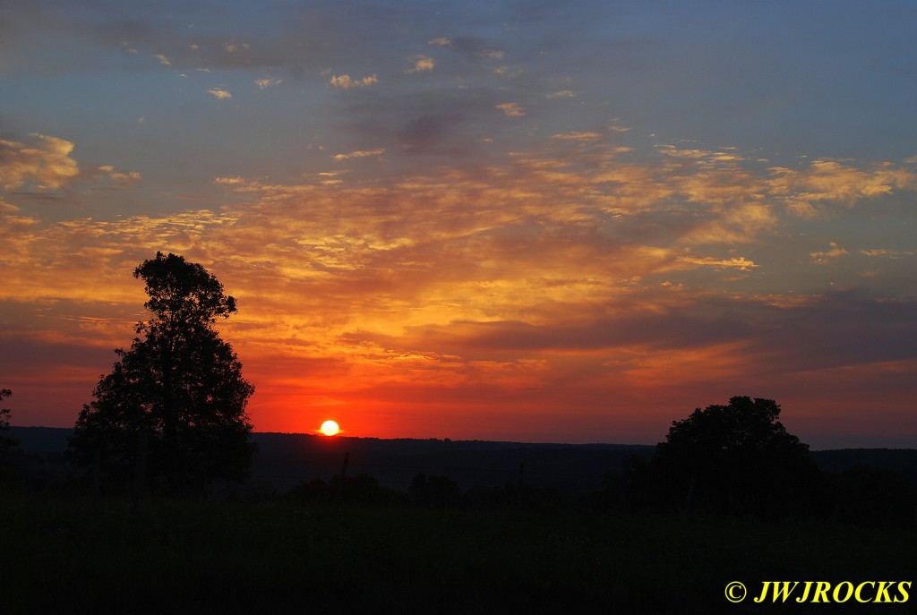 After supper, Missy and I headed down to Lake Barkley and after walking around a bit waiting for the sun to settle for the night, I snapped this sunset photo at the edge of the water….