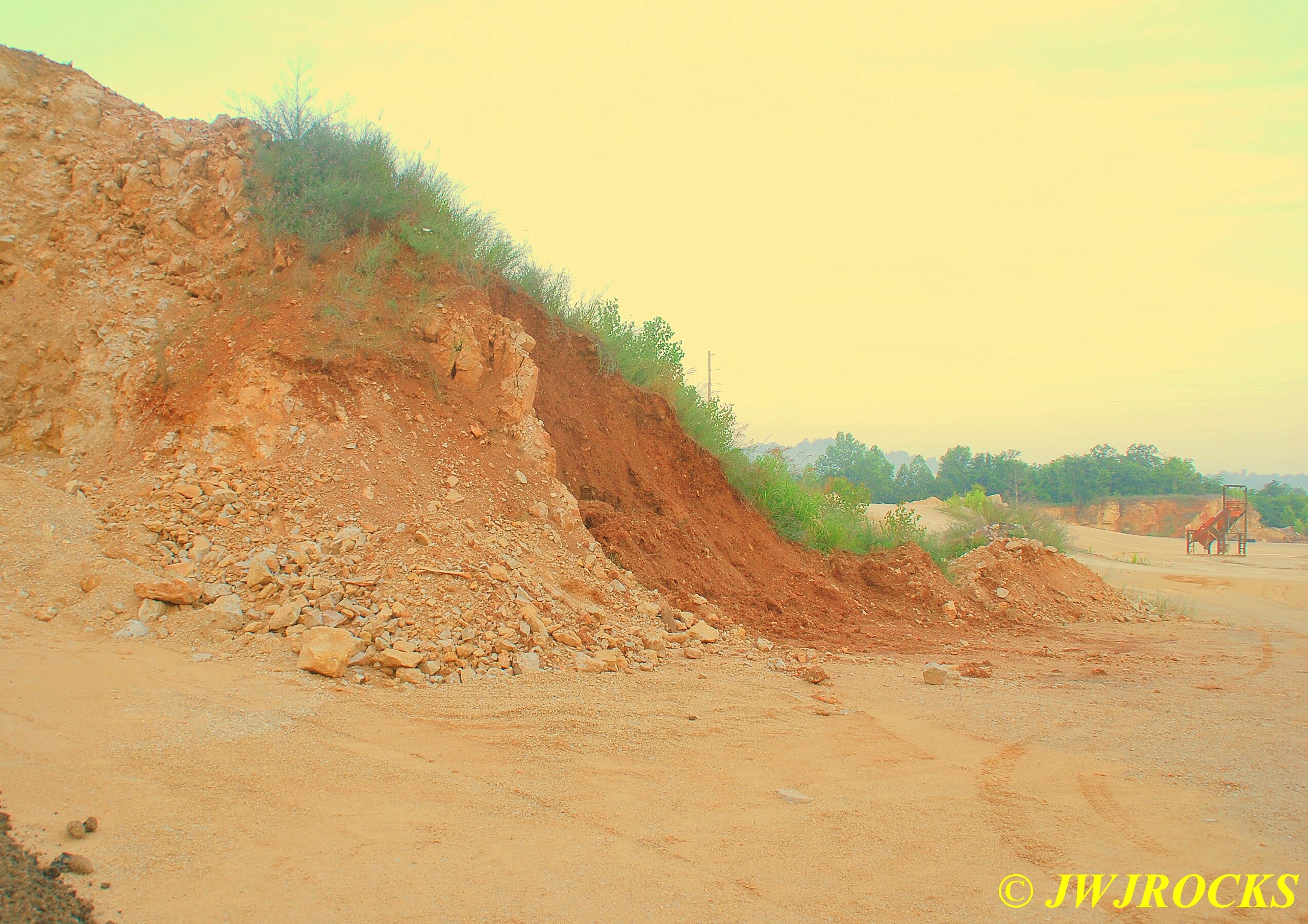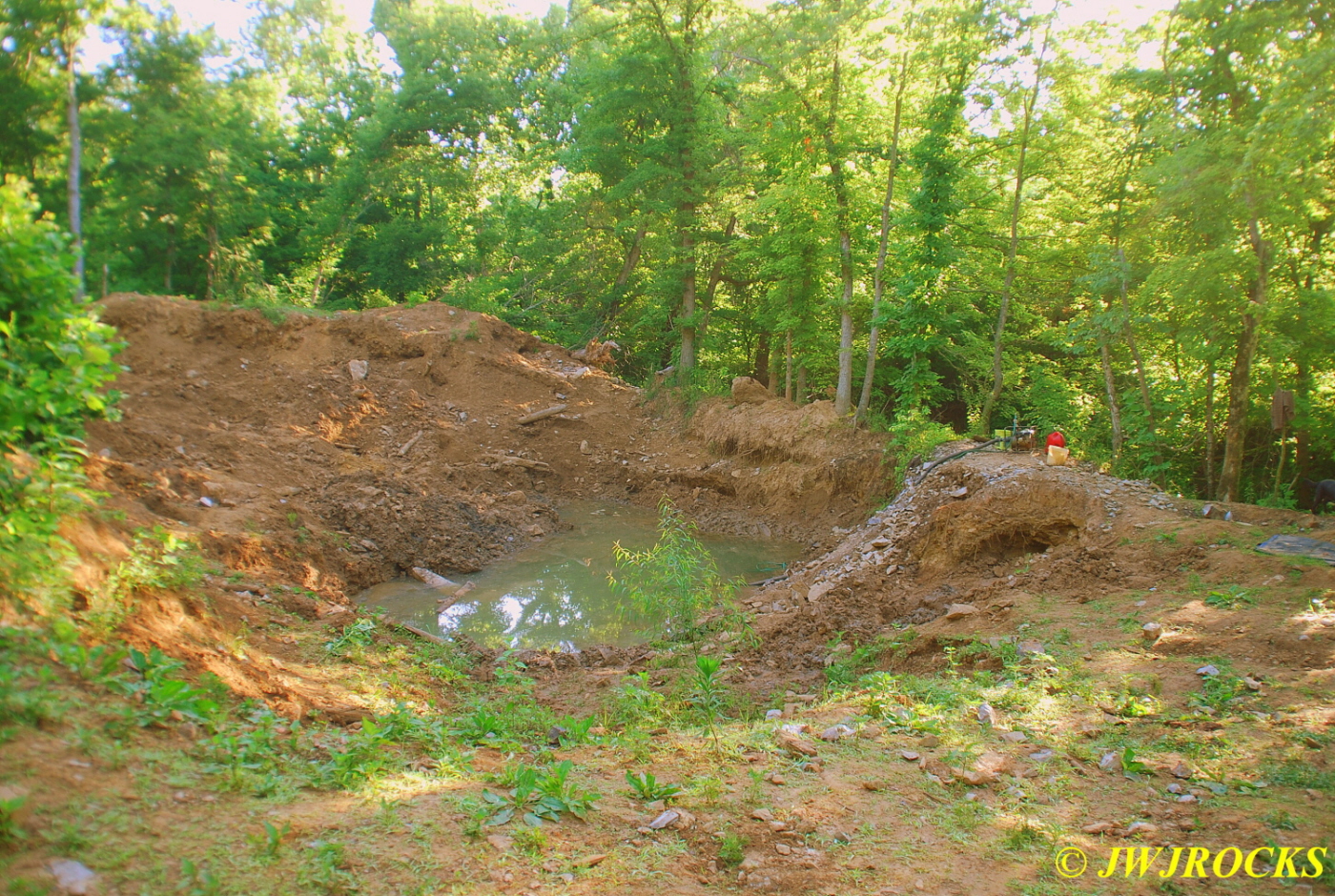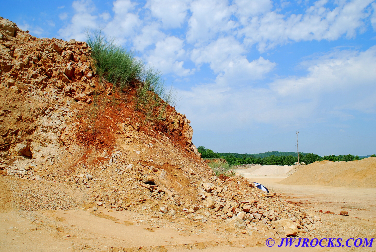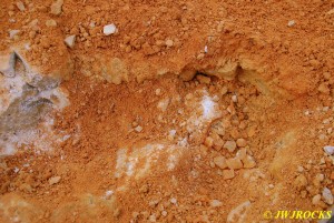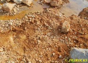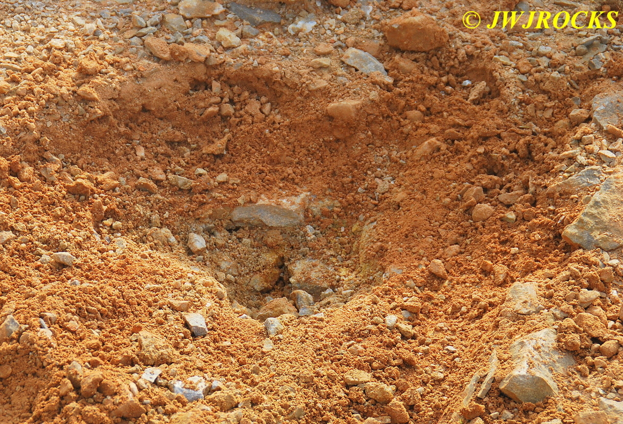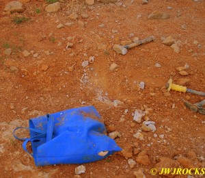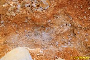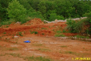 I then called Bill Frazer and told him about the bull in the roadway and he said he would come out and see if we could get him back in the fenced field somewhere before folks started arriving at the mine, wouldnt want that to be the welcome wagon for them. While waiting for Bill to arrive, Missy and I took a look around at the dirt piles that Wayne Crider moved around with the backhoe to get things ready for the rockhounds…