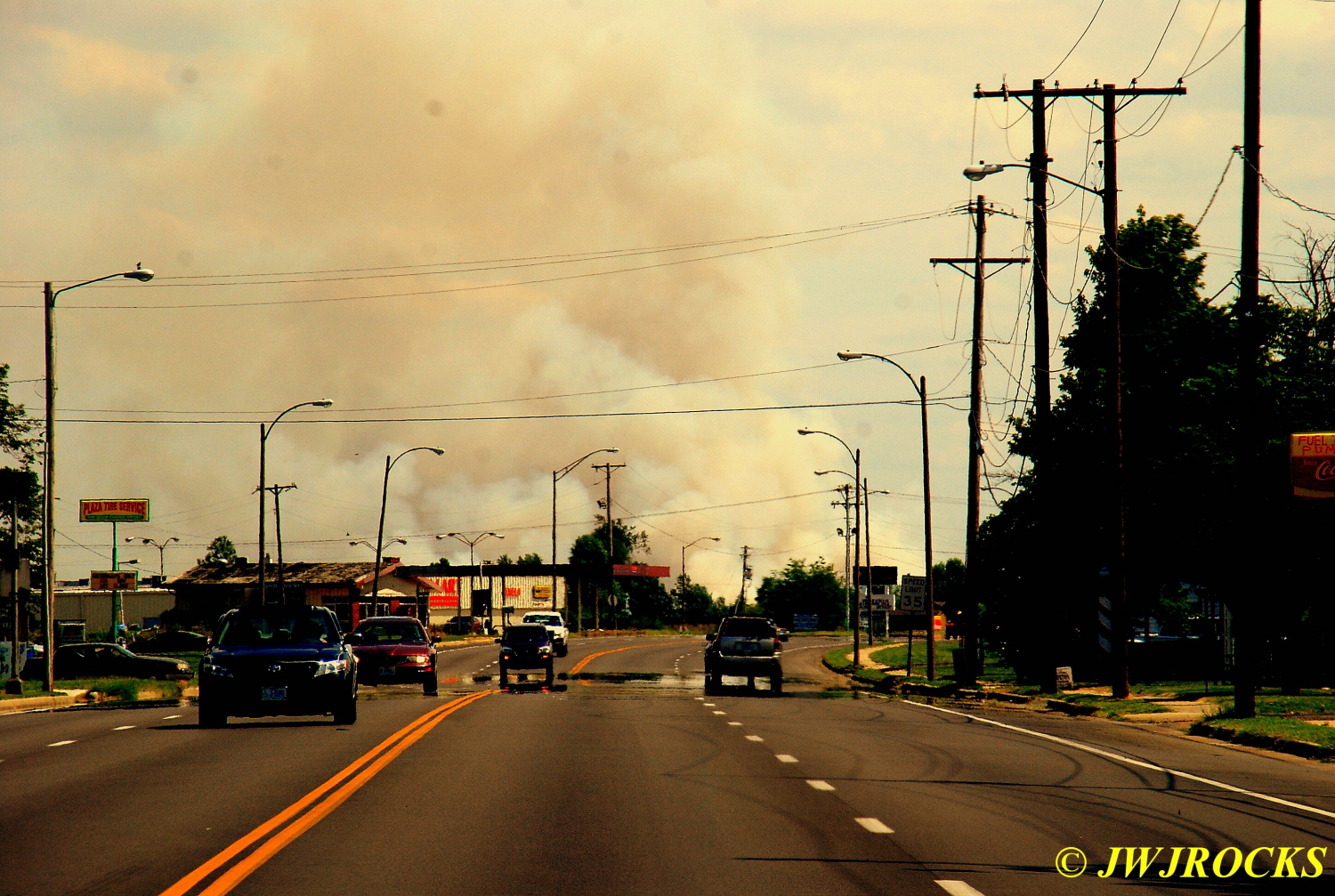 Enough of my soapbox for the day….as we approached Sikeston, from as far away as Cape even, we started seeing huge, high clouds of smoke and I began to wonder what was on fire…I stopped in Charleston to fill my gas tank at the Caseys Store, gas there was 3.29 a gallon, and a resident there told me the fires were wheat farmers burning their fields off after harvesting the wheat crops….here is one of the clouds of heavy smoke as I was headed south toward the Twin Bridges near Cairo….