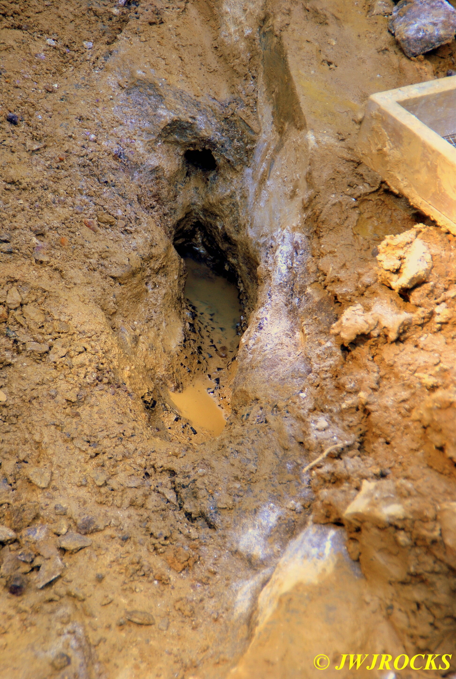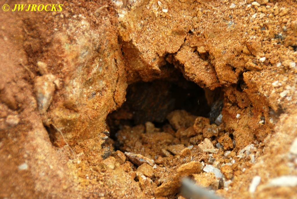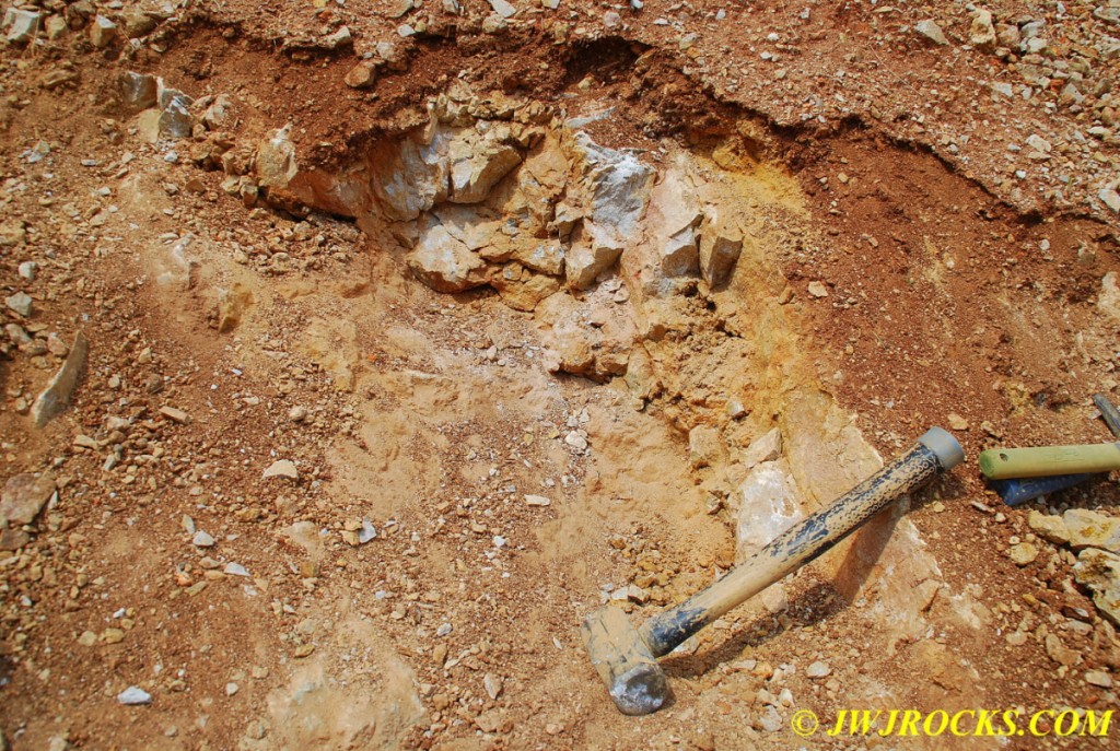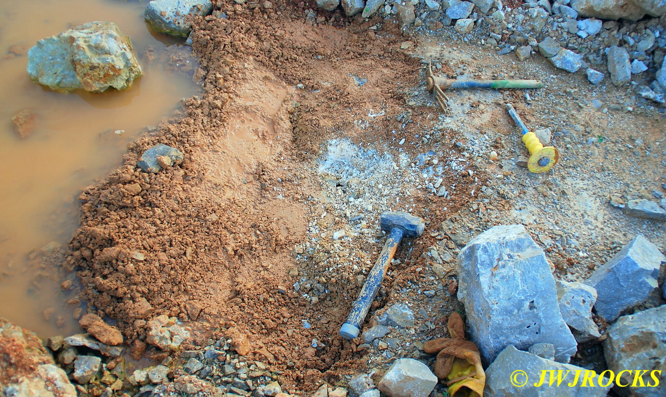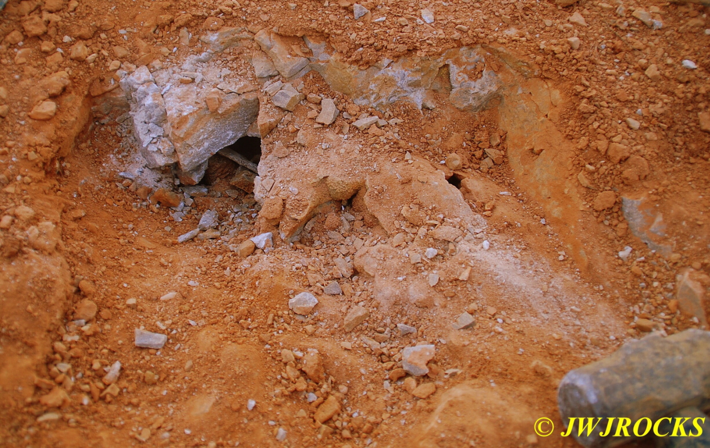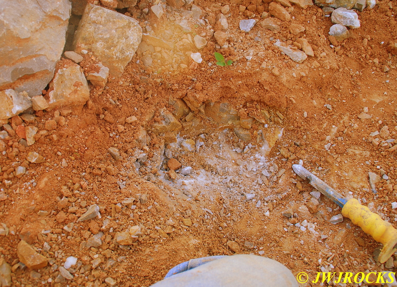 …I pulled my cellphone out and called Bill Frazer, and told him about it and he said he would return to check it out….here is the area that David was working in and found the pocket of calcite in…