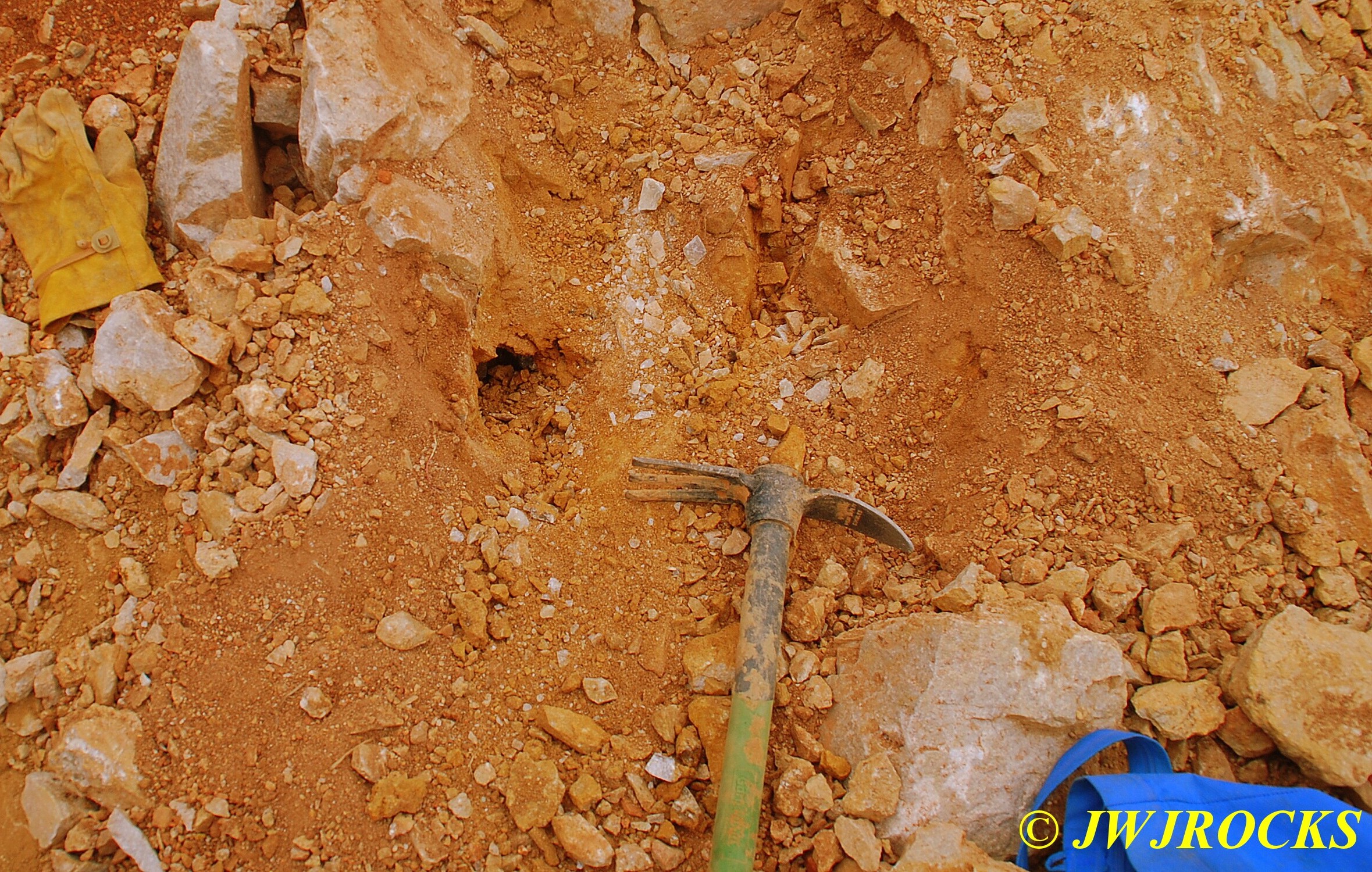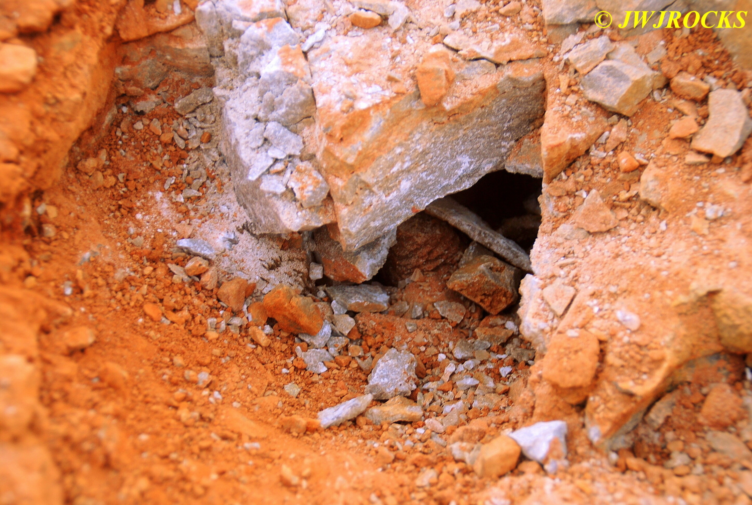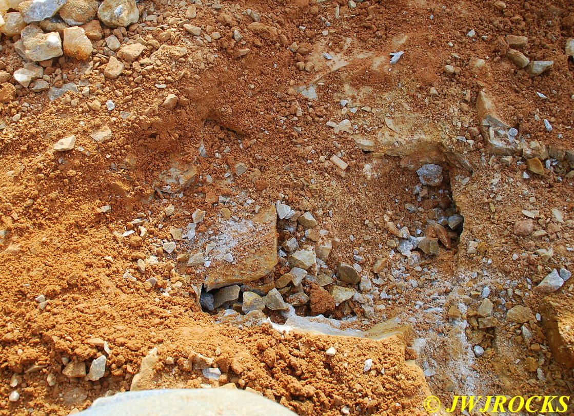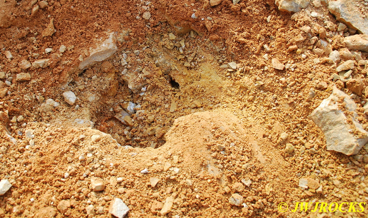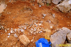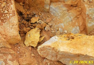 …I pulled my cellphone out and called Bill Frazer, and told him about it and he said he would return to check it out….here is the area that David was working in and found the pocket of calcite in…