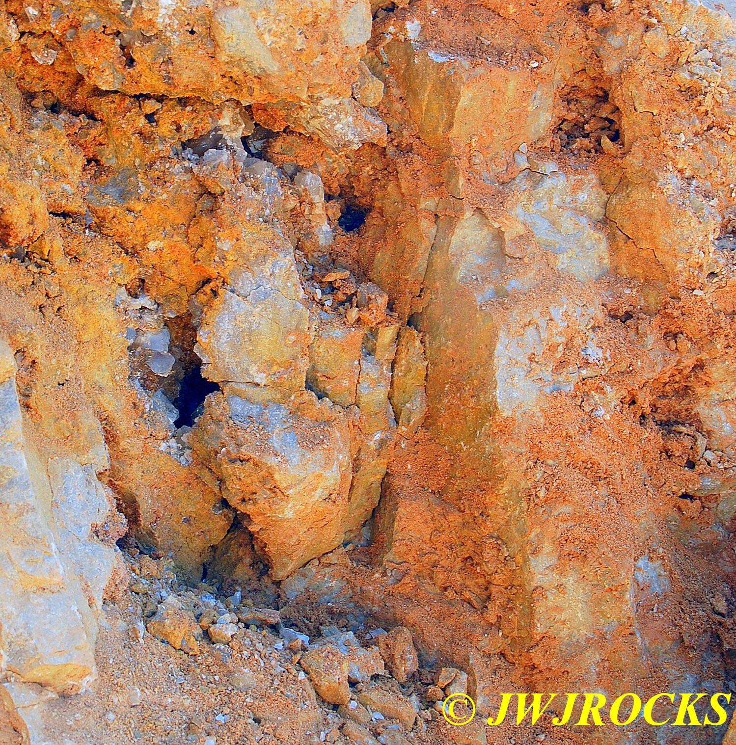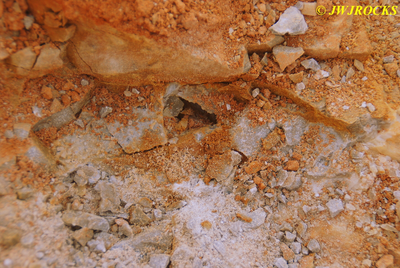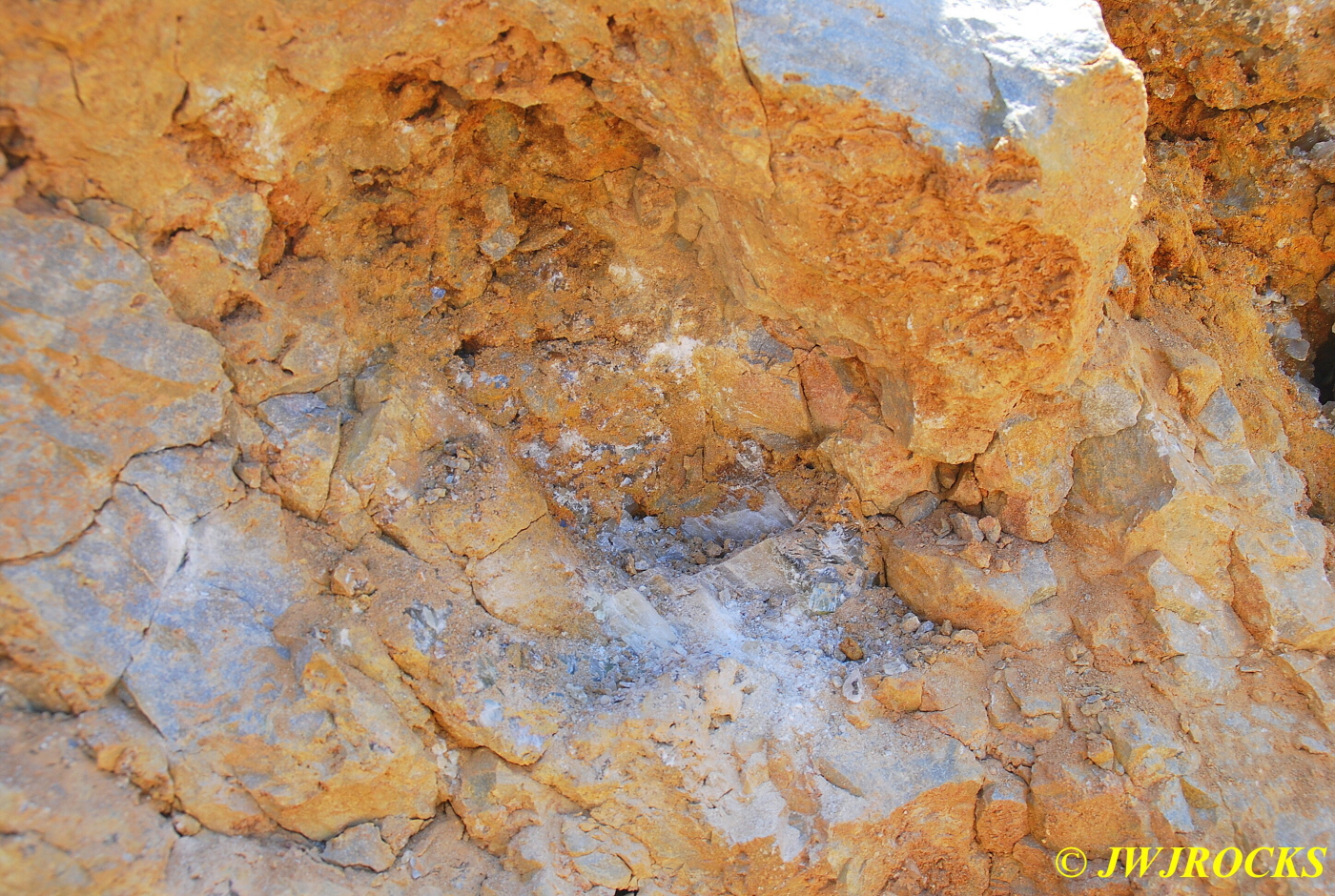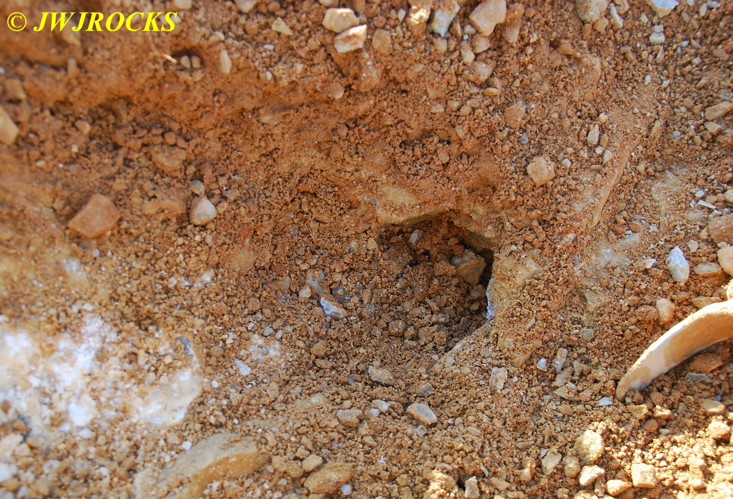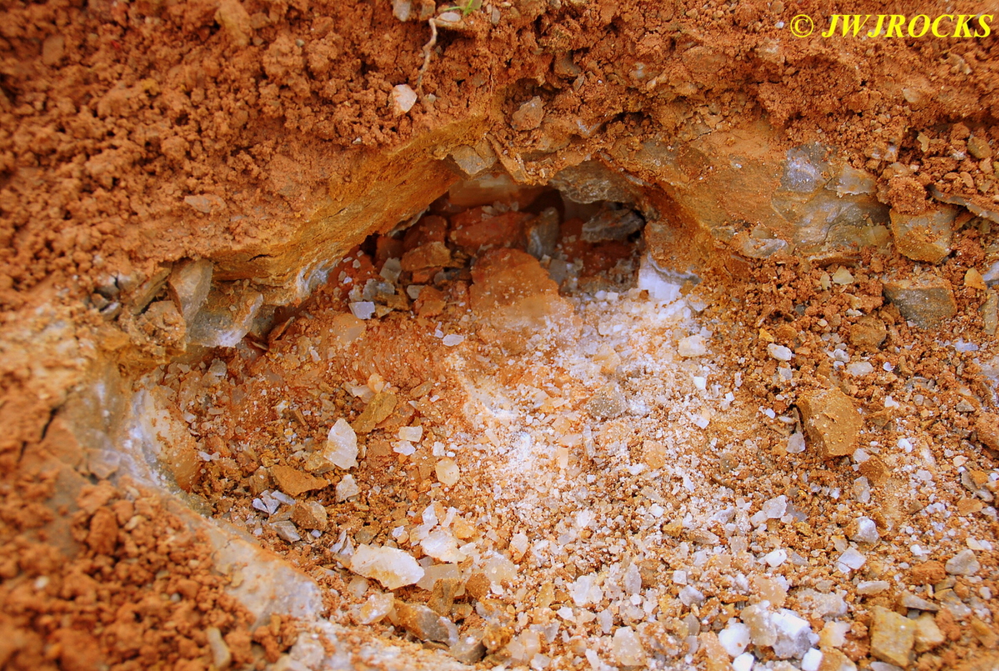 …I pulled my cellphone out and called Bill Frazer, and told him about it and he said he would return to check it out….here is the area that David was working in and found the pocket of calcite in…