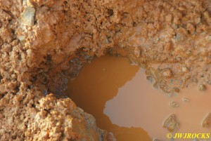 …and it pumped down pretty quickly…..I also found about ten gallons of water in the hole April and I had pulled clusters out of the day before, so I had to lay down and let my five gallon bucket fill and then get up and raise the bucket out of the hole and turn around to dump it…I decided to wash off the muddy bench and ledges with it and kill two birds with one stone.