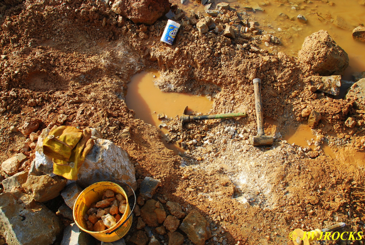 and luckily, with the help of some much needed rain earlier in the week, the digging was much easier to do than it would be had it turned off hot and muggy instead…the weather over the weekend was near perfect for digging long hours…alot of kids and families showed up to dig as well….I spent most of the morning helping others find a good place to dig in and even helped spot a few crystals for some of the newbies…and when the kids couldnt find anything good, I had them check out a pile of crystals I had placed on the ground near my truck for them to look through….and I worked the pump all day long too…