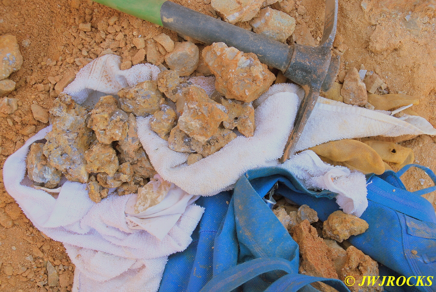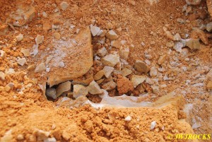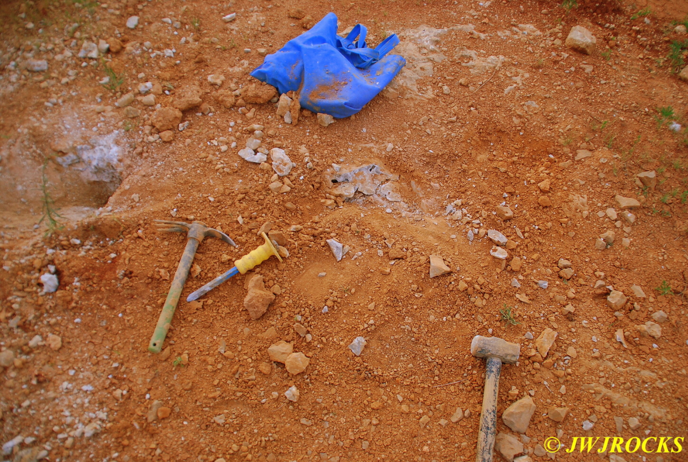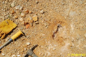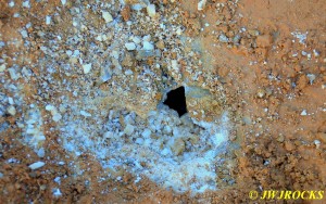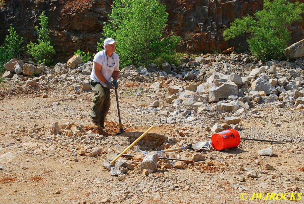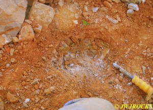…he was having a lot of difficulty early on, getting into the pockets due to someone having used a rock saw and hammer drill on a prior dig there….some people will tell you that power equipment like that makes it easier for others to follow but in all truthfulness, it makes it much more difficult for the next person or group to access the pockets. One of those things that sounds good, but in all actuality, its not really a good thing, helps one at the time but wont help anyone who follows later. Chris did find a few chisels wedged into drill holes that those folks werent able to get back out as well….guess that would be Karma…what goes around, comes around….