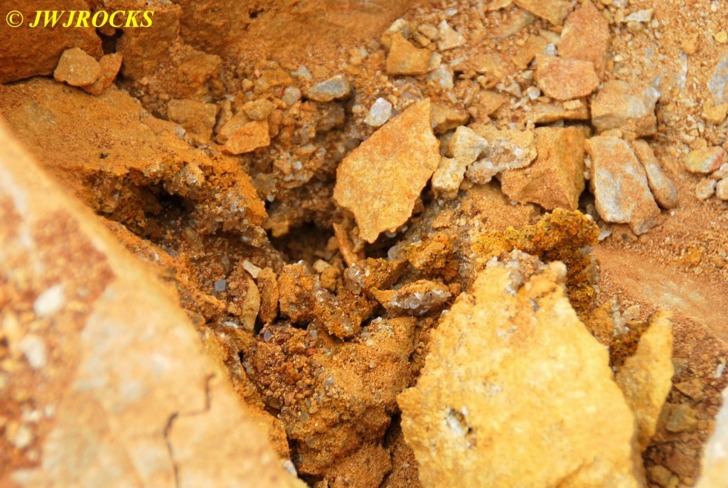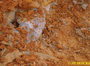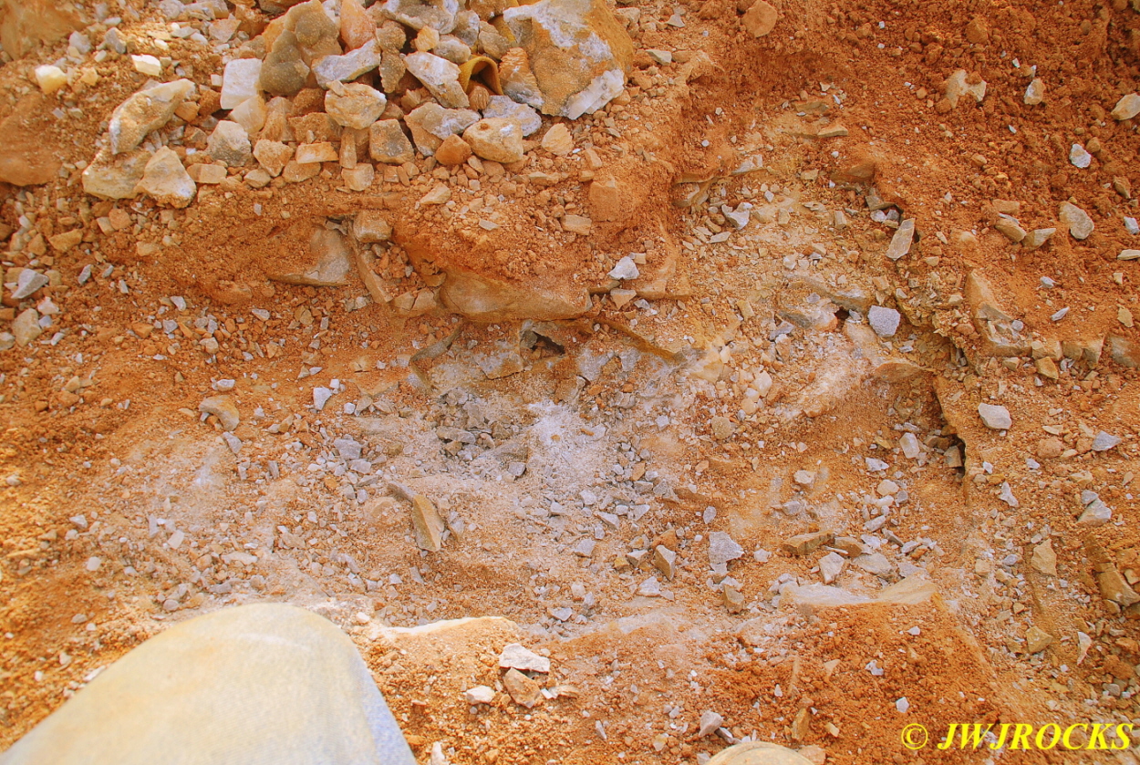 …Phil showed me some white, almost crystal clear fluorite that he found down in central Kentucky at some older fluorite mines near the Kentucky River that were quite pretty. Like me, they make several trips to the Eureka Mine for the public digs and are great to sit and visit with as well. They found some nice material in the south side dig pile too.