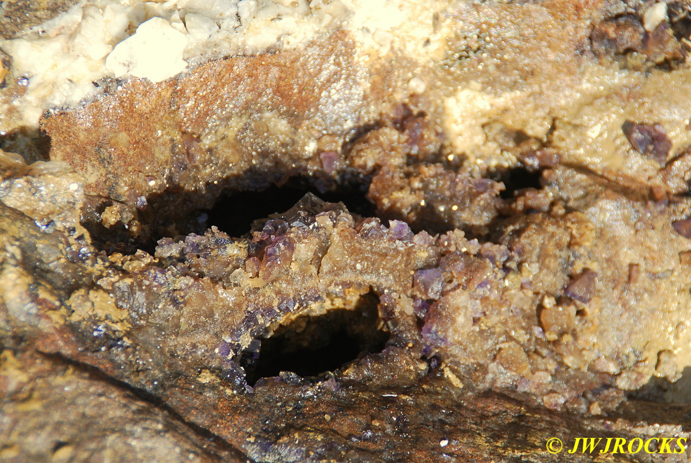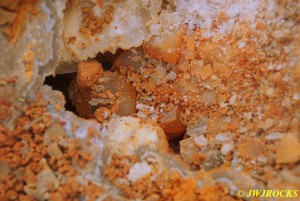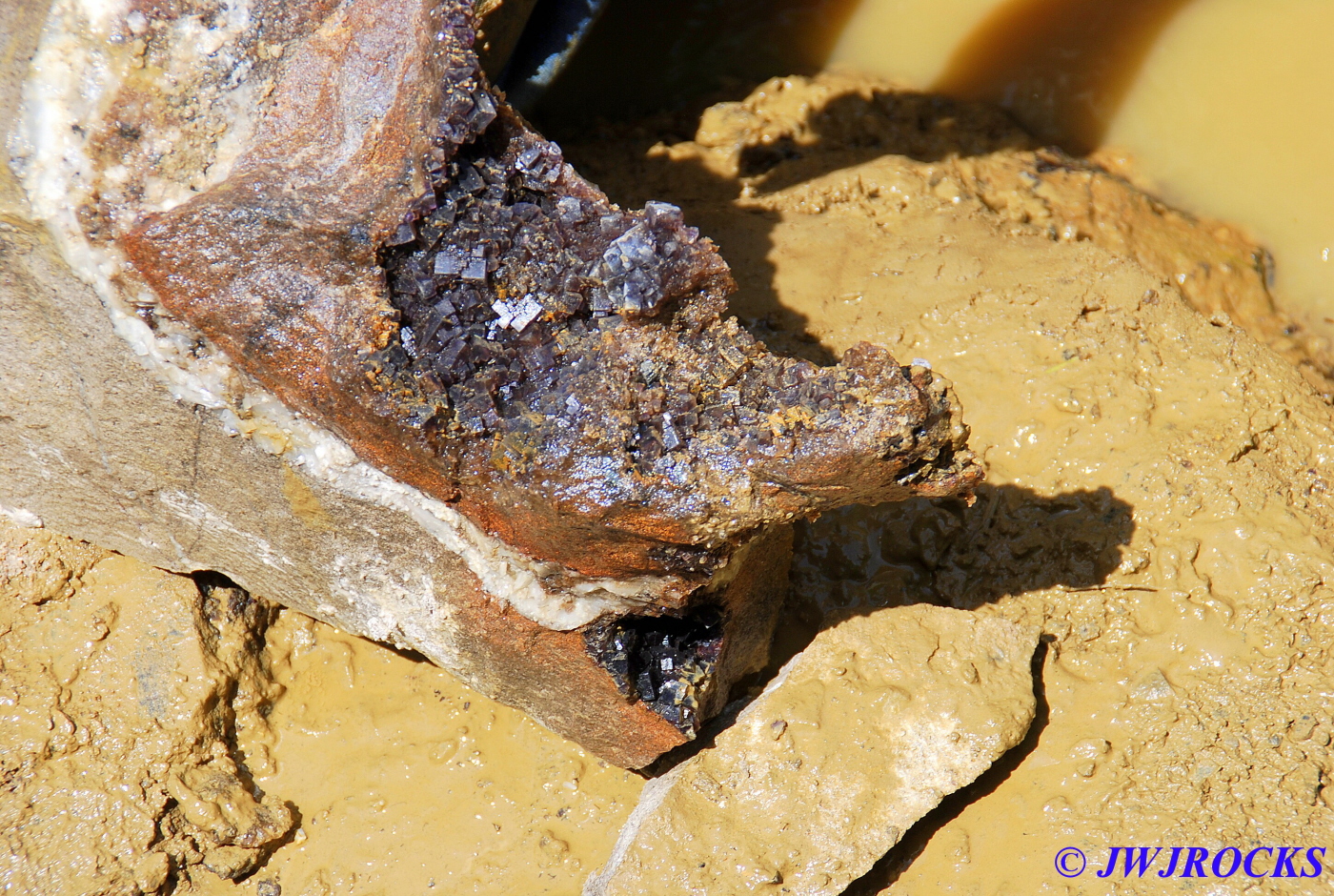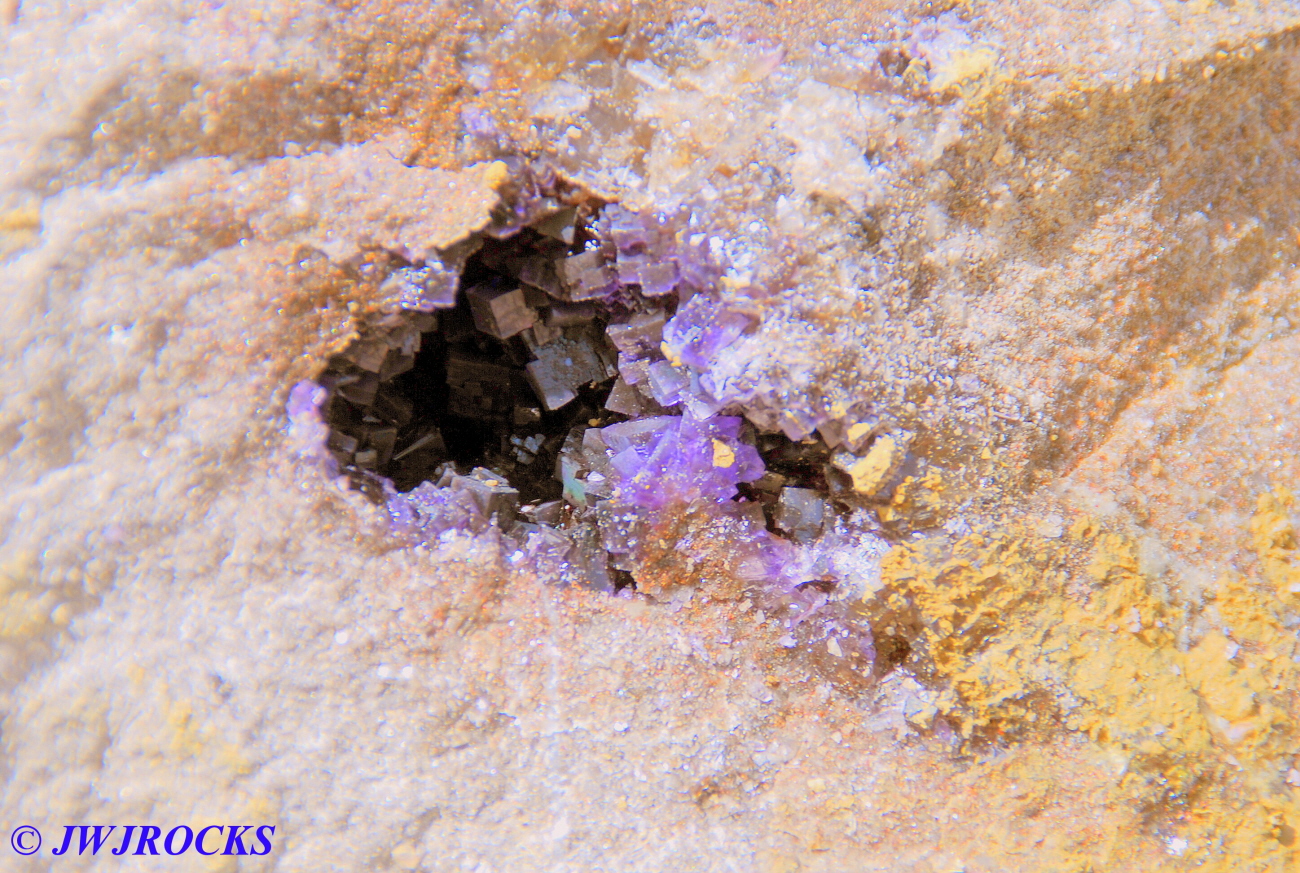 …and here is a pocket on one side of the other chunks that he took home with him….very pretty deep purple cubes inside it….