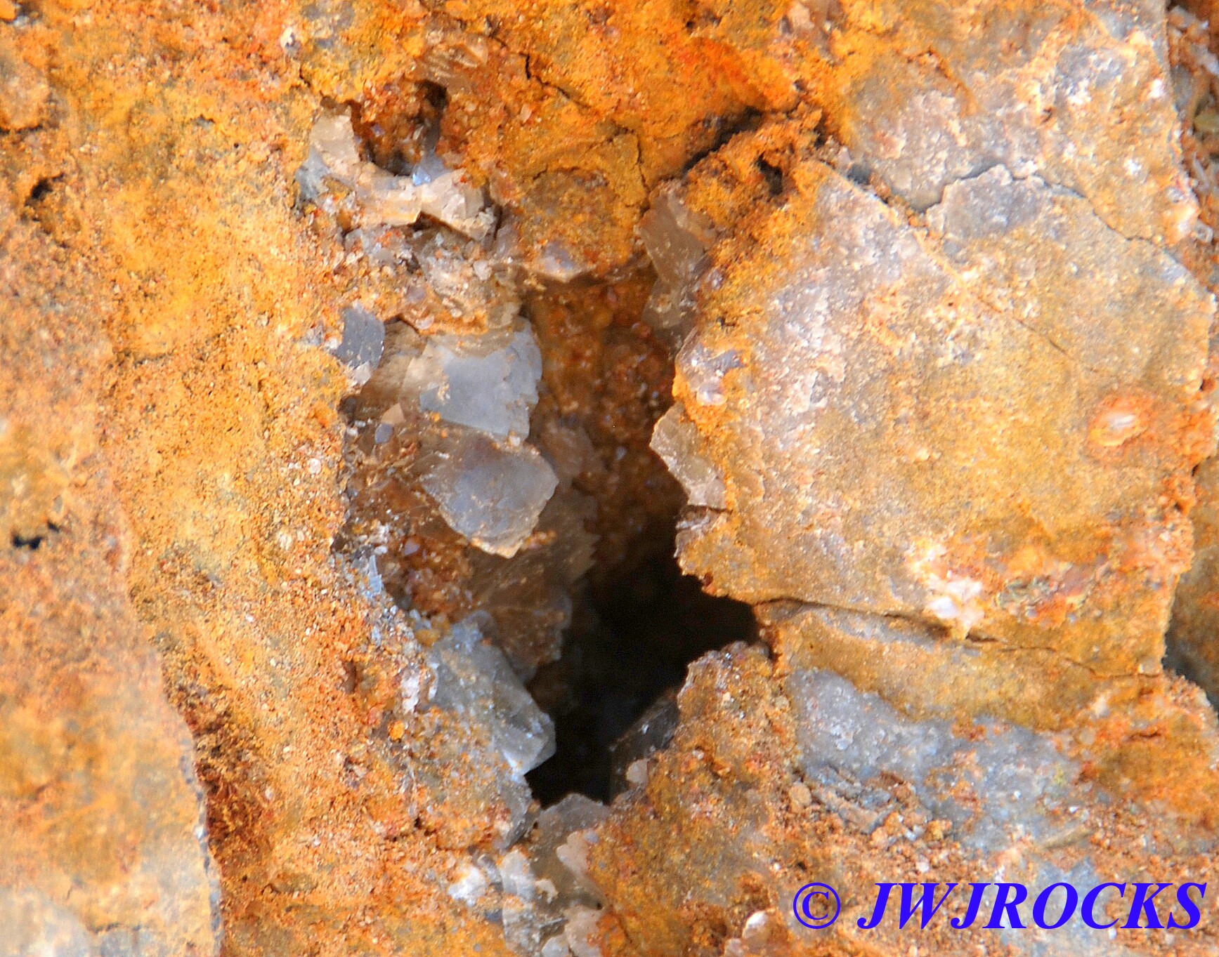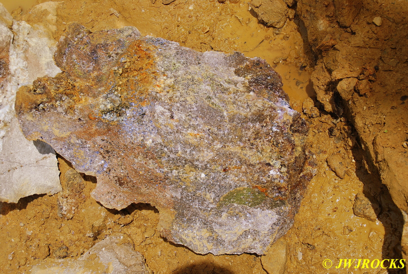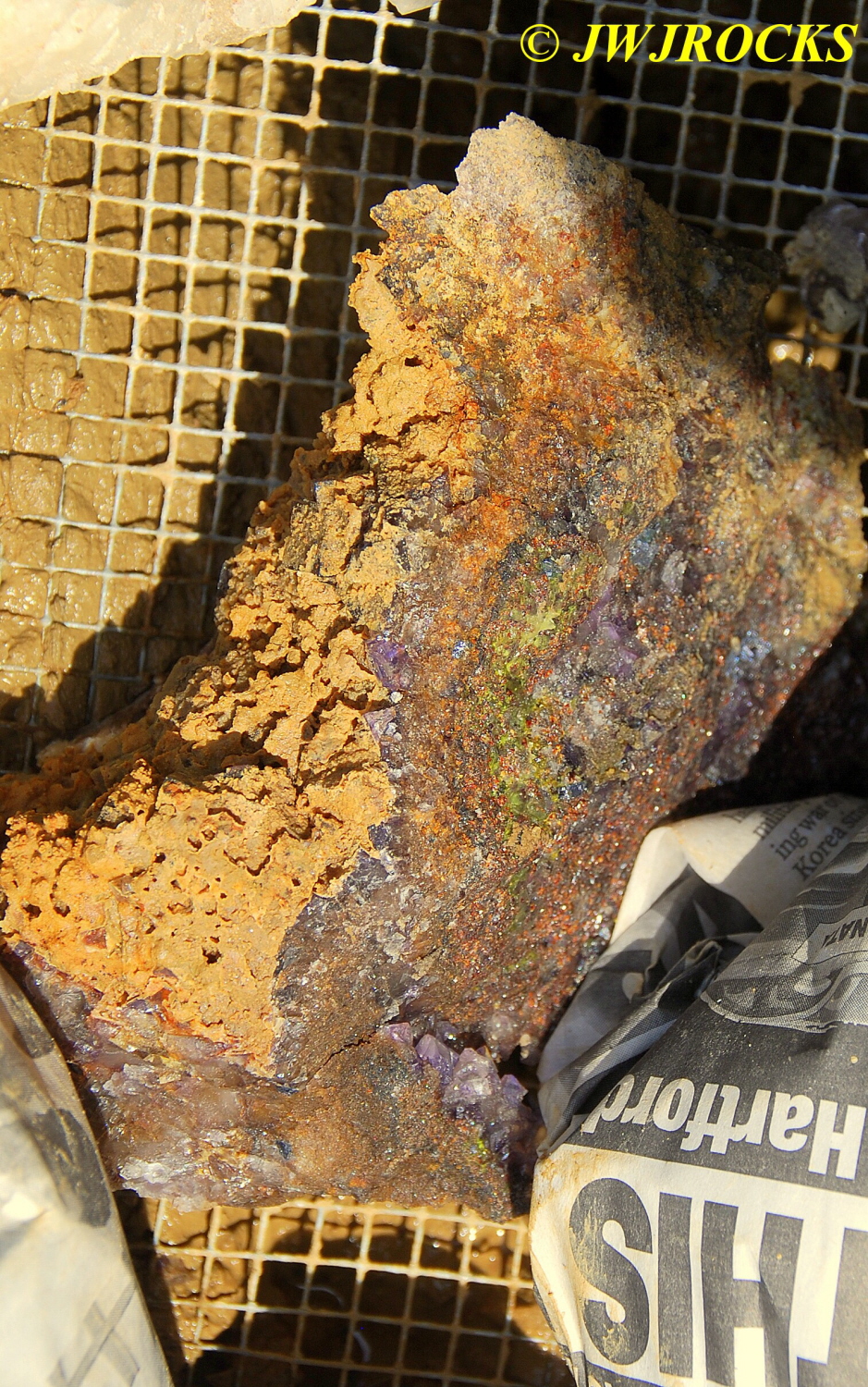 …and here is a pocket on one side of the other chunks that he took home with him….very pretty deep purple cubes inside it….