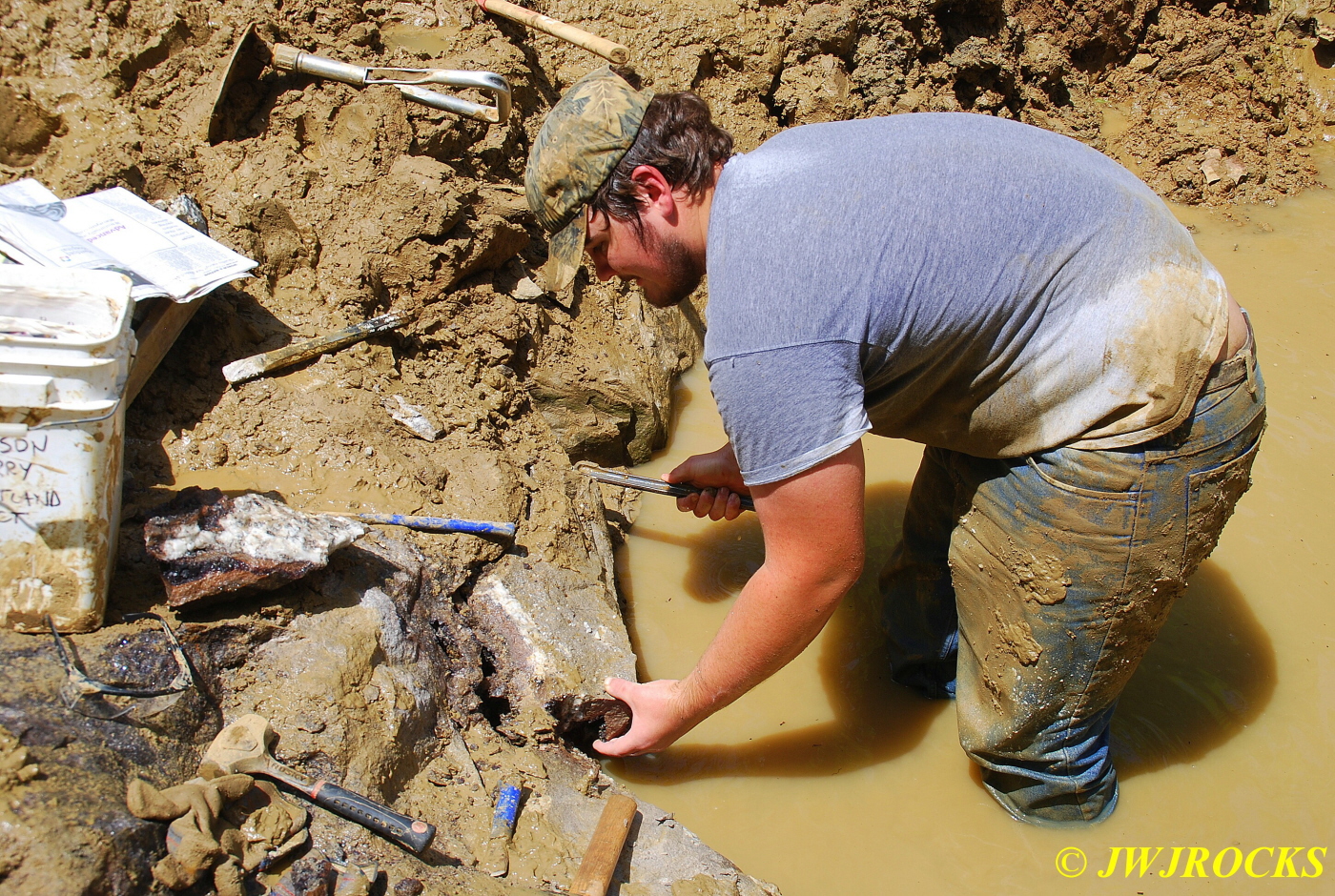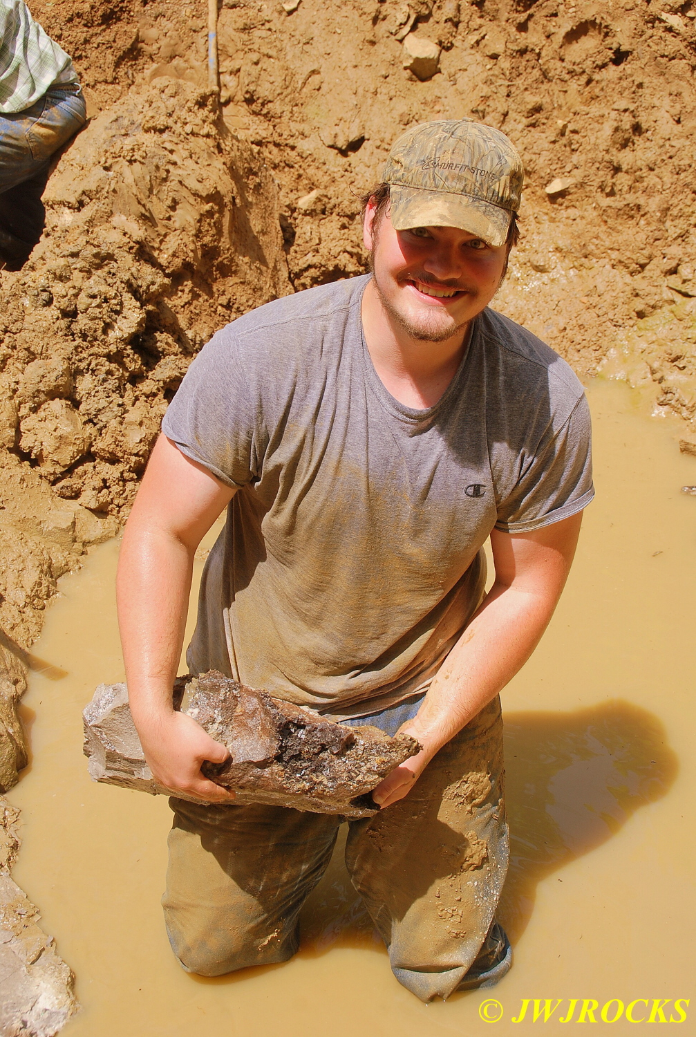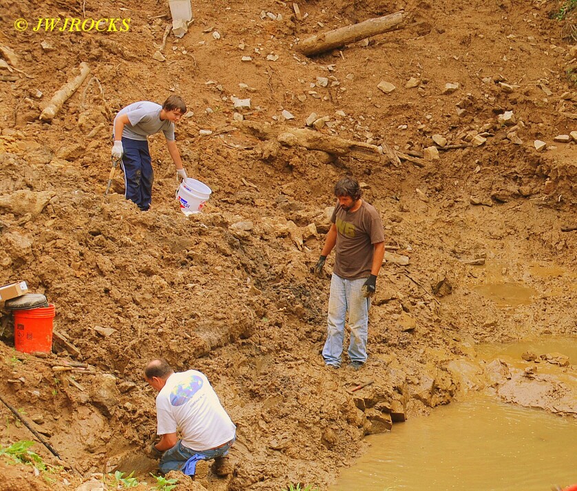 …and he reached down and pulled a small cluster out of that pocket down there, it was about to fall out into the water hole and then he would have had to put on scuba gear to find it….