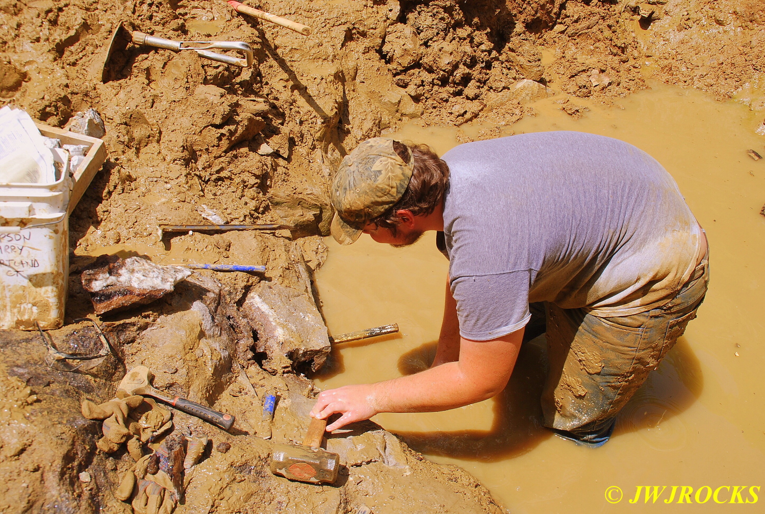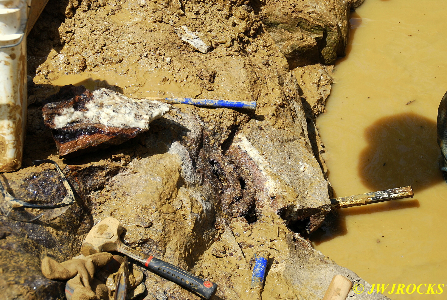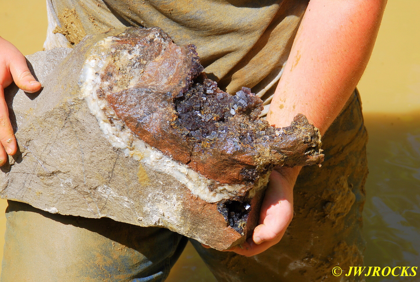 …and he reached down and pulled a small cluster out of that pocket down there, it was about to fall out into the water hole and then he would have had to put on scuba gear to find it….