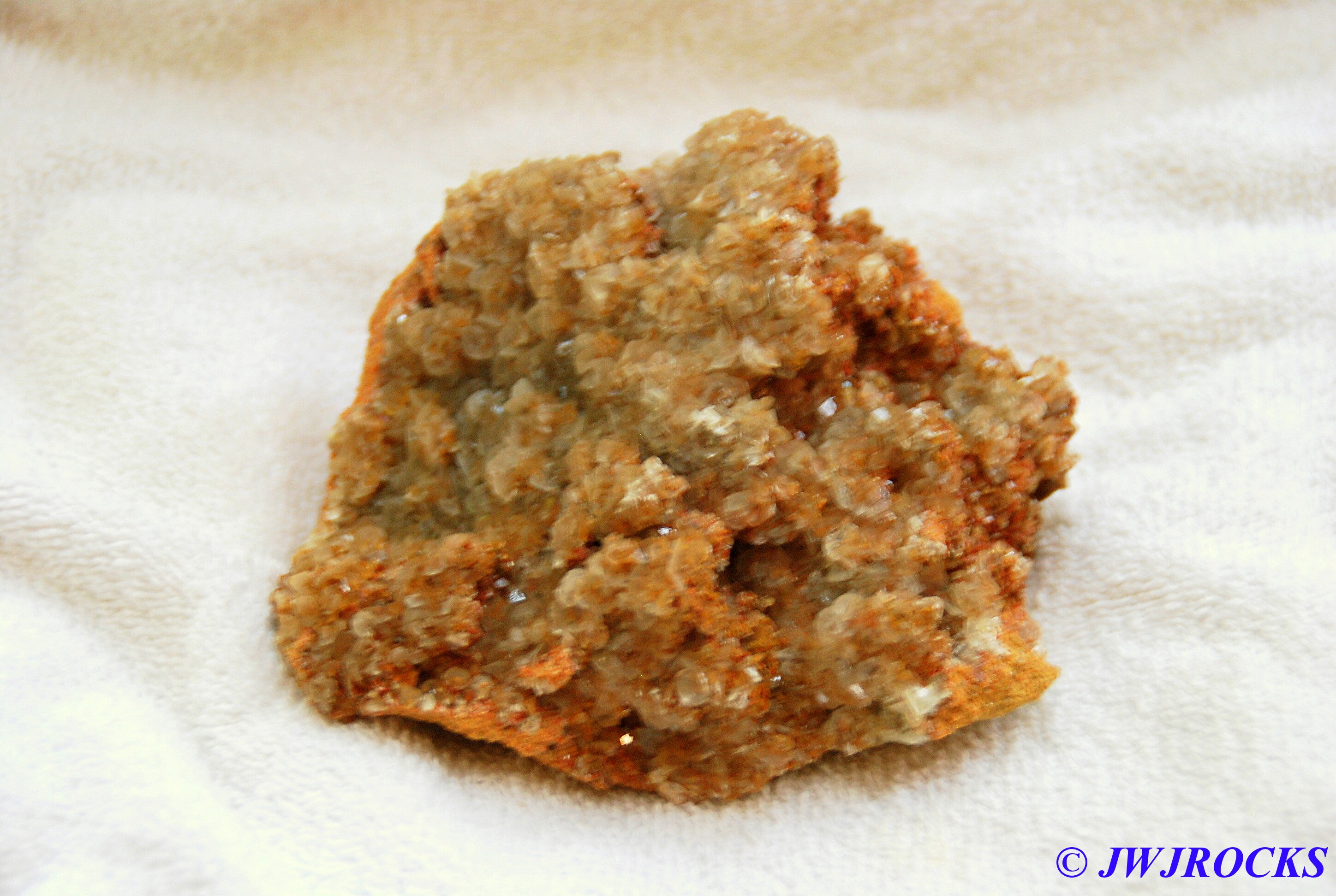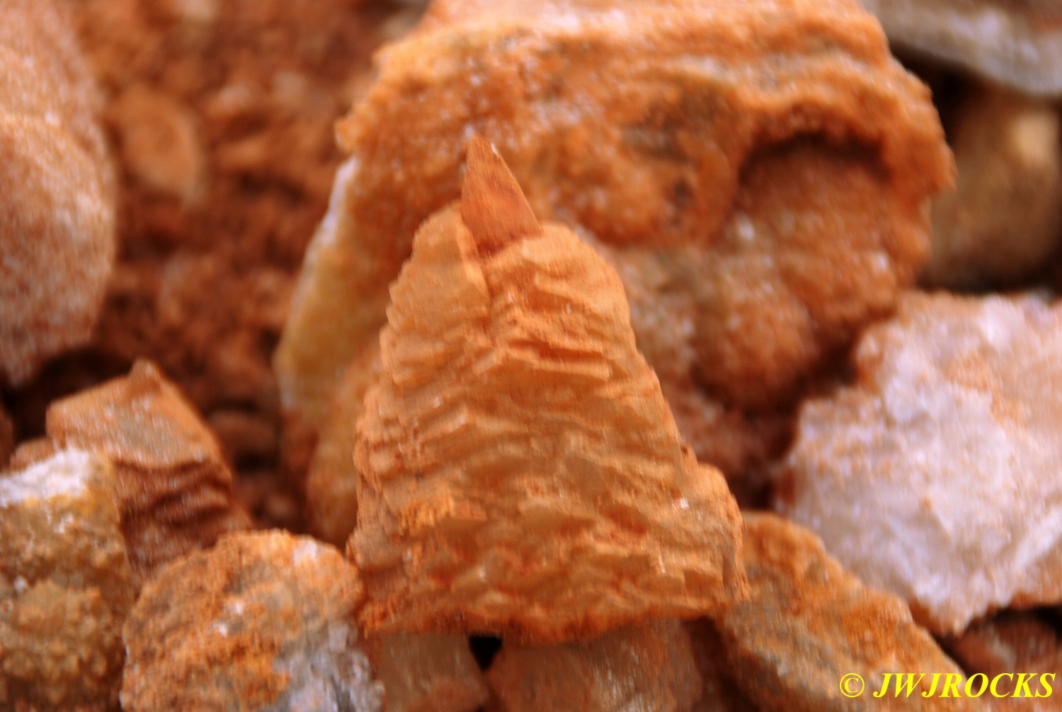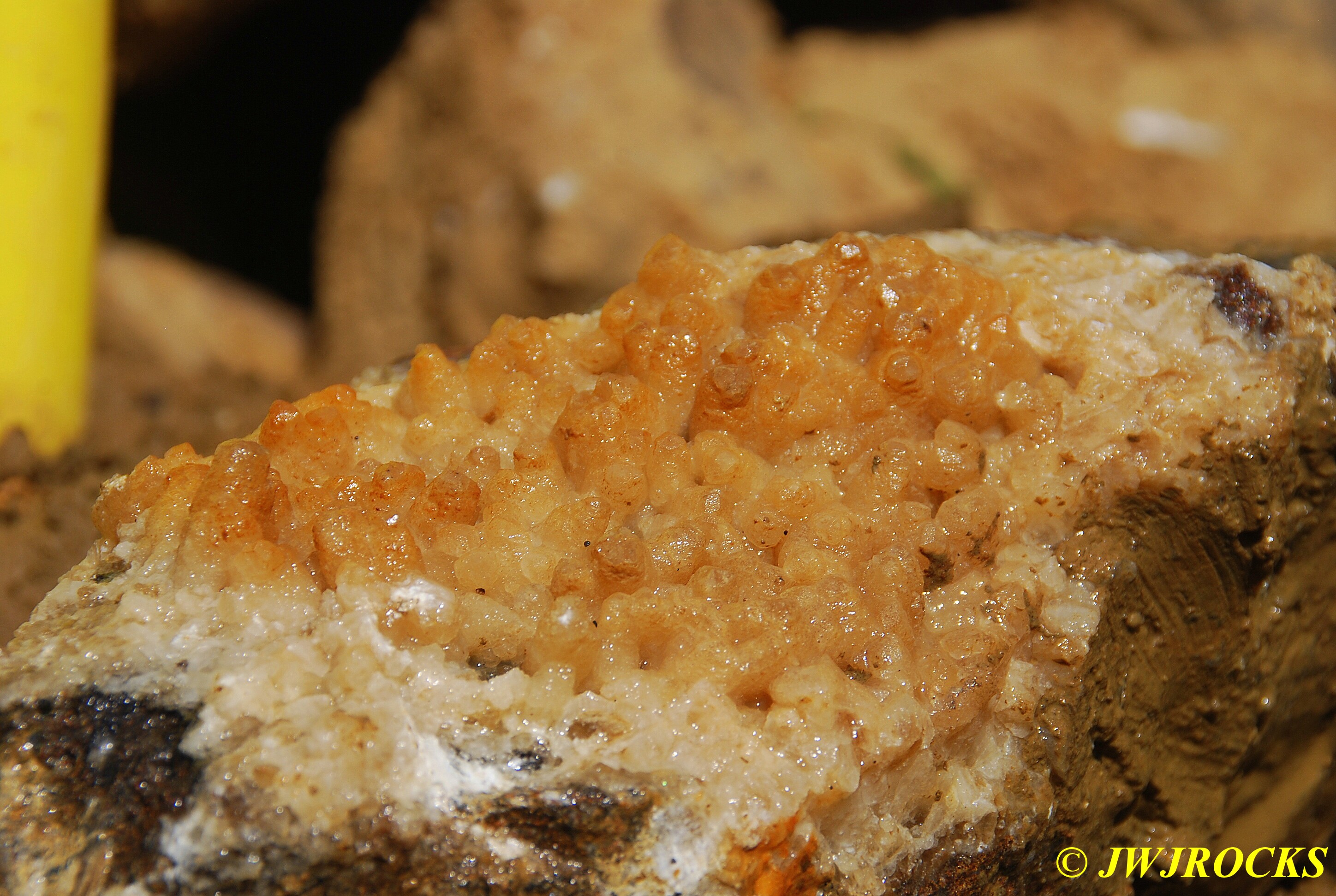 …..a small plate of half inch high orange dogtooth crystals that were absolutely beautiful to see, here up closer….