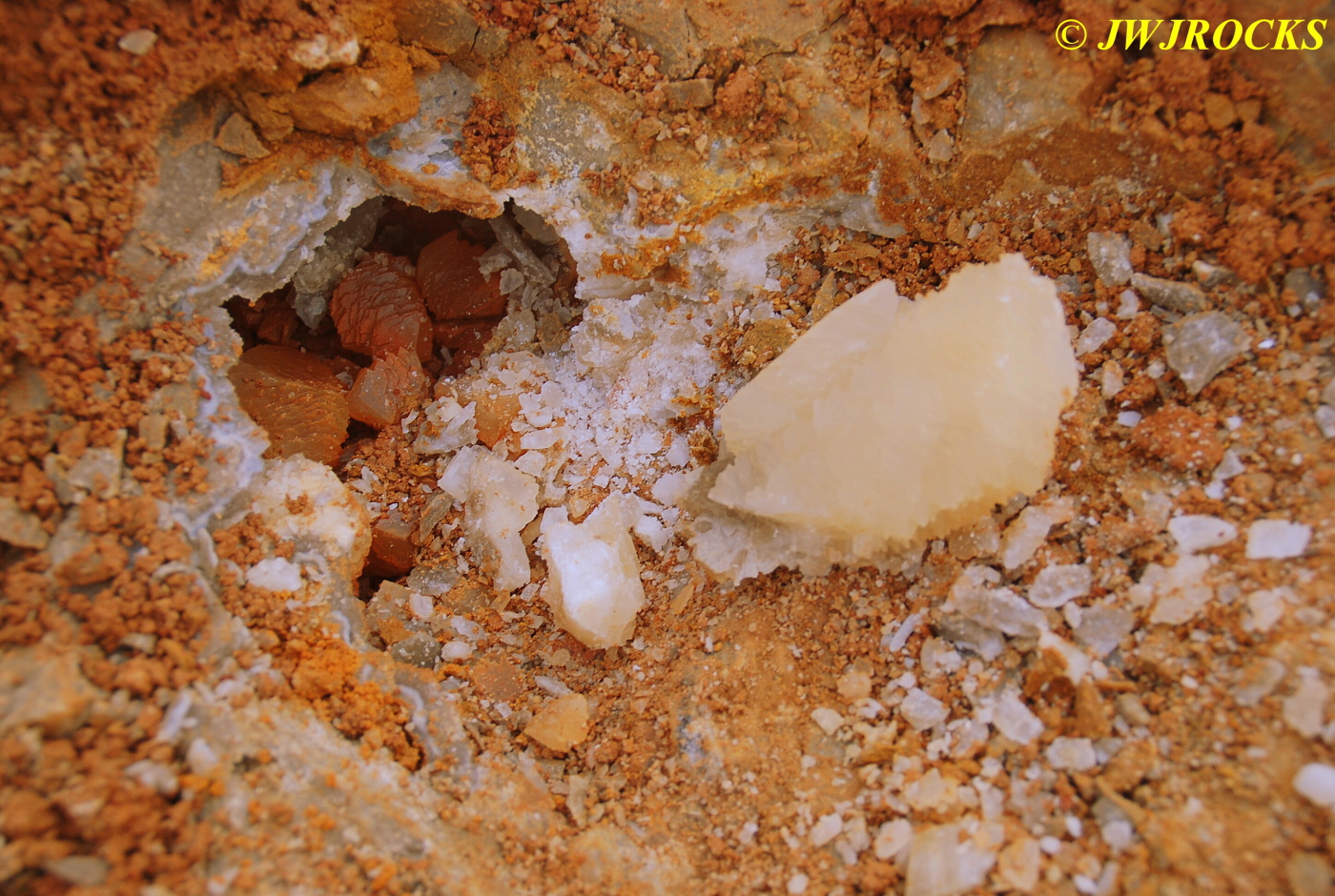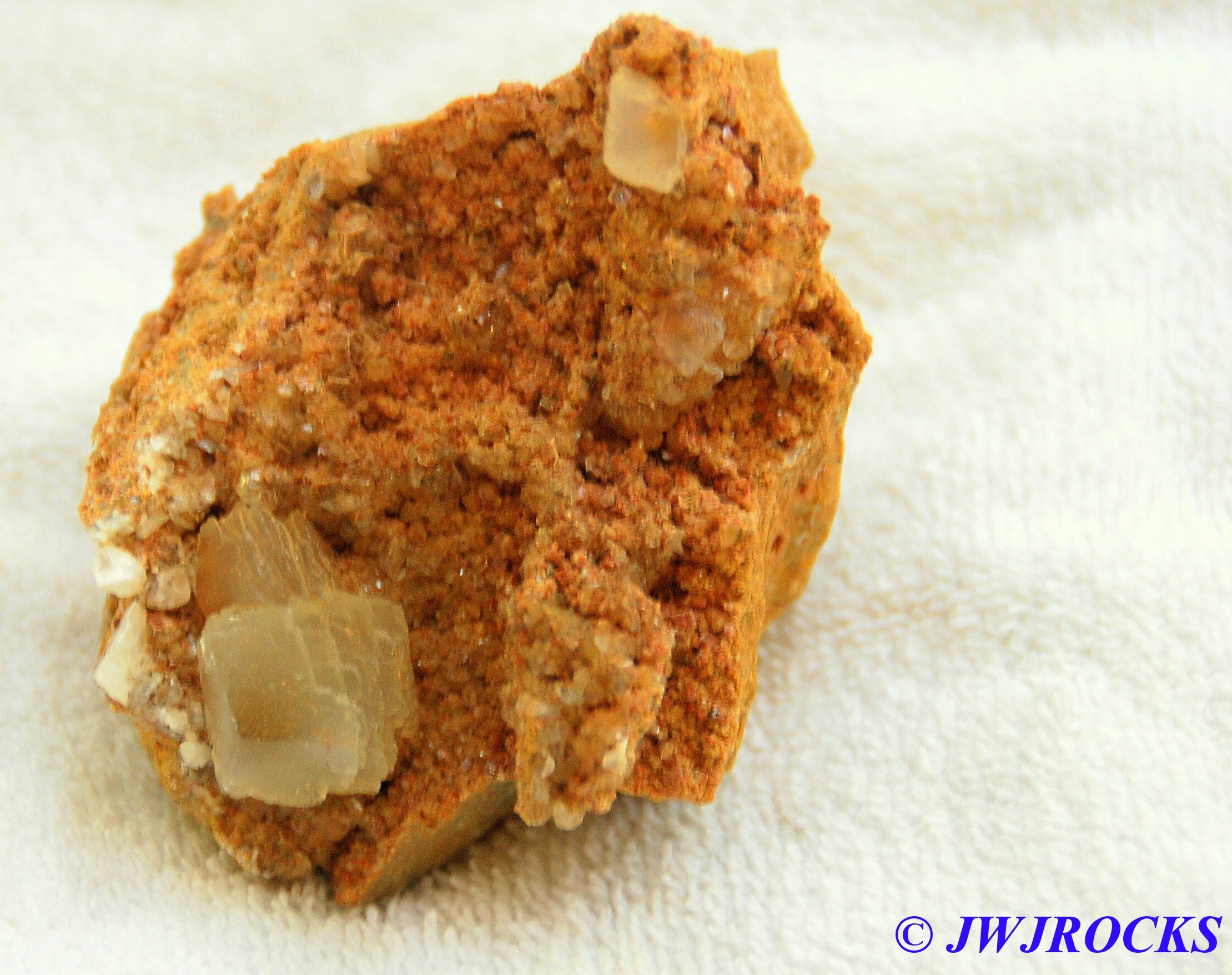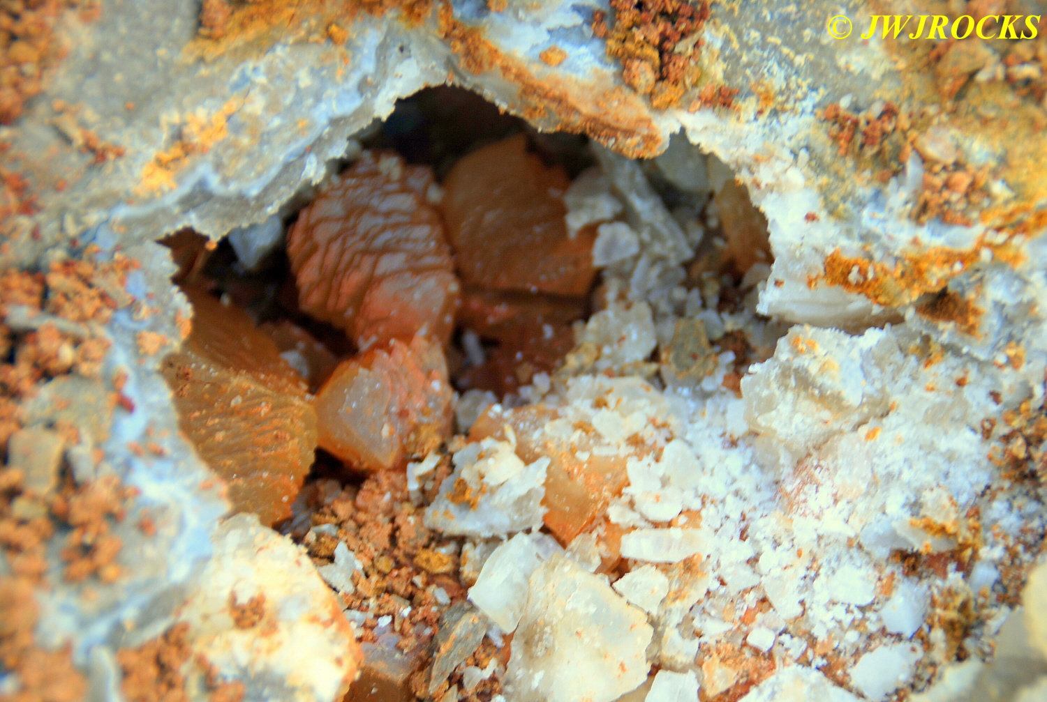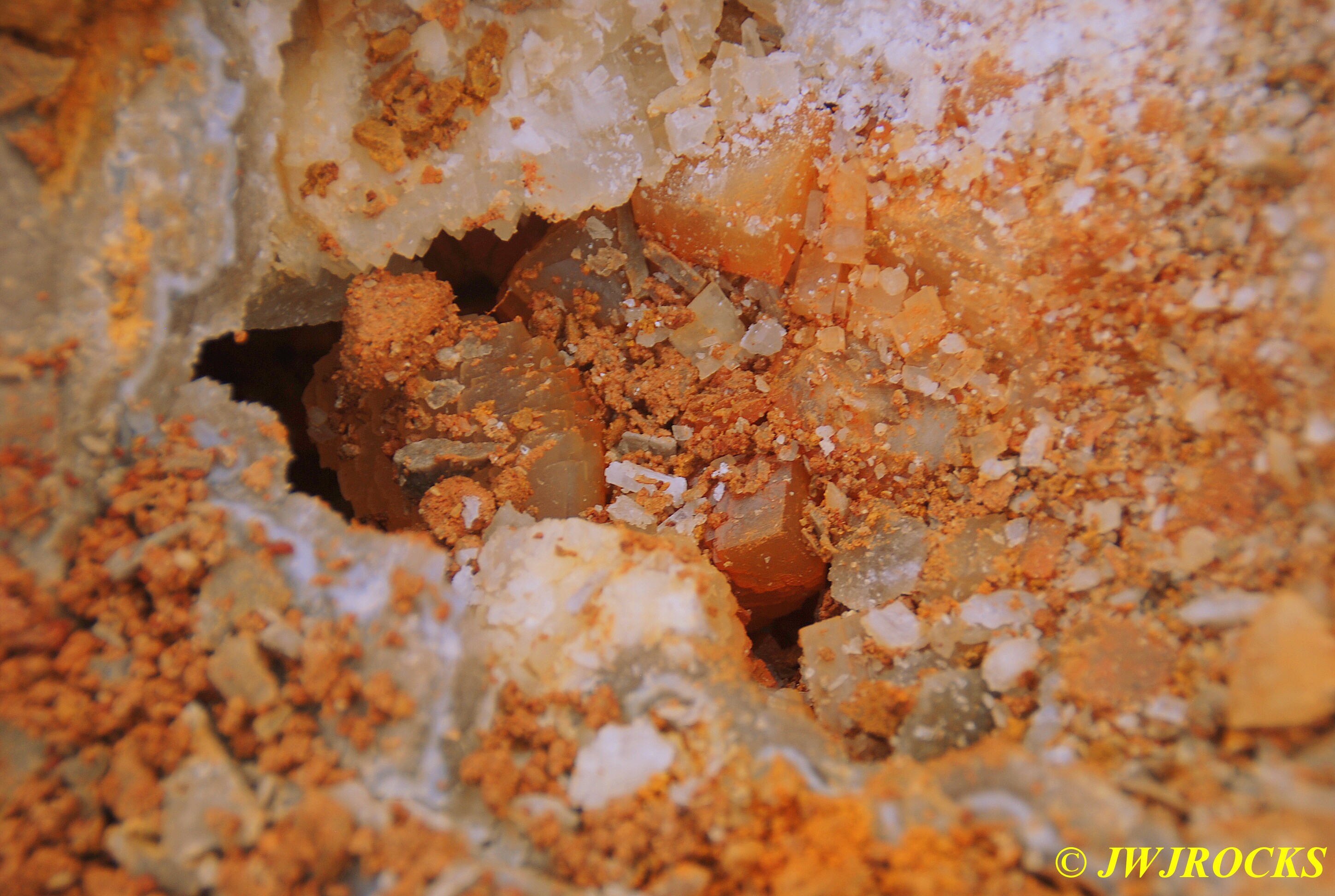 …..a small plate of half inch high orange dogtooth crystals that were absolutely beautiful to see, here up closer….