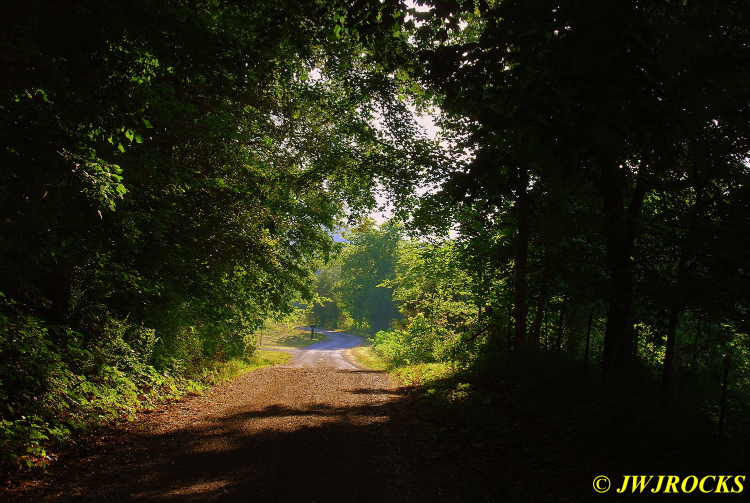 …and looking up the road, I no longer saw the bull, so I figured he must have walked up that hill to an opening….