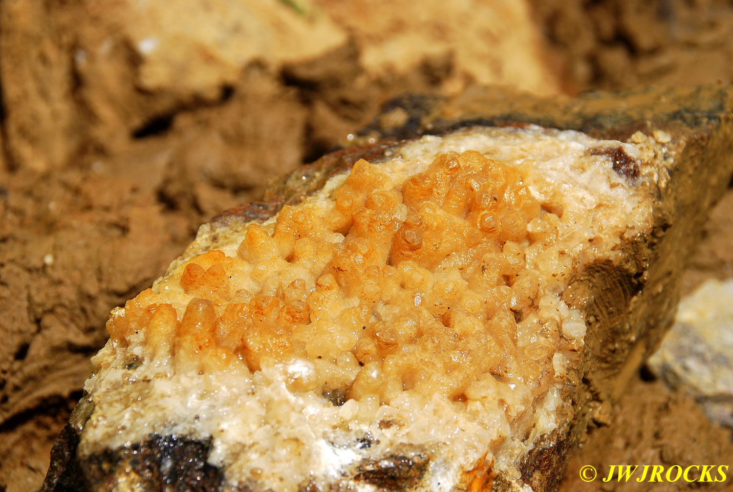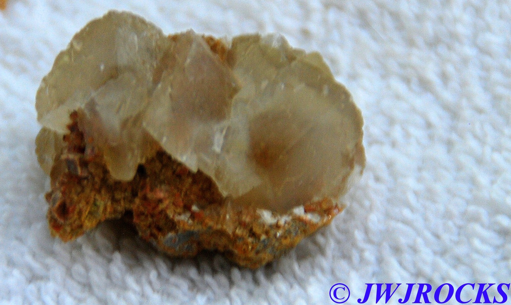 ….well a few minutes went by and David found yet another plate of calcite crystals…these looked like little orbs of calcite melted down on a bigger plate……seen here close up…..