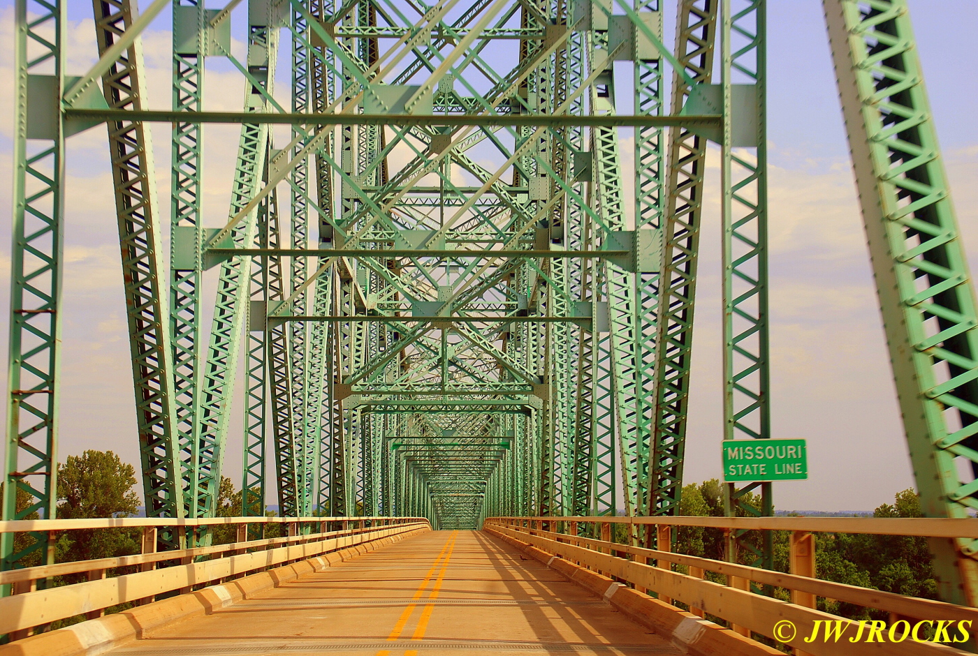 I crossed the Mississippi River on the first of two beautiful steel structure bridges shortly after….