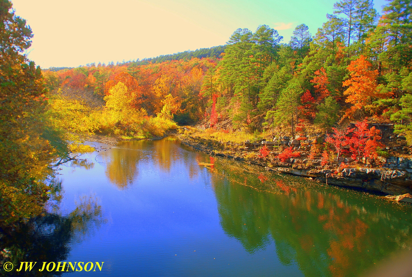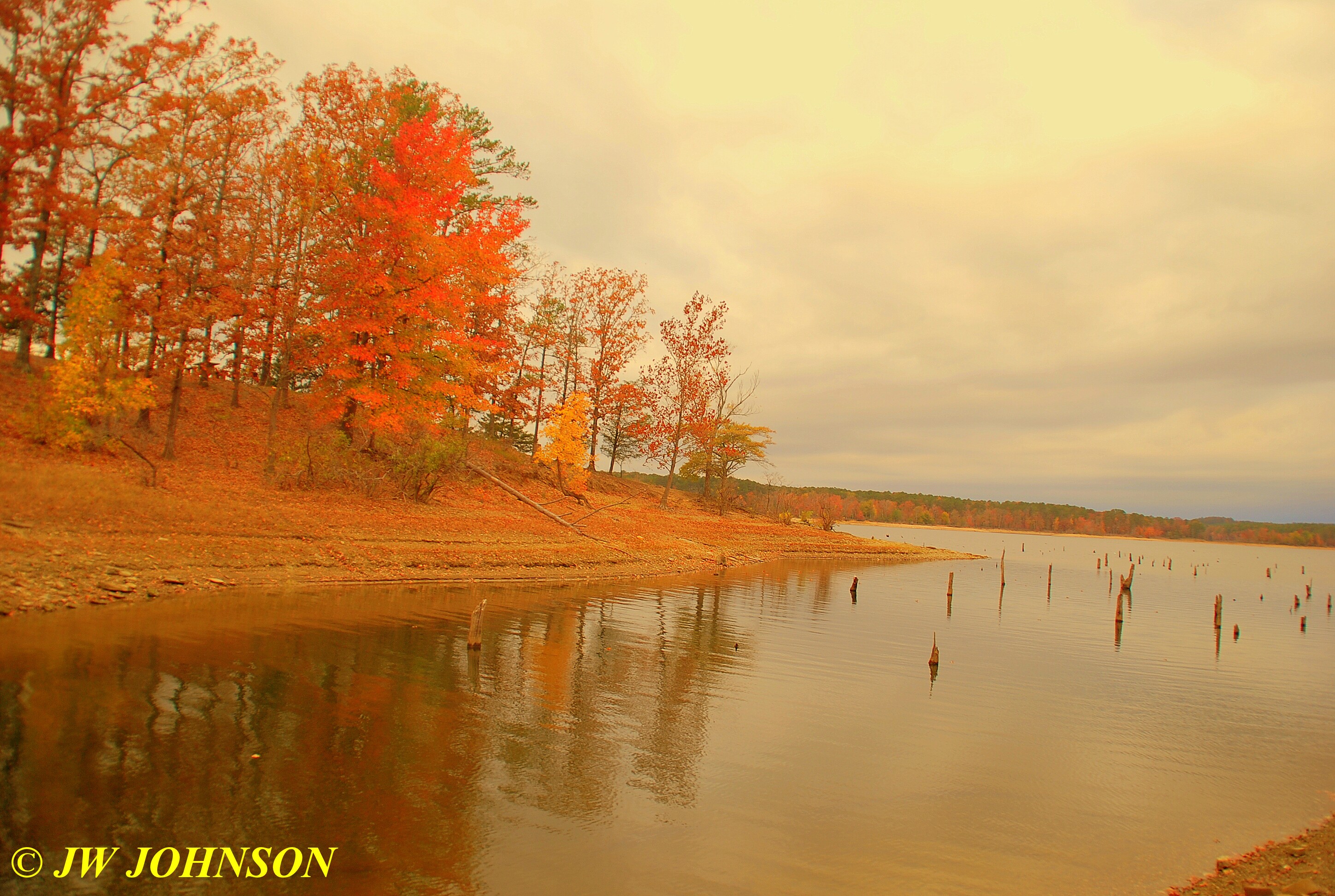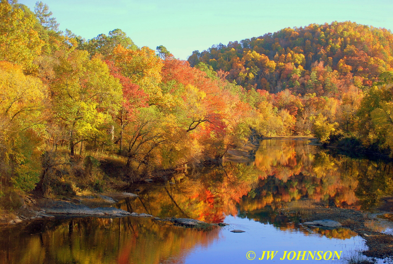 …it was absolutely gorgeous color on the east bank…and then I took a good look at the reflections in the water and in the distance the color on the trees on the hillside was fantastic too !!