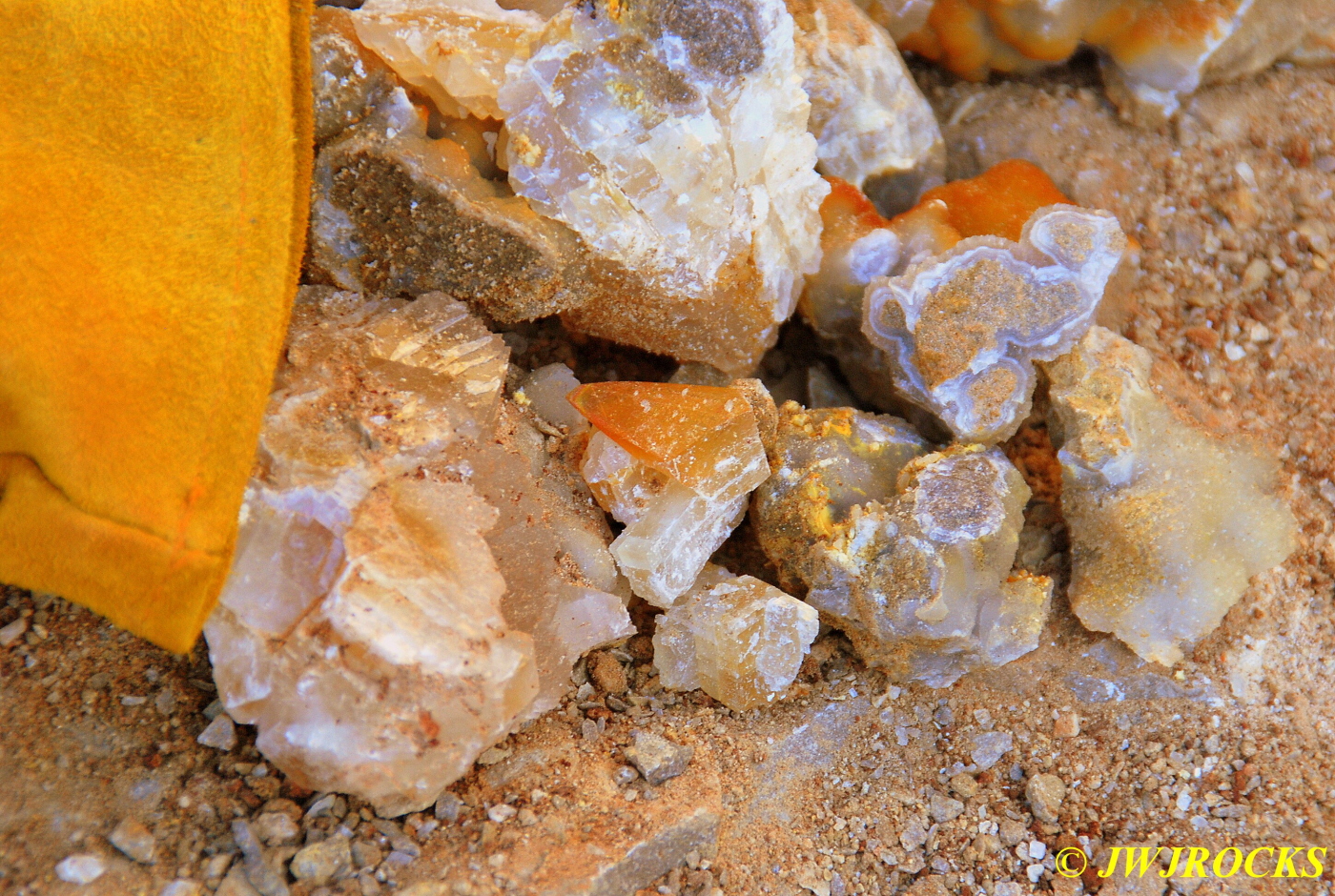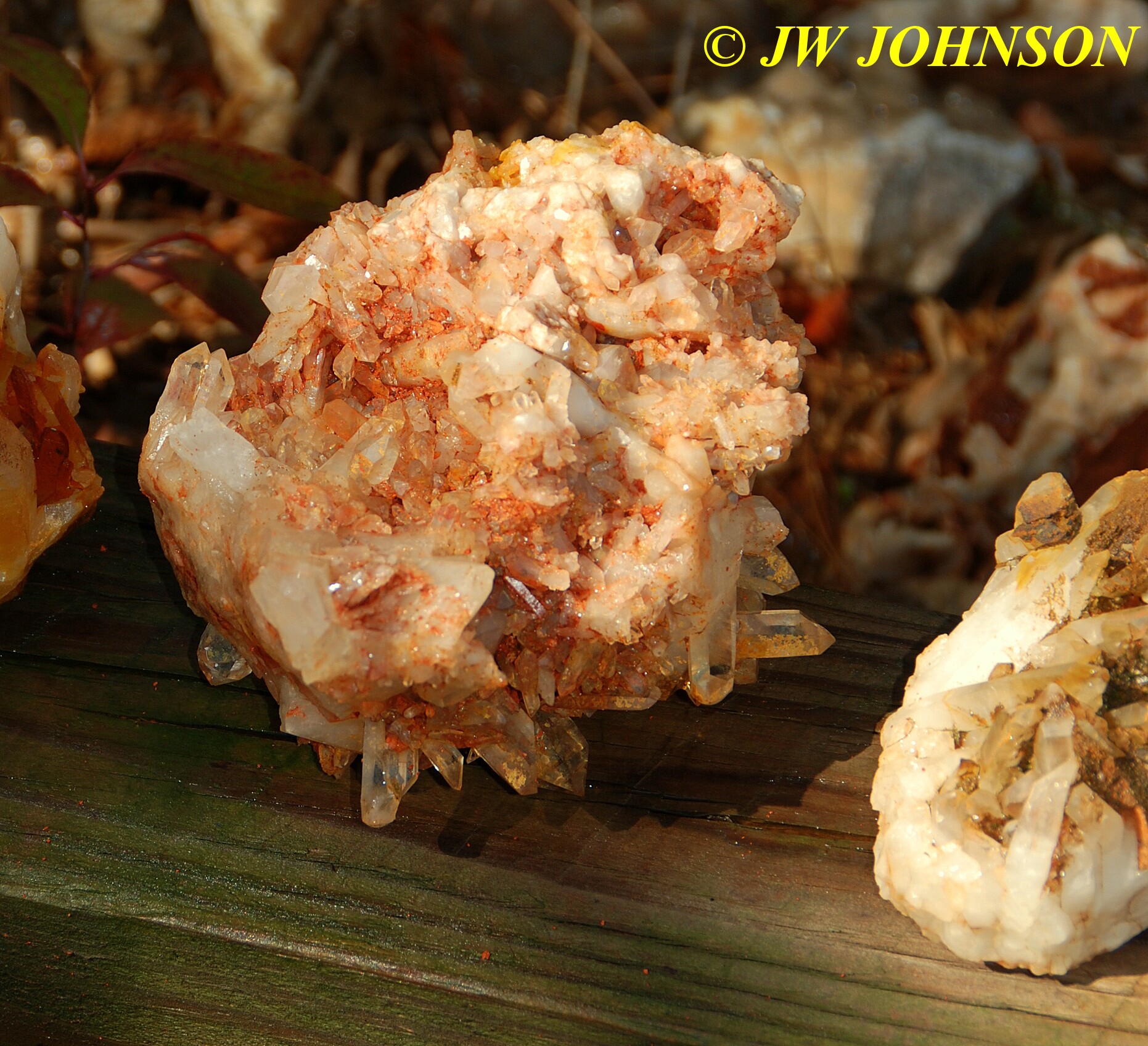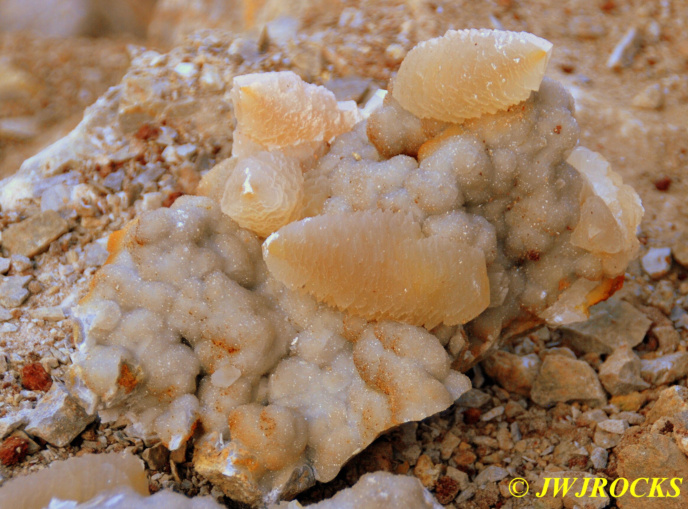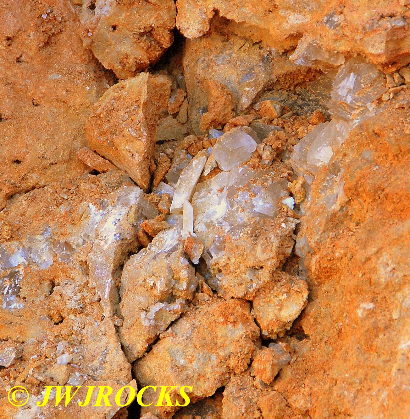 And now for the rest of the story on the history of this mine, told to me by several sources down there….several years ago, Ocus sold his remaining lease on the mine to Jimmy Coleman, who took his digging equipment up there and dug down into the sandstone and dirt…. discovering a huge crystal cavern, with large crystals in single points, doubles, and clusters with VERY BIG crystals attached to the walls and the ceiling…they removed as many as they could and took them to the Tucson show, where he made a huge profit selling them. The story I was told…by two different people who dont know each other but know that area well…was that while removing those crystal clusters, a hole opened up in the back wall behind that cluster… they took a flashlight and looked inside…. saw a cavern even bigger and deeper than the one they were standing in, also loaded with crystals and clusters, some of them looking like they would fit on a pallet just fine. They covered the opening to the original cavern with plywood and dirt…. and made plans to return to excavate the second cavern, but alas, the Forest Service refused to allow Jimmy back in nor honor the remaining time left on his lease. After hearing what he had paid the Forest Service for that lease, I can well understand why many people have no respect for our Forest Service any longer. Things like this can leave a bad taste in your mouth.