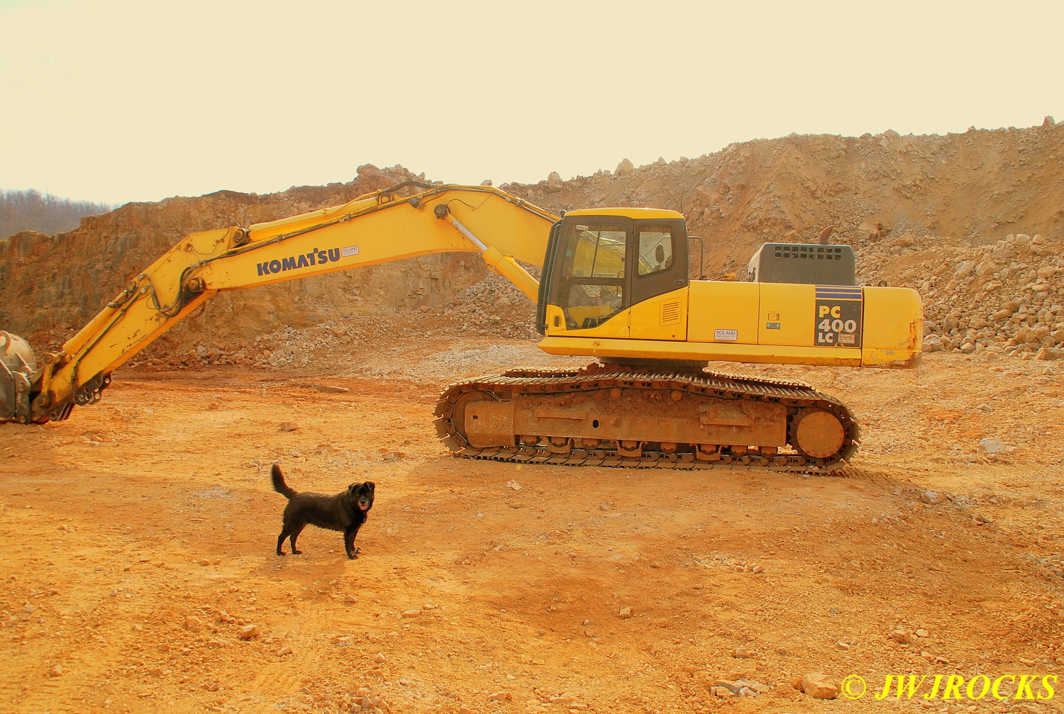 Ray and I dug for a couple of hours and found absolutely nothing…let me rephrase that….we found absolutely NOTHING worth taking home with us……there, thats better. Randy arrived about noon and asked Aaron what we were finding…Aaron told him we were finding absolutely NOTHING and suggested that he fire up the track hoe and dig out the area a bit to see if any pockets were truly located there. After several attempts, and a battery jump with assistance from Aaron, Randy was finally able to start the track hoe and proceeded to dig out the area we had previously been digging in. Once finished, he pointed to an area farther up hill that he felt contained a pocket and then suggested that we start digging out the area we had already dug into. After a few minutes of digging and again, not finding or even seeing evidence of any crystals, he suggested that we settle up.