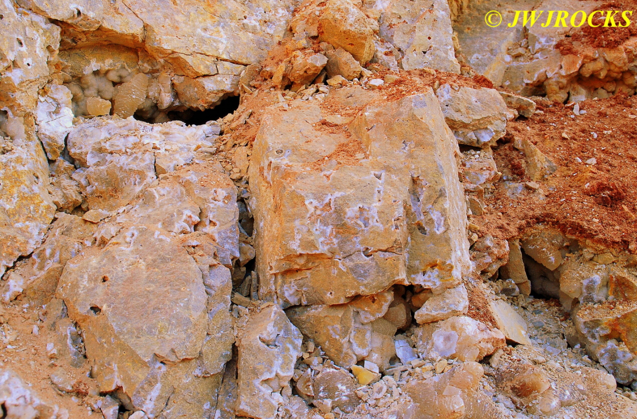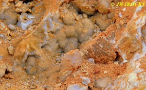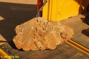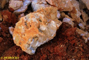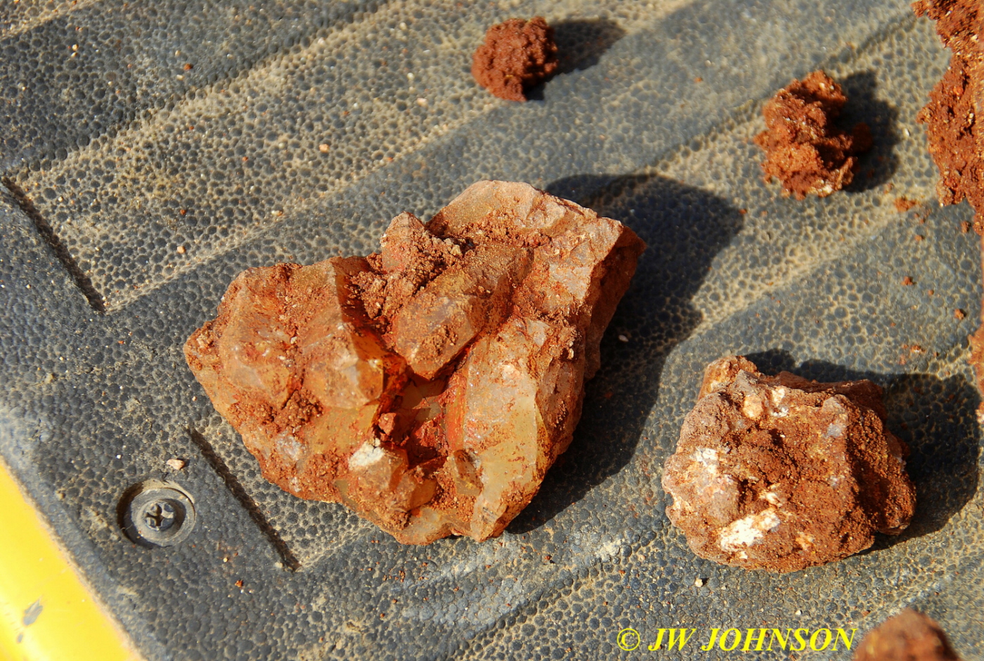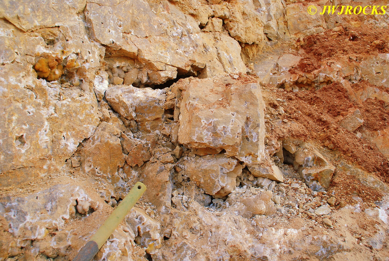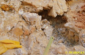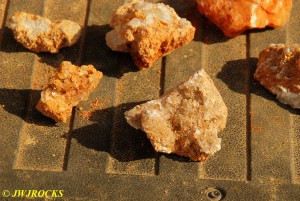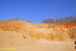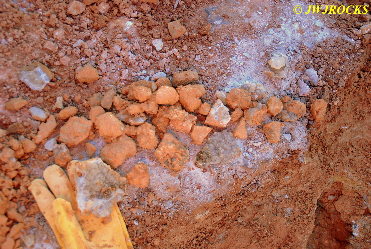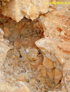 We walked down to the east end and only found more rock down there, no easy digging, so we returned to the main area and began looking for some potential areas to dig into……we met up with Larry Badger and the rest of his club party there…they had done quite a bit of digging since arriving there at 9 am, but hadnt found much and were preparing to head to a known locality for wavellite.