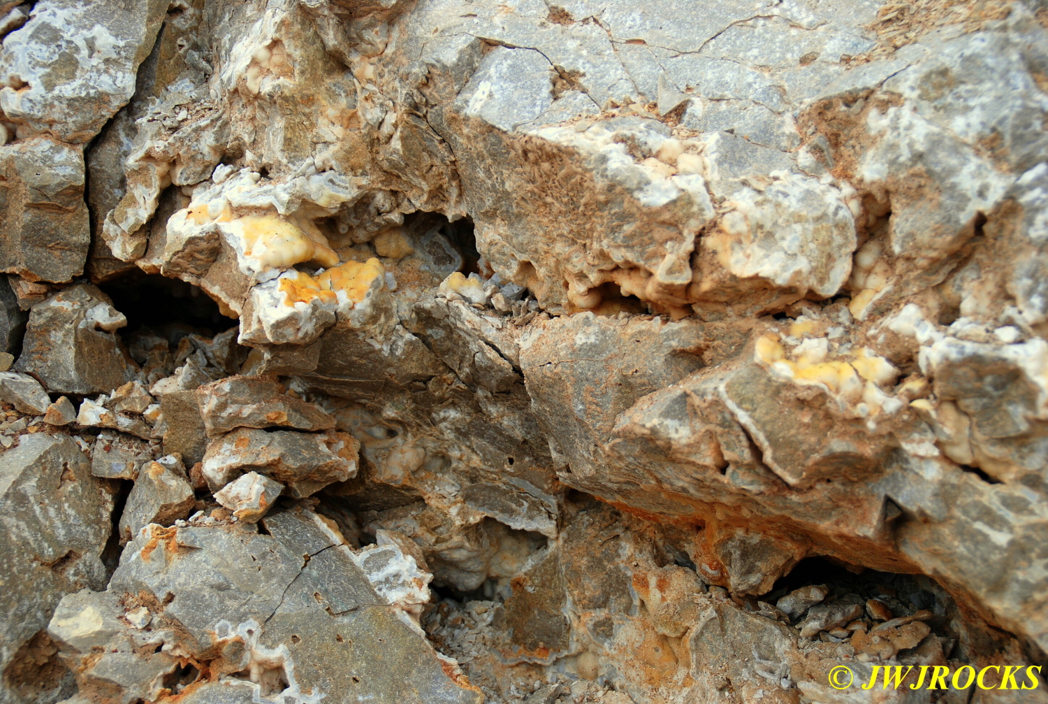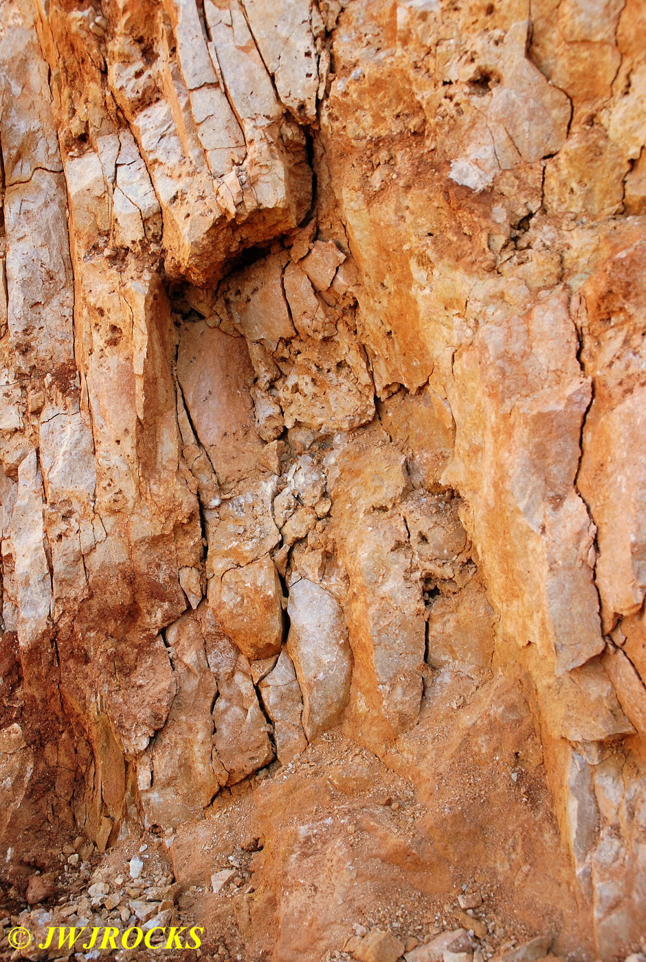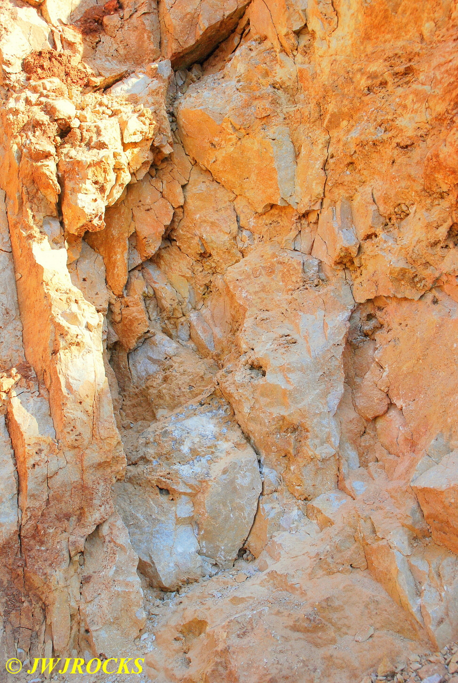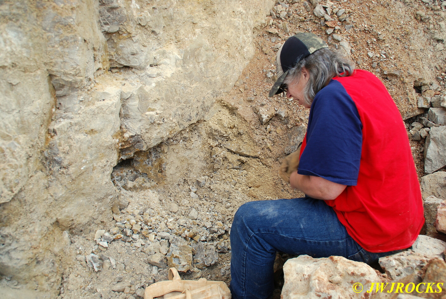 We walked down to the east end and only found more rock down there, no easy digging, so we returned to the main area and began looking for some potential areas to dig into……we met up with Larry Badger and the rest of his club party there…they had done quite a bit of digging since arriving there at 9 am, but hadnt found much and were preparing to head to a known locality for wavellite.