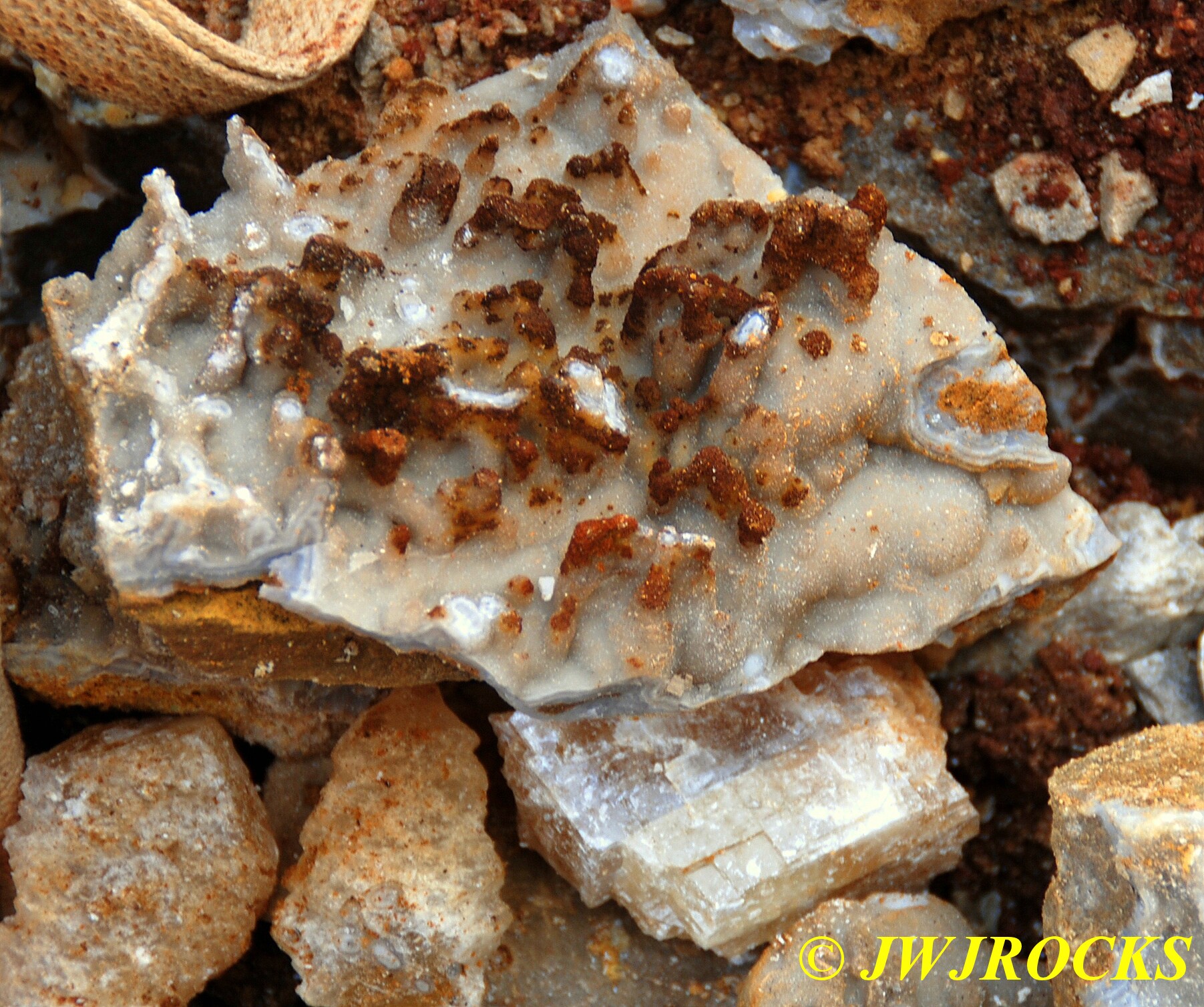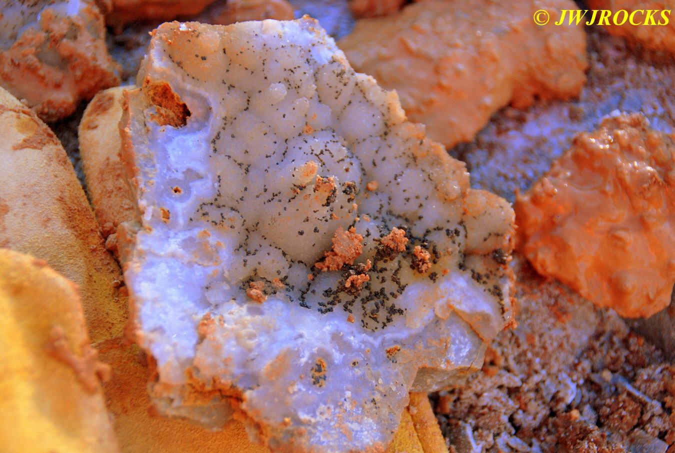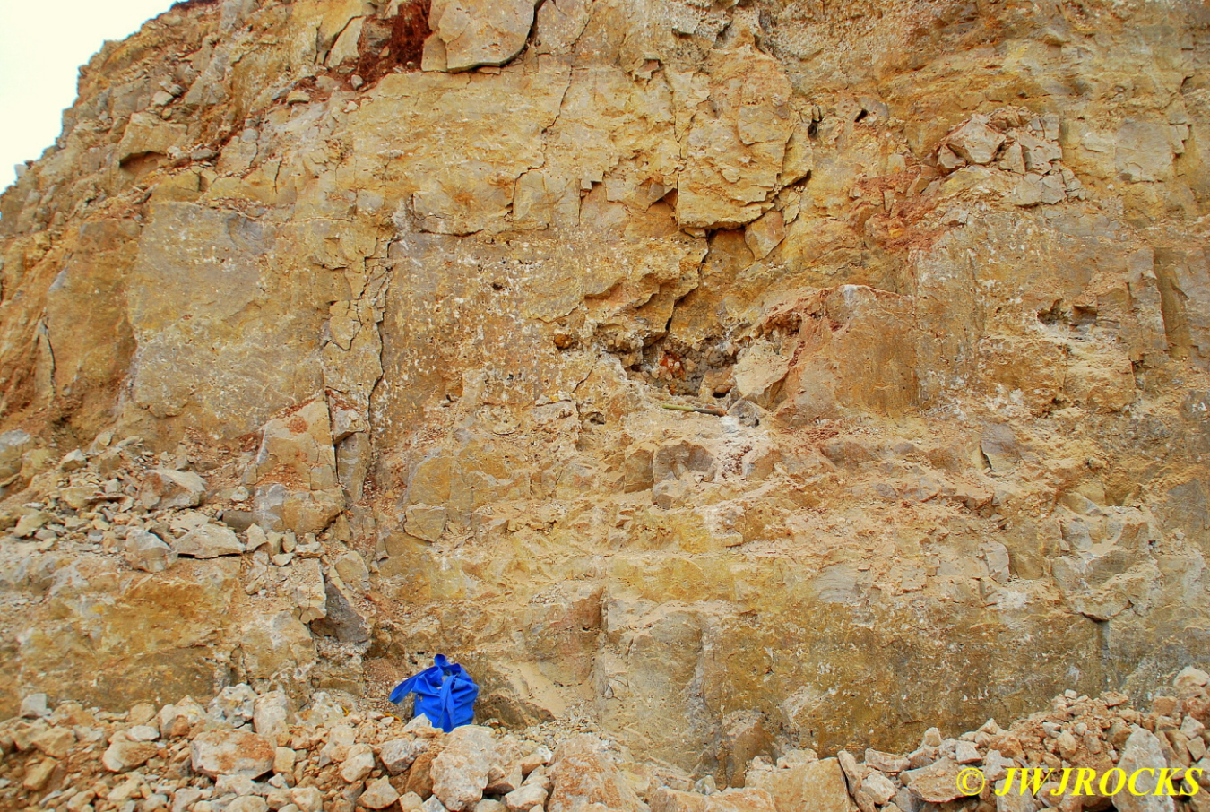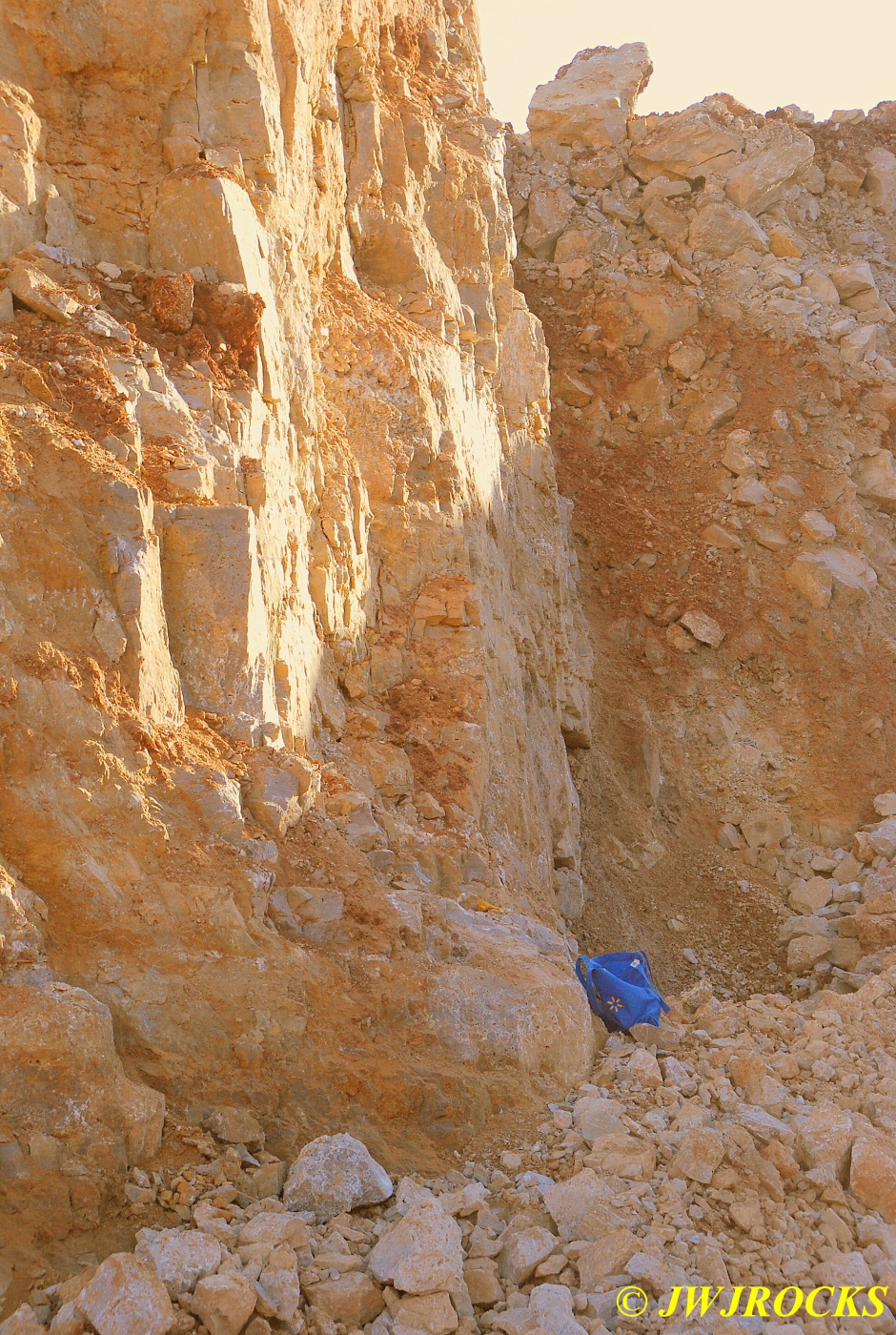 I was inching my way west along the dirt wall above the piles and came upon this little number, palm sized and spotted the yellow color and the irredescence as well…