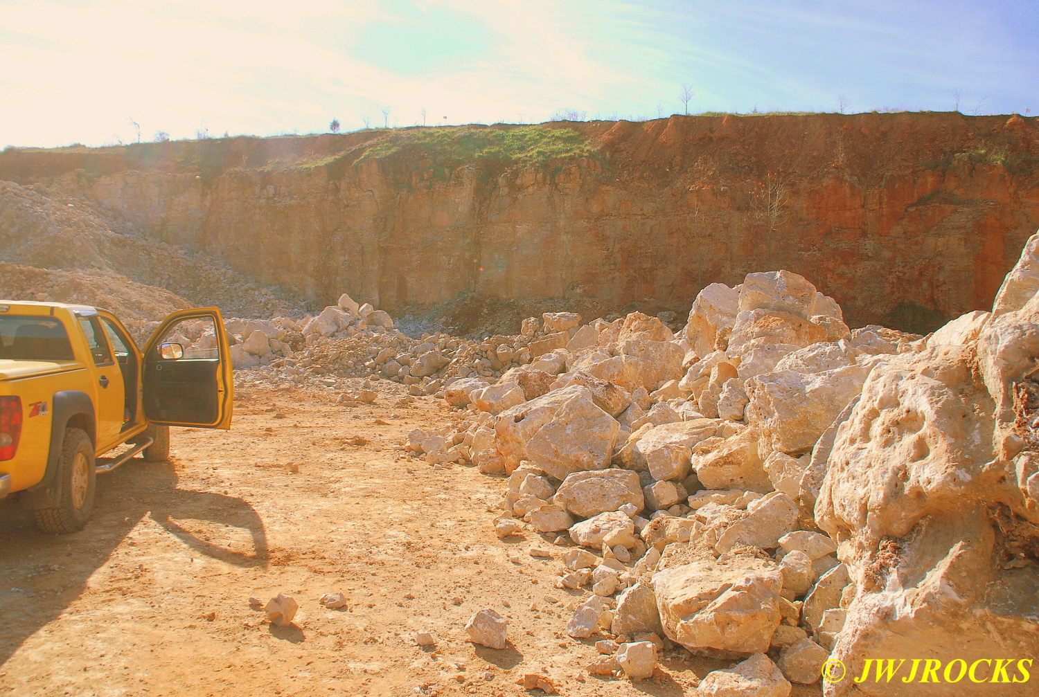 We parked near the pines at the top of the hill by the road and walked around to surface collect and get our bearings first…Ray had been to this mine last year and it took him a few minutes to figure out where his party had been digging at then…things were a bit different layout wise this time...