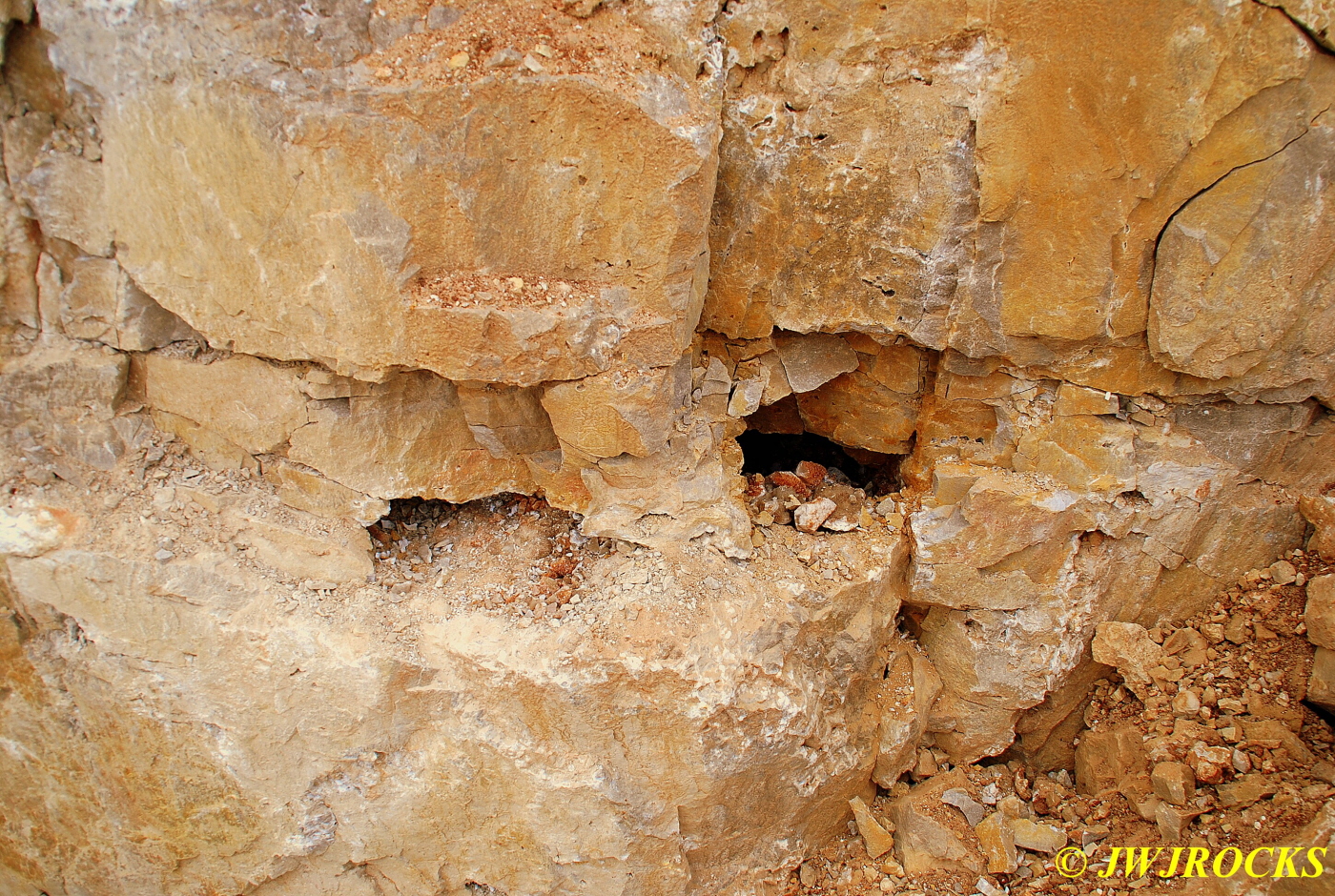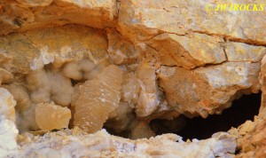 …after he rested up, he turned around from where he was sitting down and dug down a little bit and within seconds, pulled this nice golden healer on the left side of the photo below, from the dirt wall….