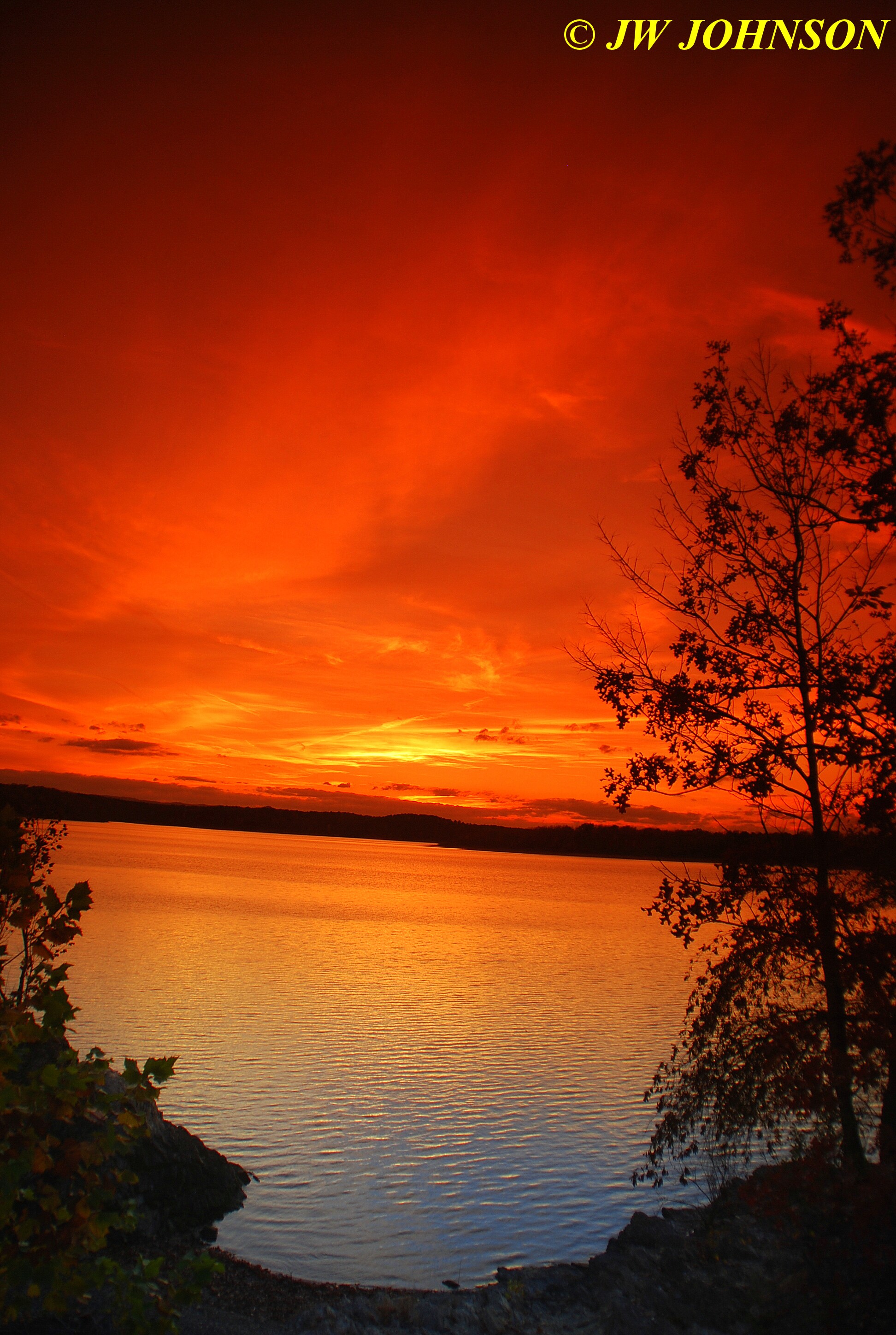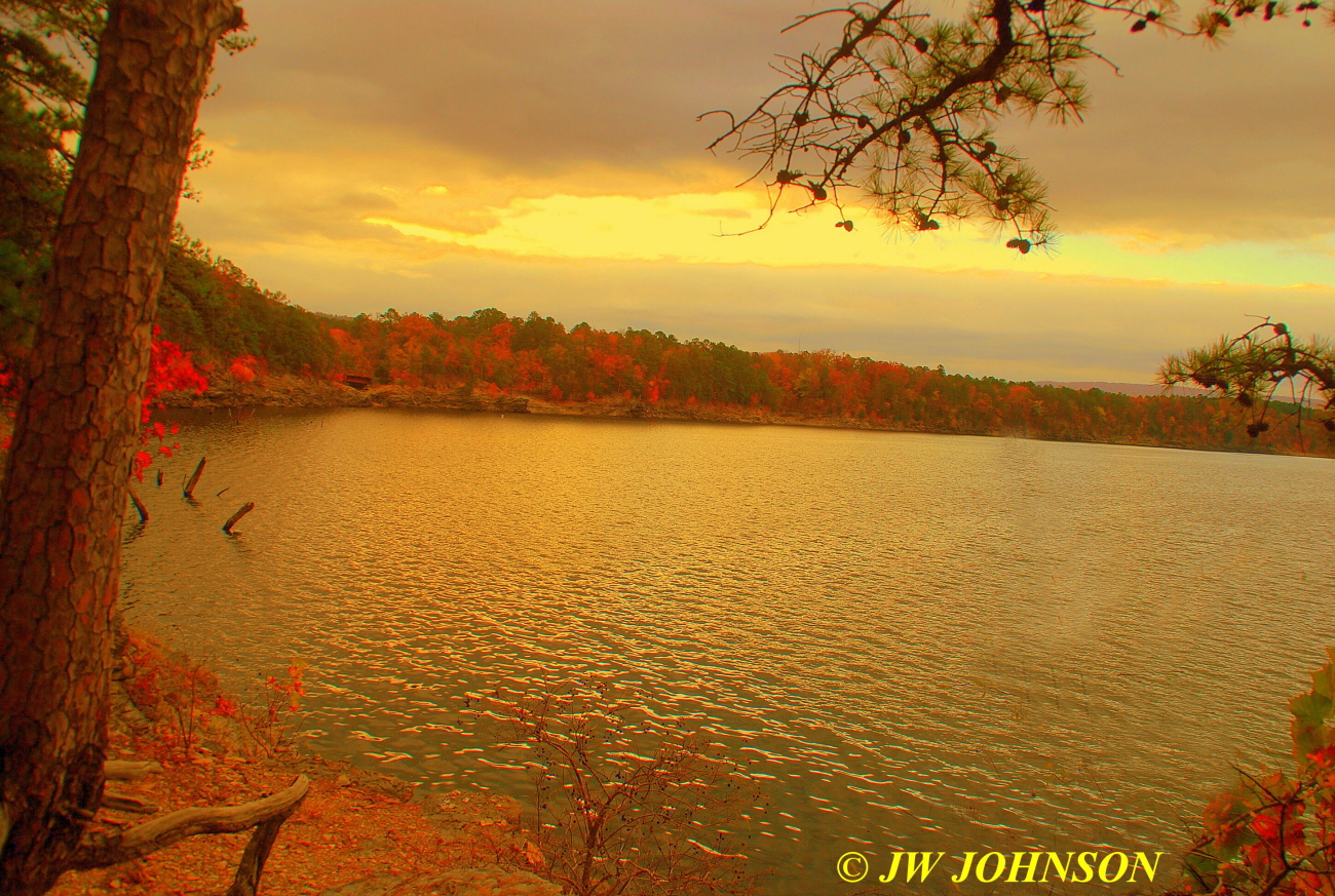 After yet another good supper at the Lodge, we retired for the night and prepared for a better day of quartz crystal collecting. For whatever reason, which I havent figured out yet, I again rose early the next morning…and Missy and I took off for another hike…thinking I`m supposed to be on vacation so shouldnt I be sleeping in later ?? This time Missy and I hiked over to the west side of the lake where we normally shoot sunsets from, the north point…this time though the sunrise this morning was putting on a good display and making me think it was sunset instead….