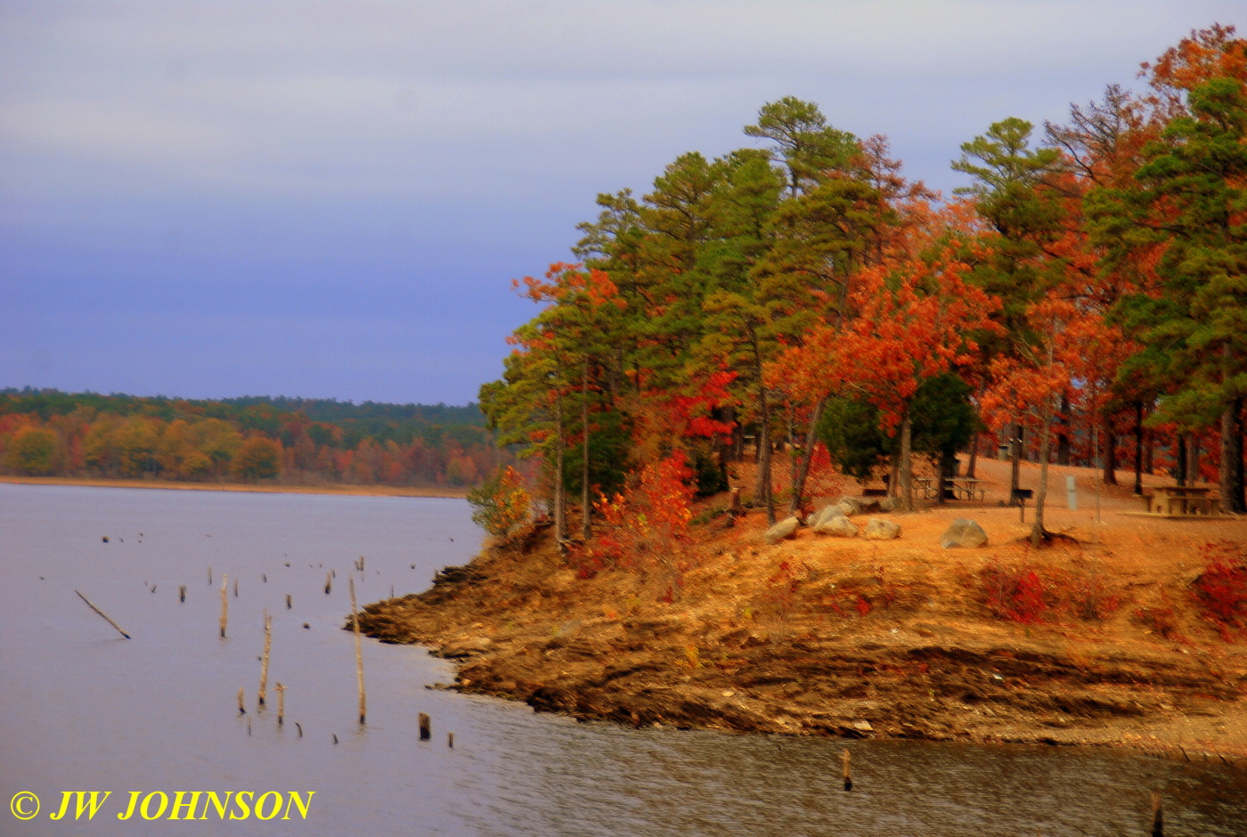 …there is a campground on the very north point of Harbor North side of Mountain Harbor, operated by the Corps of Engineers and closed this time of year…another shale lakeshore with some good color there…