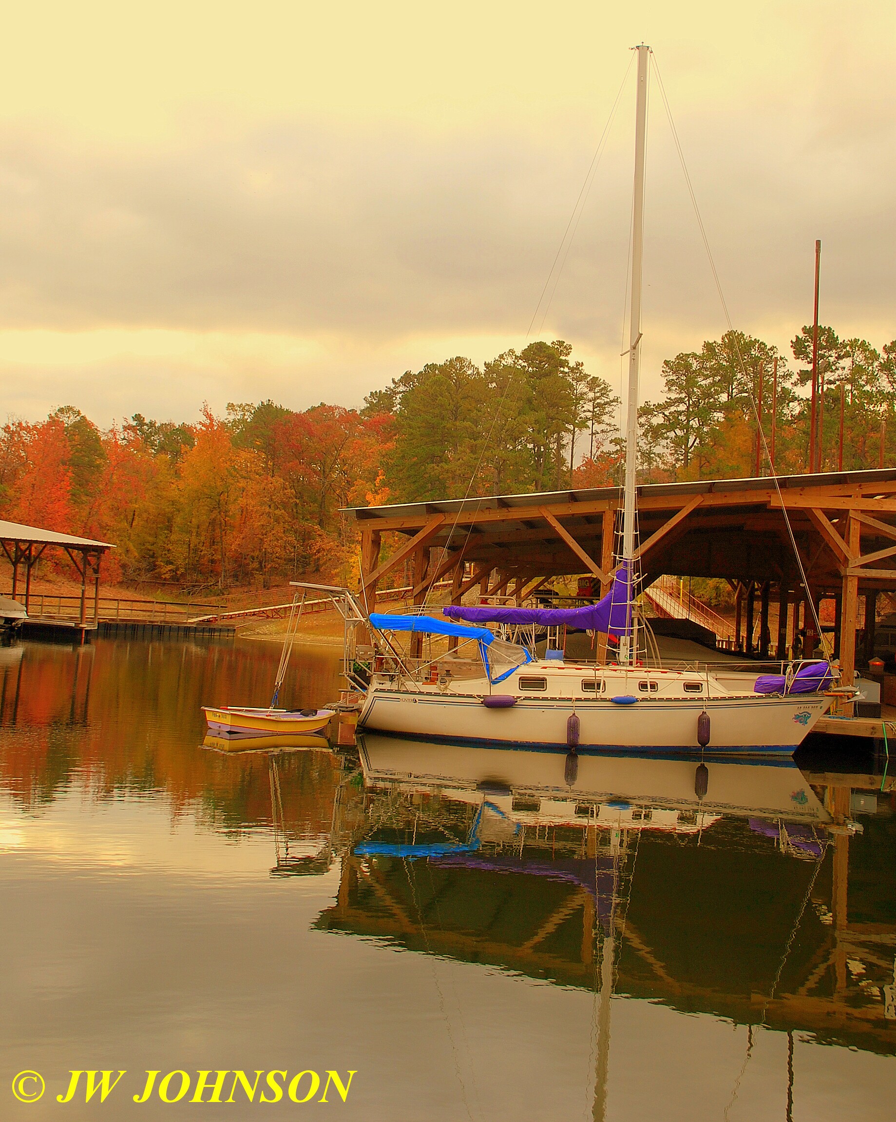 …a retired Coast Guard Cutter that was actually purchased for the resort by a private donor in the area. I actually had the pleasure of touring it back in May when it was very warm both inside the cabin and holds as well as outside…the front machine gun had been replaced by a water deck gun, pretty neat investment for the entire lake area. I turned around and looked back to the east toward the boat launch site and saw some beautiful fall color as well as a couple of sailboats drydocked and sitting up high….