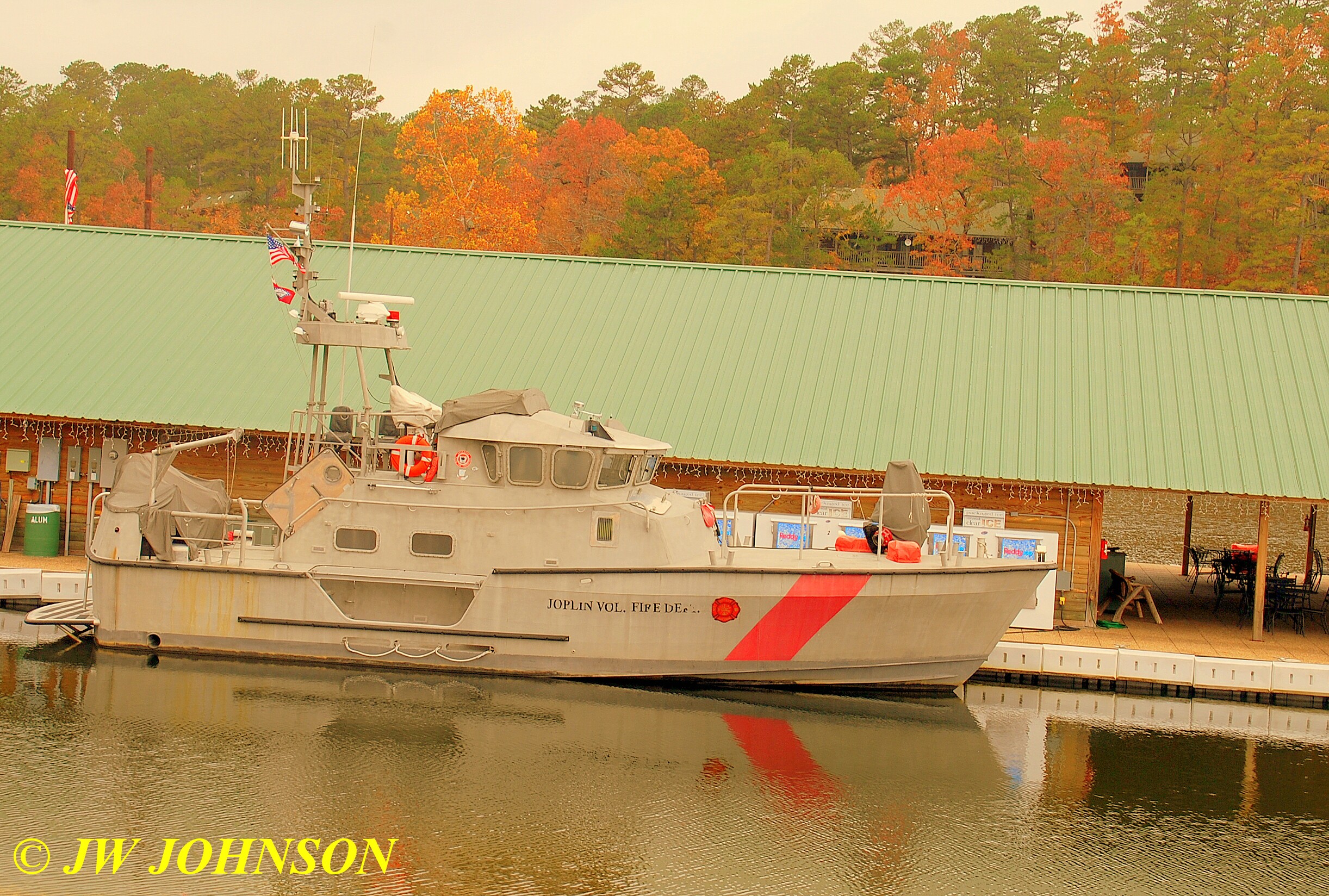 …and then drove up to the Lodge area to see the big fireboat the resort has tied up at the main marina behind the seasonal Subway Restaurant….