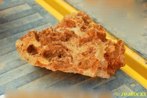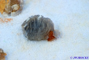 Someone had been there since we were last there and rolled out a huge boulder from the beautiful large brown dogtooth pocket halfway up the pile of the knob. I didn`t see much of any thing good on it so I climbed on up to the pocket and saw where they had explored all around and above the boulder…but they missed one spot…I reached back in the space behind where the boulder had been sitting in the pocket and pulled out a beautiful black poker chip with a gorgeous bright golden brown dogtooth on the top of it !!! EUREKA !!!!!