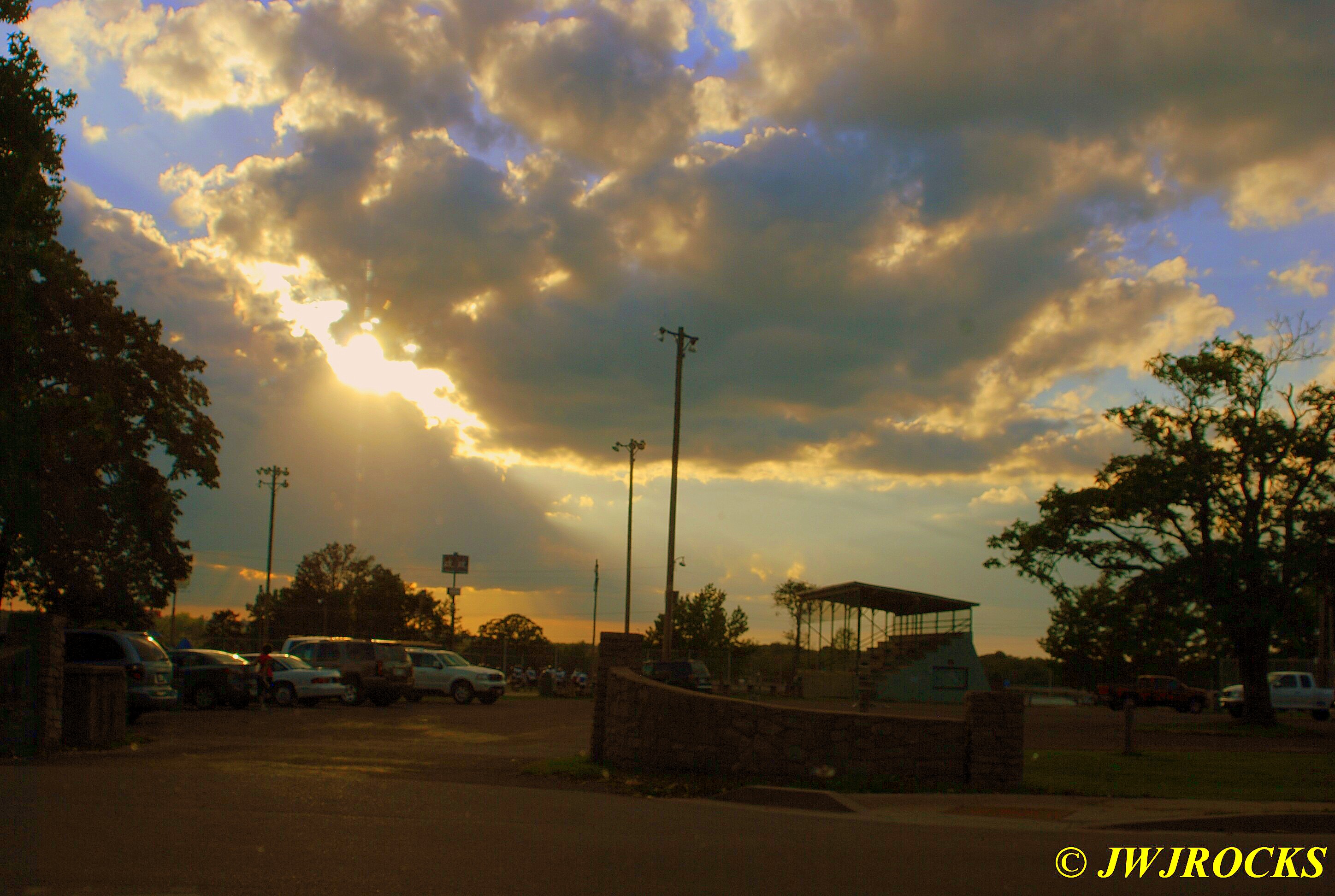 About two hours later, we both had three or four full bags each and were a bit tired, but we managed to take a water break, then walk over to the other side and check the drainage ditches and filled yet another bag each. By this time, we were both done in for the day, and we headed back to town. After cleaning up, I met Ray over at our Chinese Buffet Restaurant and we had a great meal there…Ray topping off his meal with two huge dips of ice cream. Here are some neat sunbeams I shot on the way to the restaurant….