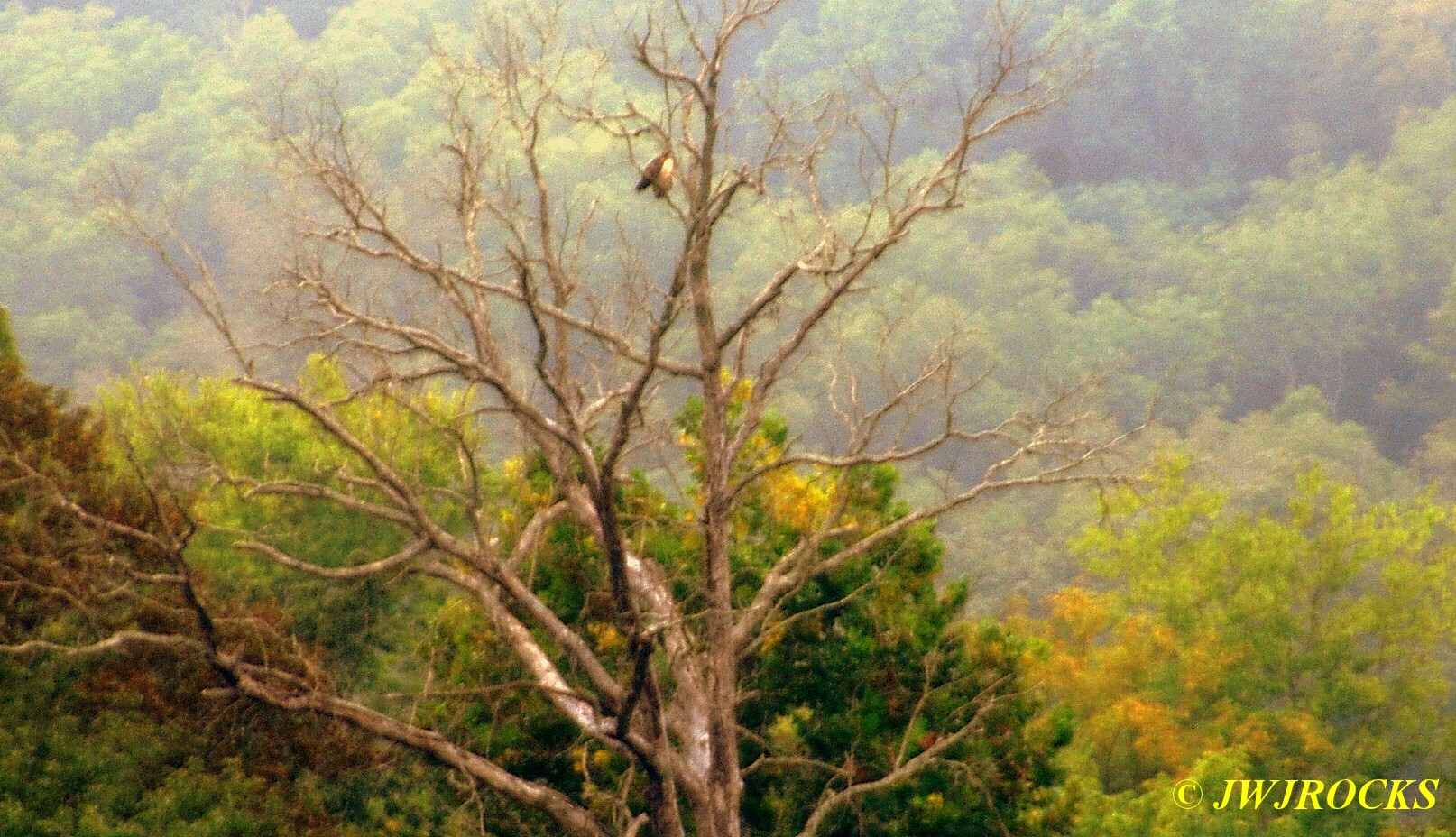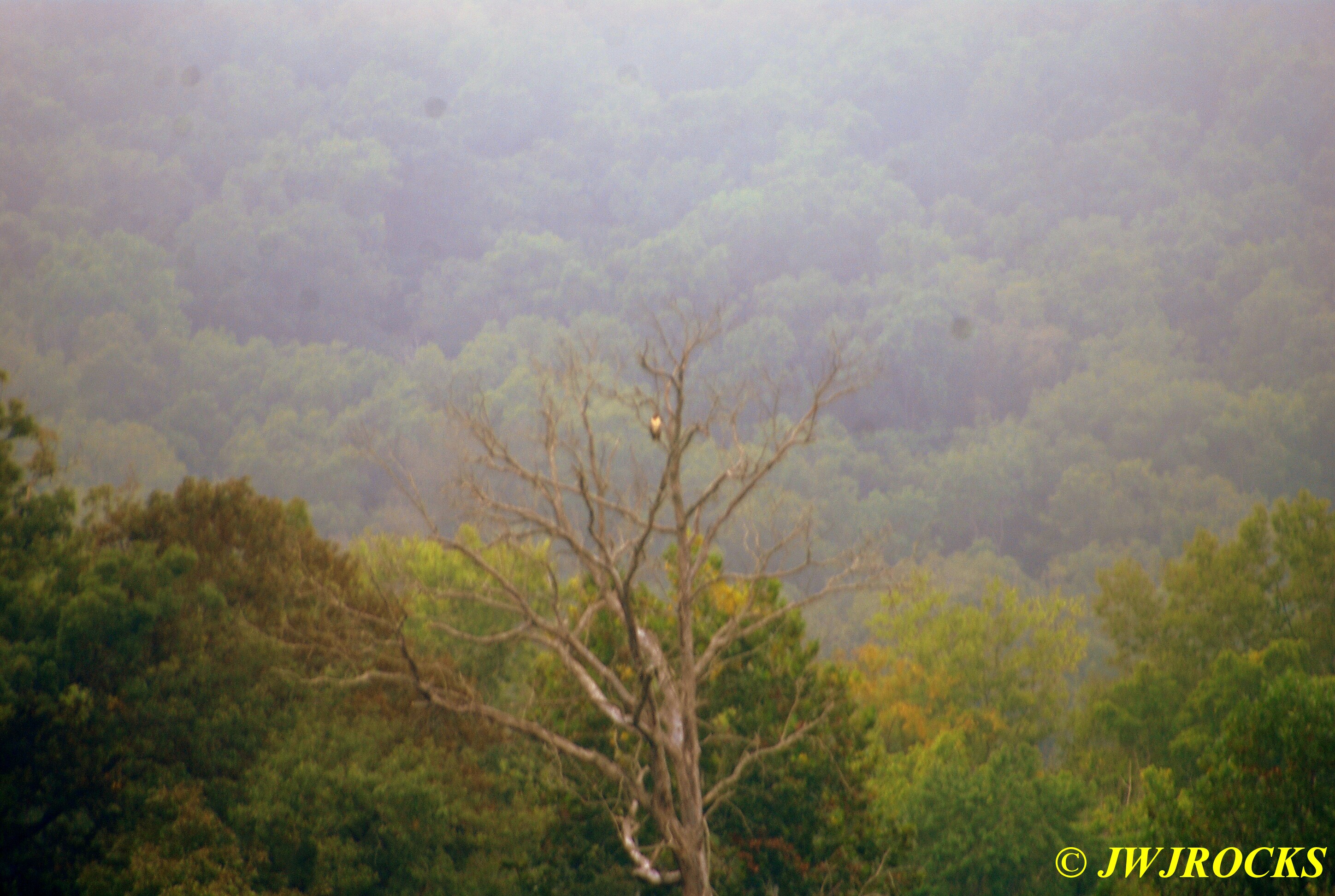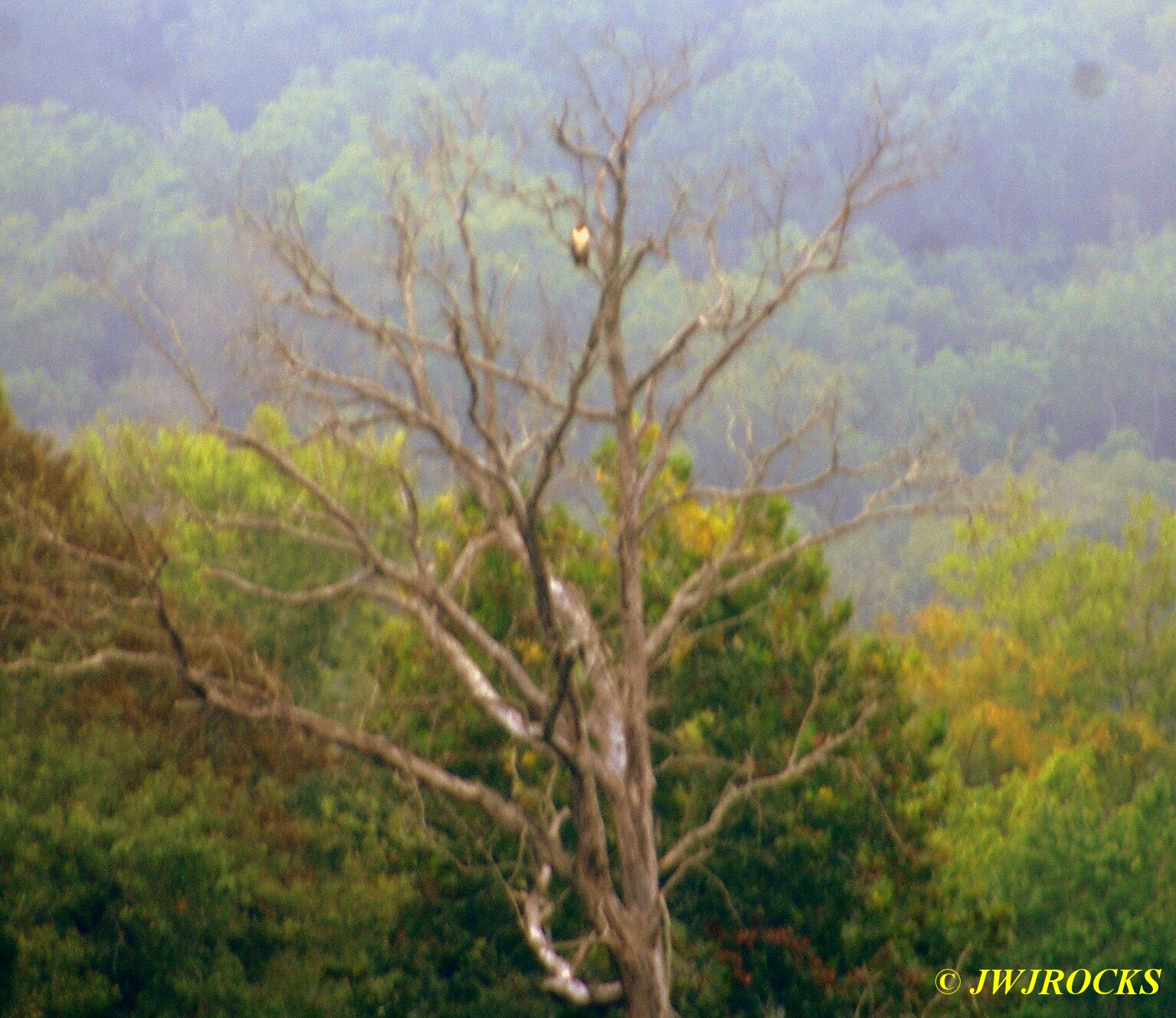 ….when she asked Ray, if he had any jeans to ride in….I just chuckled when he gave them his answer…they shook their heads and said, okay…they were waiting on a lady that wanted to go riding that morning as well and she was running late, having trouble finding their farm. Carol pointed out an Eagle perched high in a dead tree top way across their north field, about three hundred yards…I put my camera lens on it, but it was still way over there…