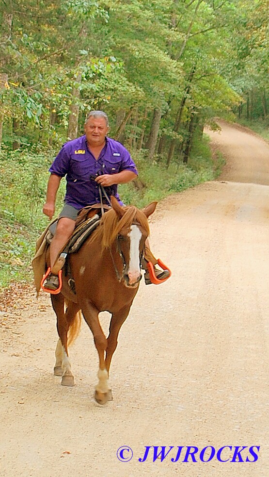 …and we soon were up on the main road, on our way to the back side of the farm where more pretty trails awaited our arrival…here you see Ray and Jerry bringing up the rear of the trail ride….