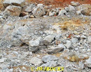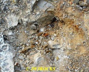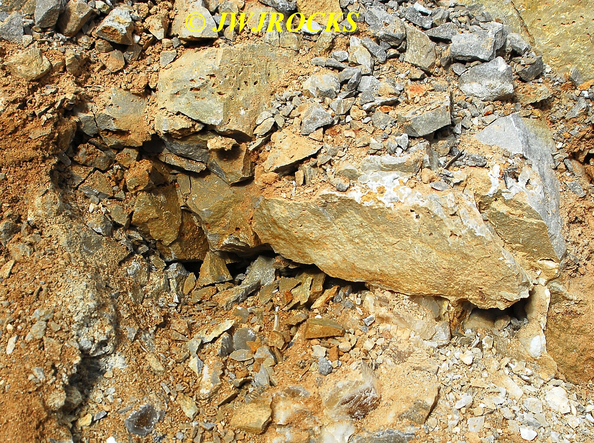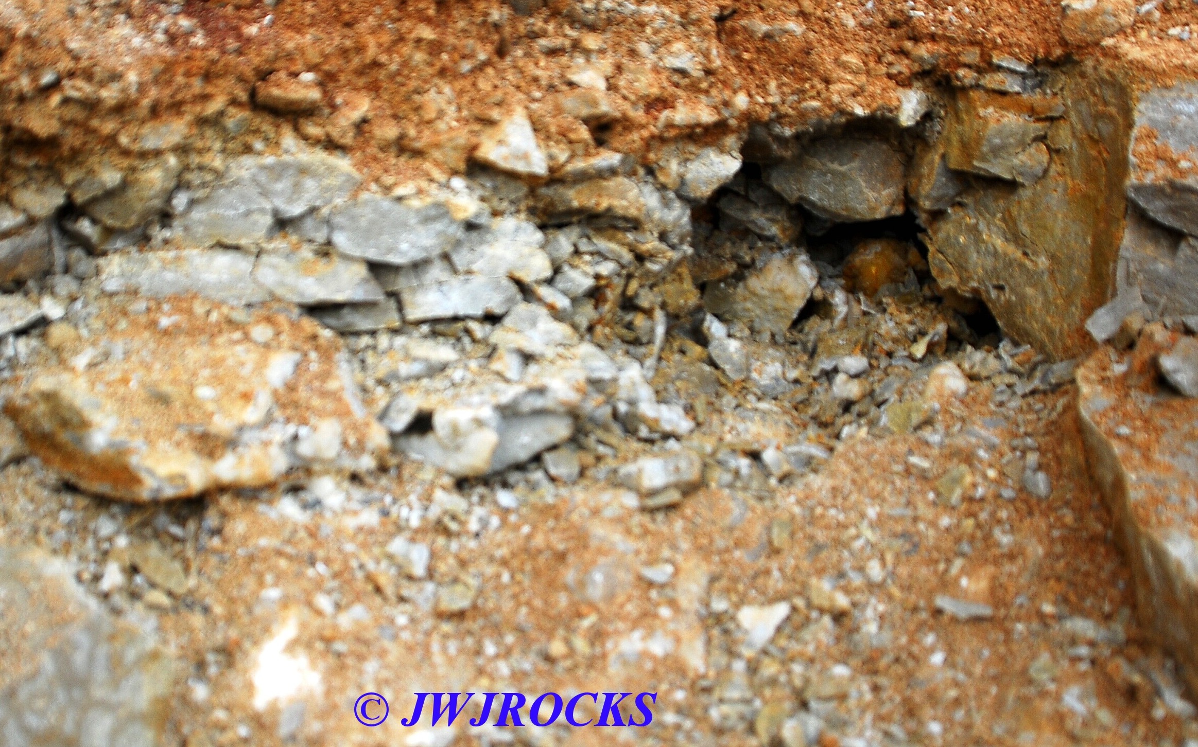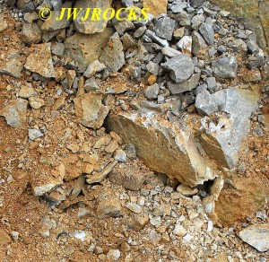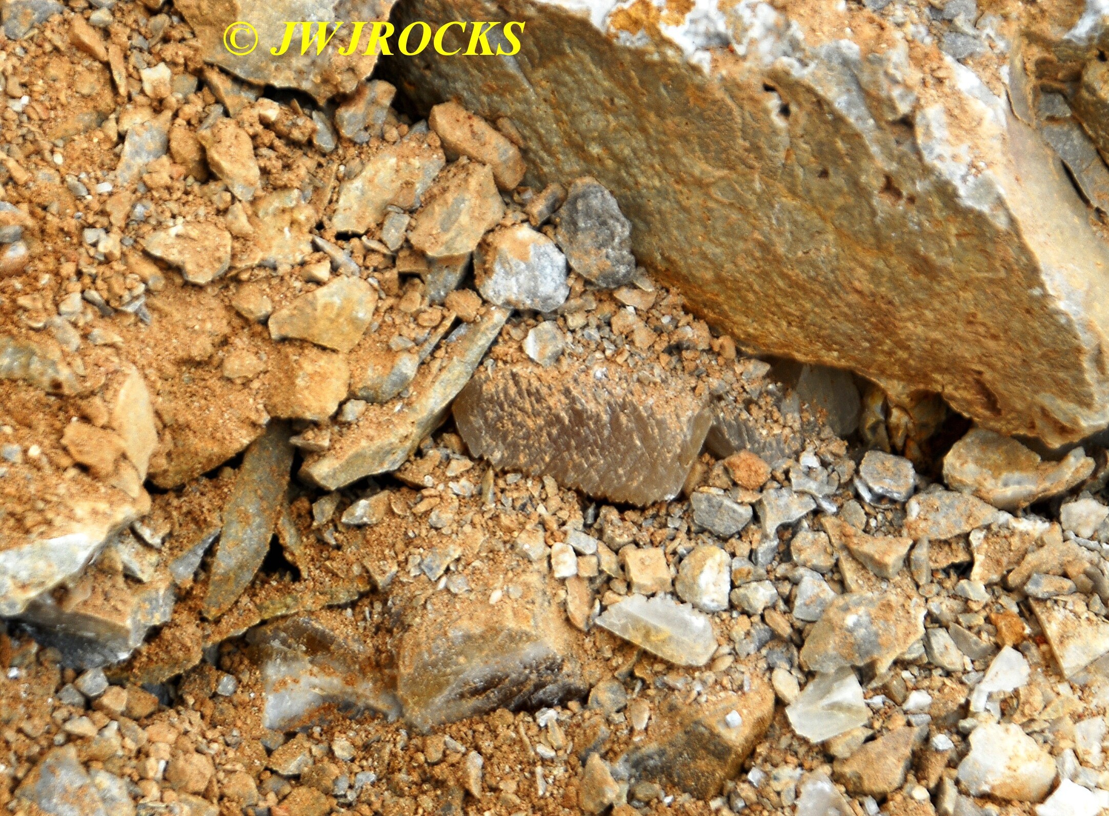 …it appeared to be one that had fallen down fairly intact from the blast wall behind and above, with alot of loose crappy rock in the front of it, some of which came away when I grabbed it with the rake end of the mattox as I was scraping and raking downward….