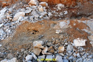 …I went back to scraping and digging, and about twenty feet to the left of him, I opened up a pocket in the loose gravels and dirt wall….
