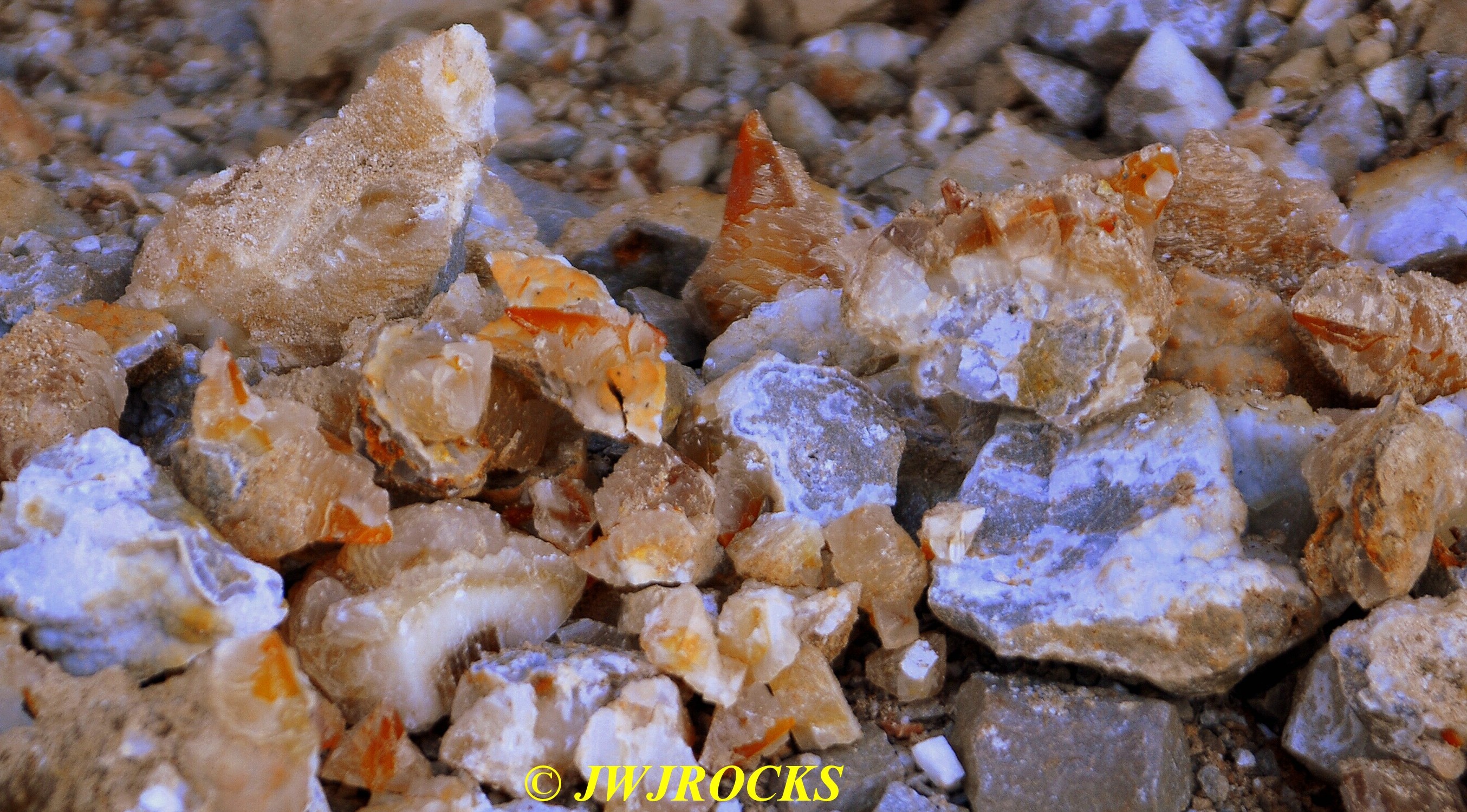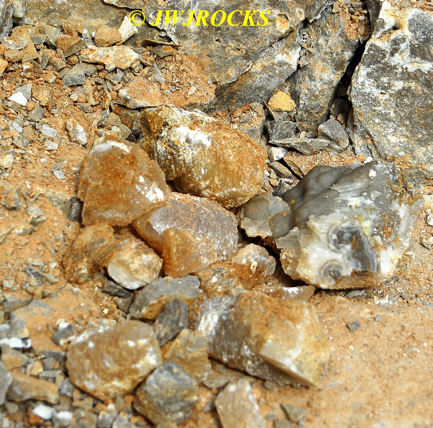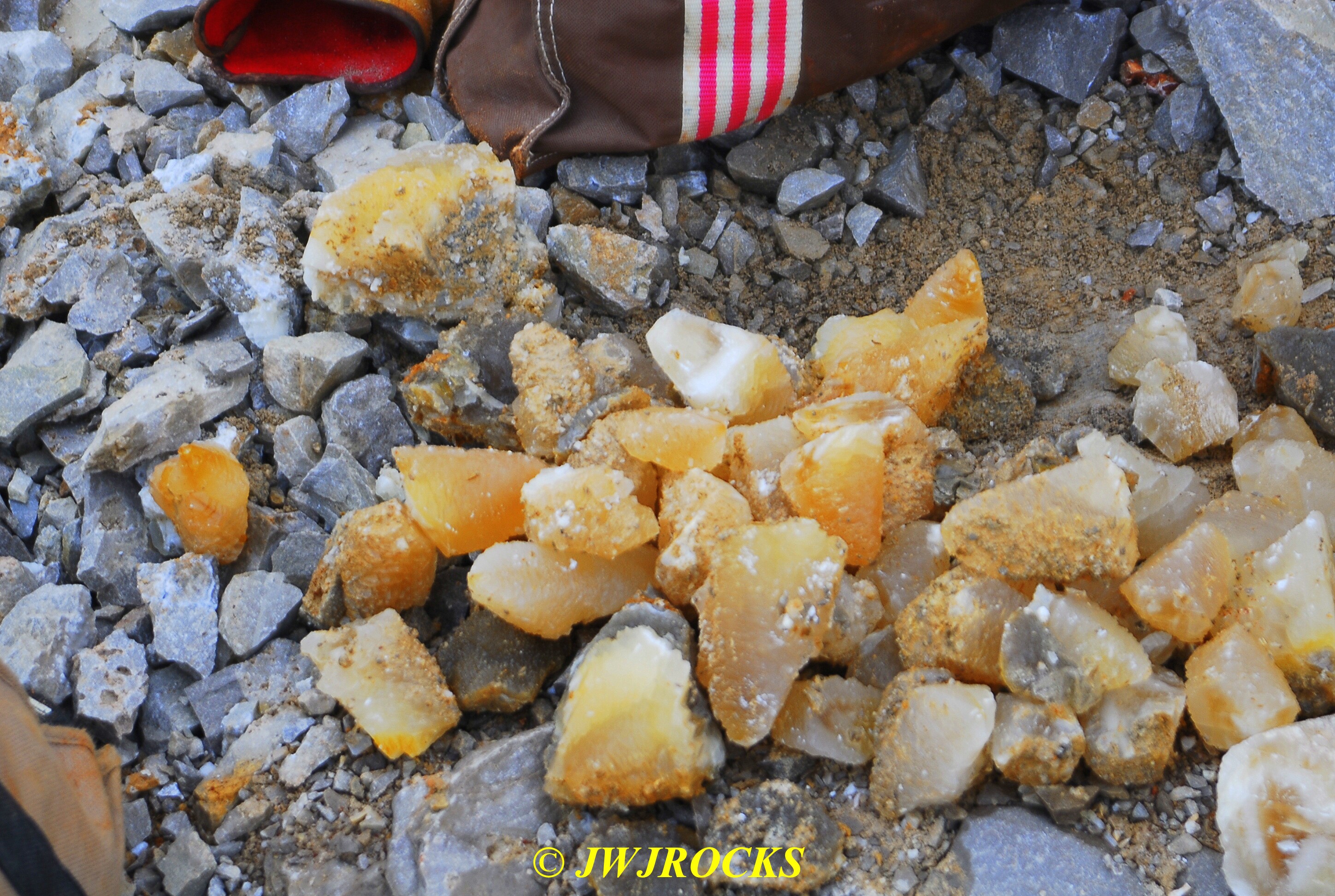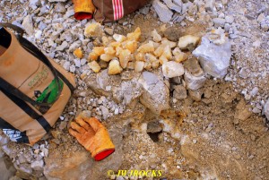 …so I began pulling all the rocks above and around it out of the way and then, removed the dogtooth and let me tell you, there were many more inside the pocket, took me a good hour just to clear them out of there…here are a few of them…..