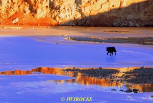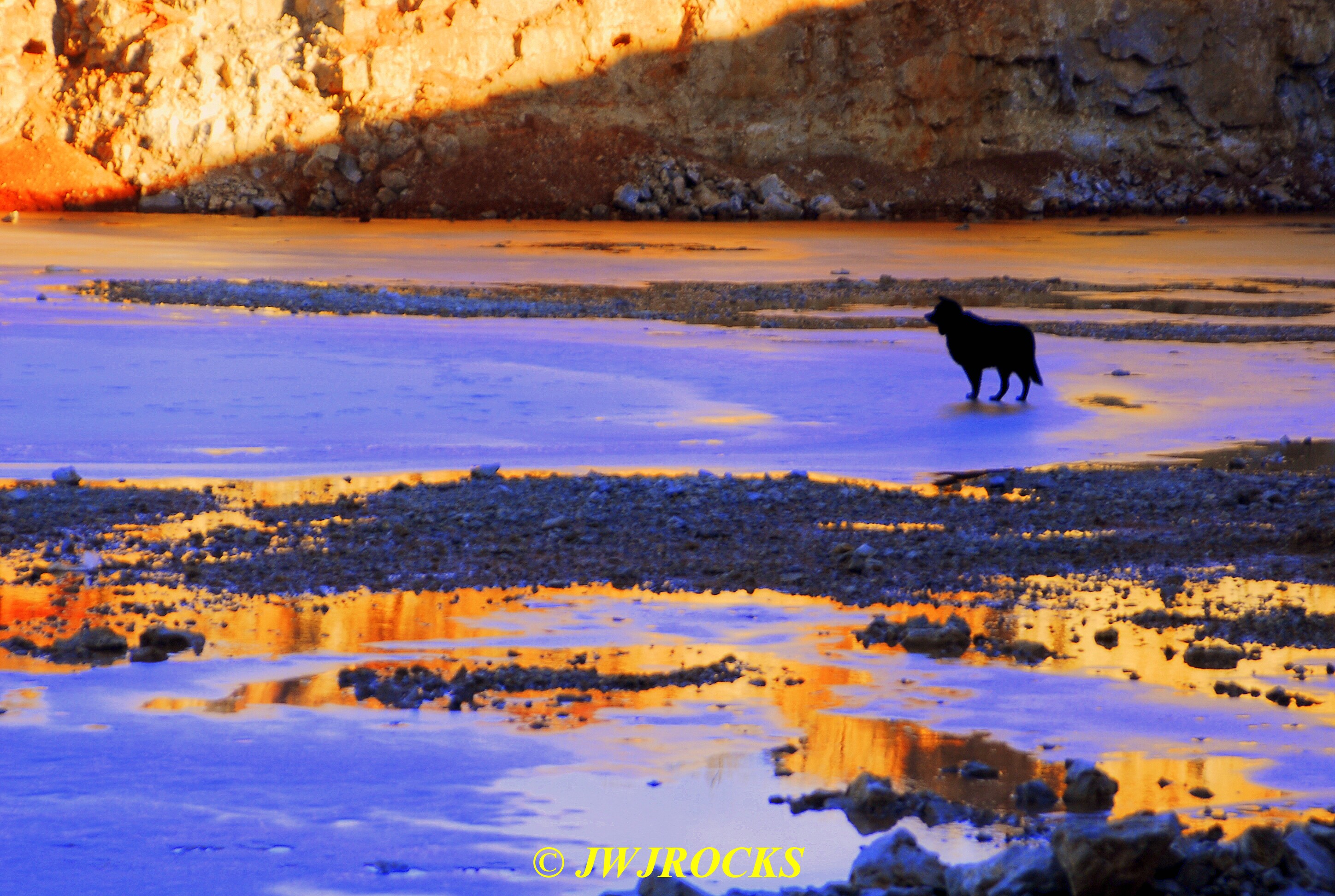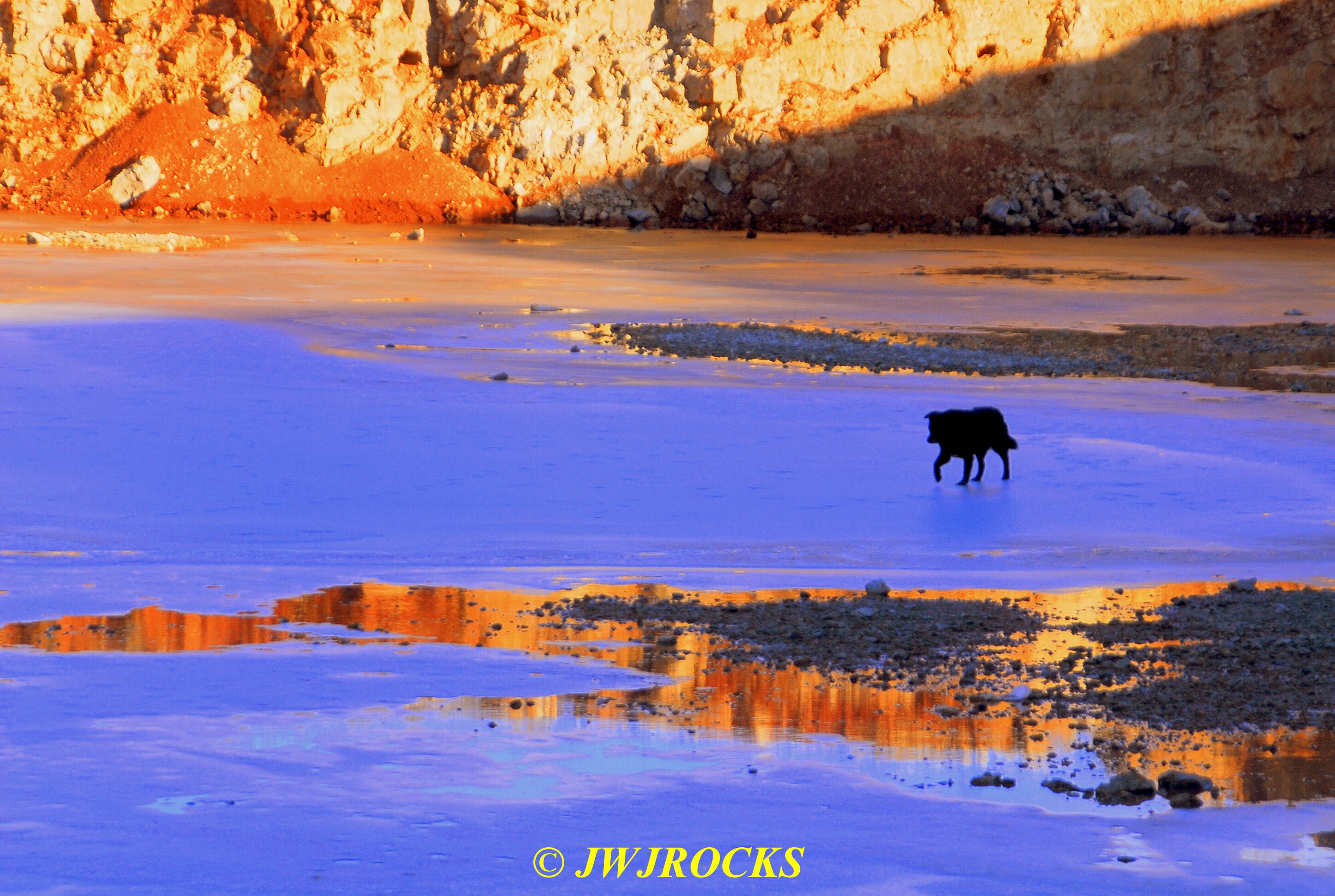…I had this pocket cleaned out within about 30 minutes and as I was wrapping up the goodies, I noticed Missy walking around on a big ice flow about thirty yards away….