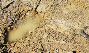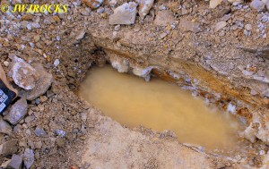 …this pocket was very shallow, didn`t even form a hole or indentation into the muck, so I pulled a few poker chips from the loose fill and moved on to the next pocket, which I found near a water hole…hoping that it would not fill with water as the pocket the week before did….I really didn`t want to spend two hours bailing water once again…that really cuts into your digging time…..